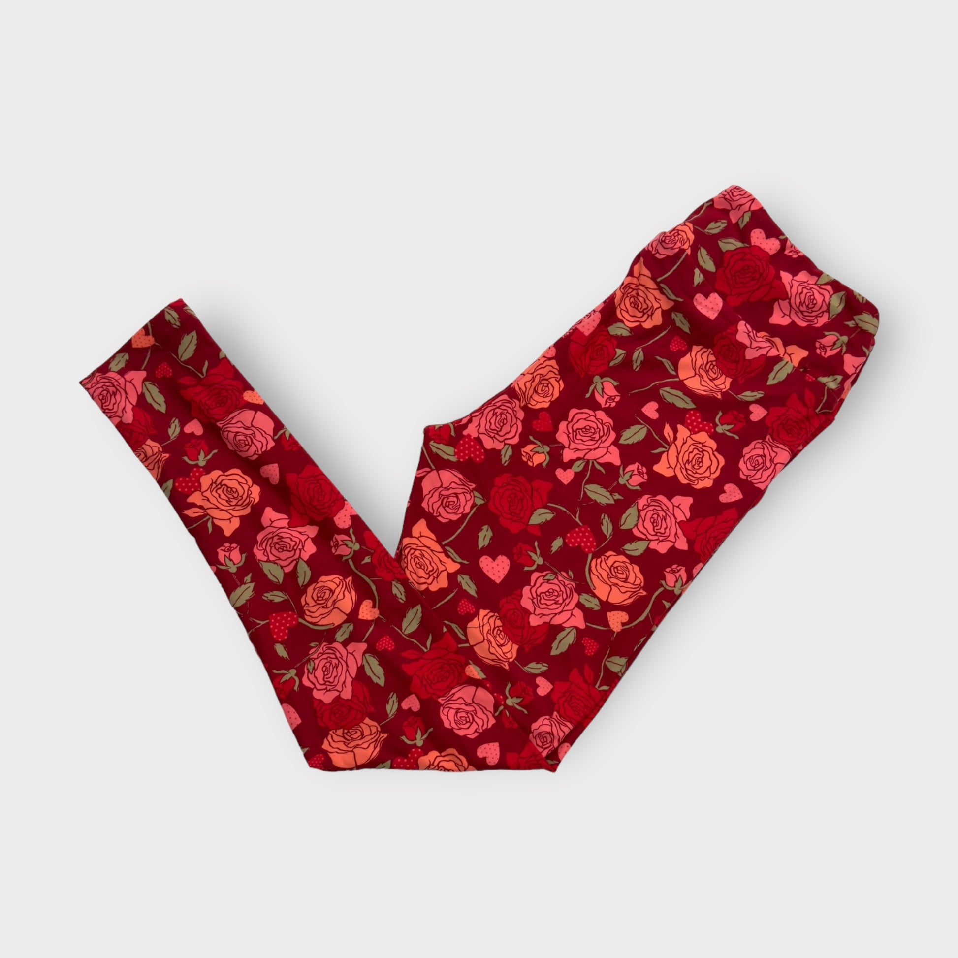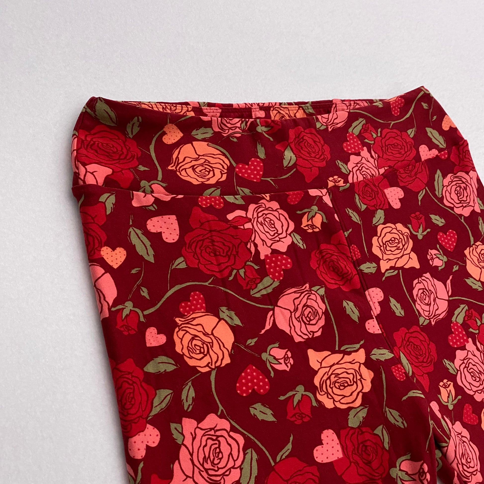 LuLaRoe Print Leggings | TC (12-18) | Red Roses & Hearts | New