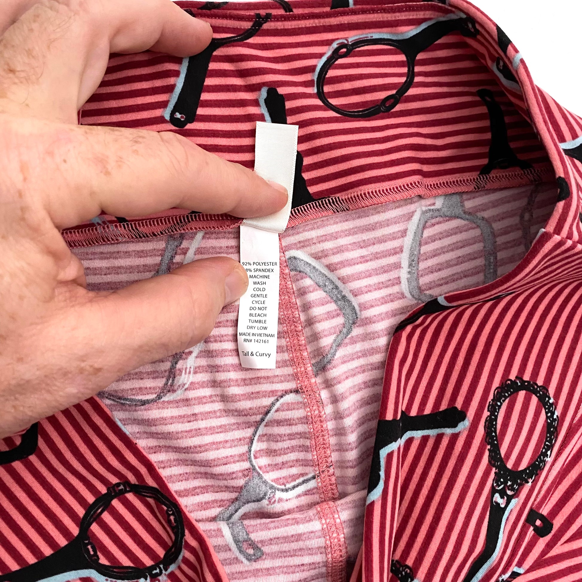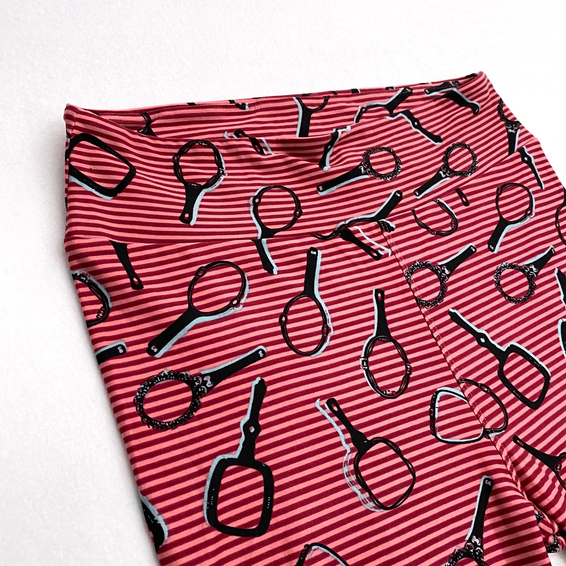 LuLaRoe Print Leggings | TC (12-18) | Red Striped Hand Held Mirrors | Buttery Soft | New