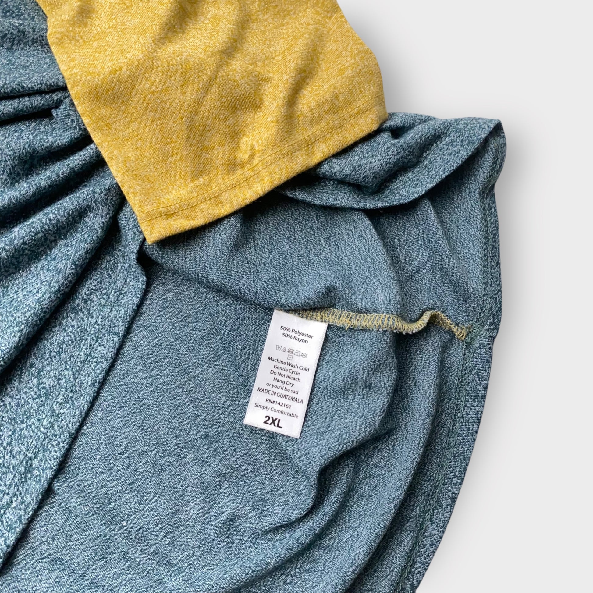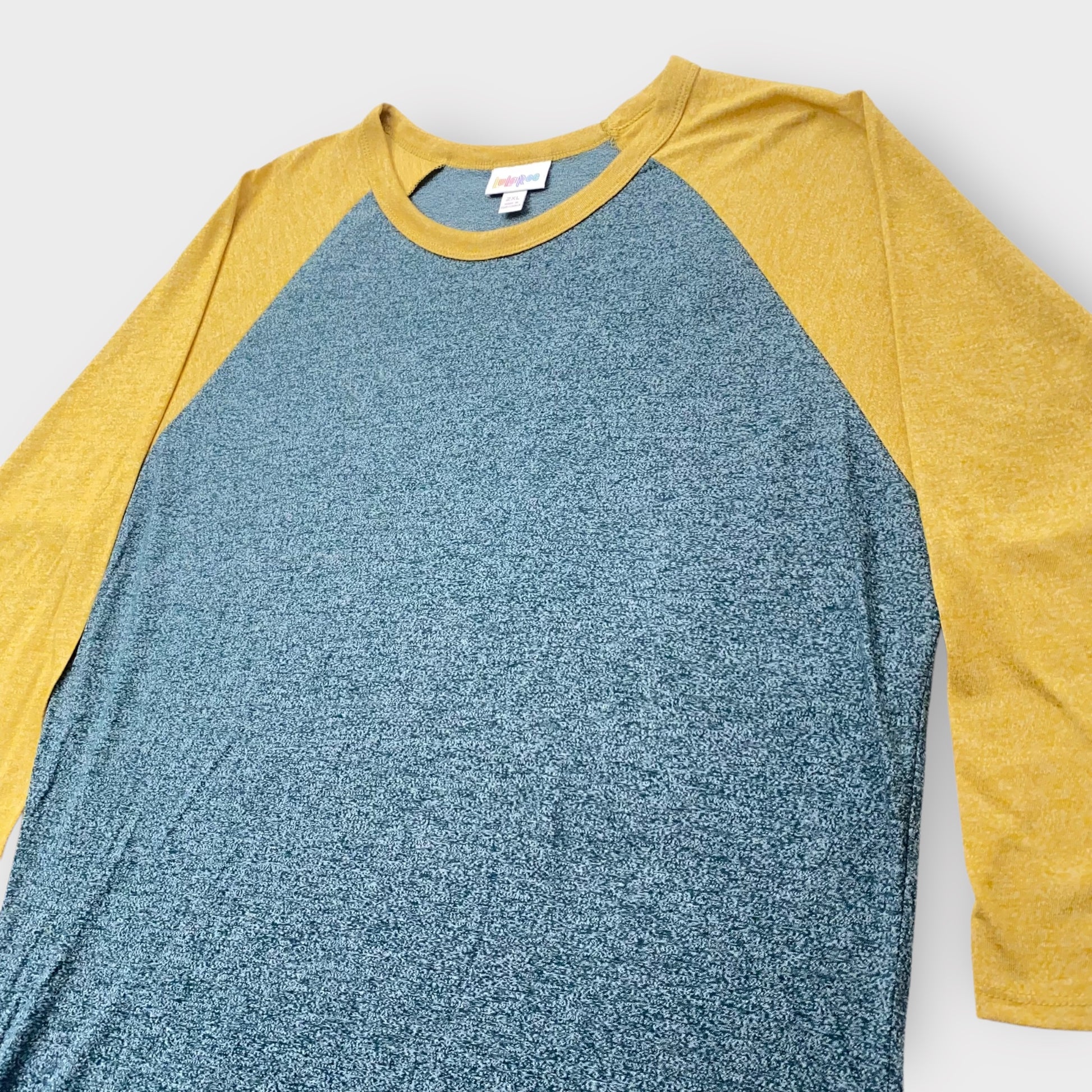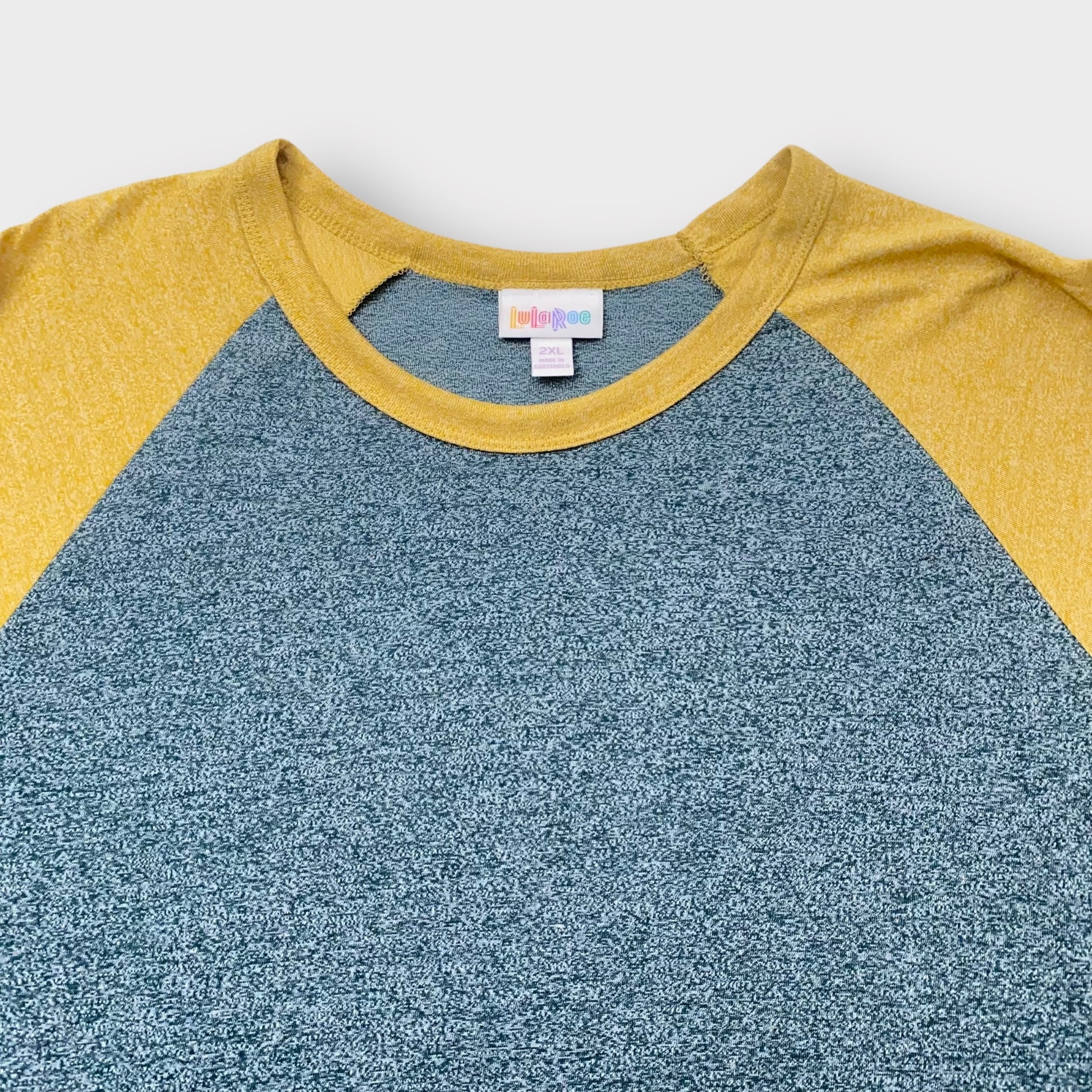 LuLaRoe Randy Baseball Tee 2XL (20-22) - Heathered Charcoal Gray with Mustard Yellow Sleeves - Soft Stretch Fabric