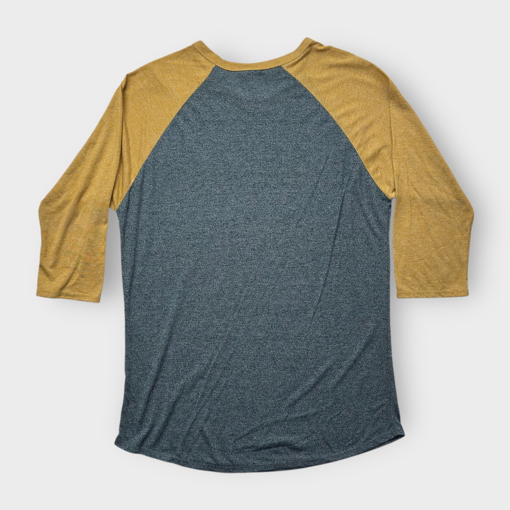 LuLaRoe Randy Baseball Tee - 2XL (20-22) - Heathered Charcoal Gray with Mustard Yellow Sleeves