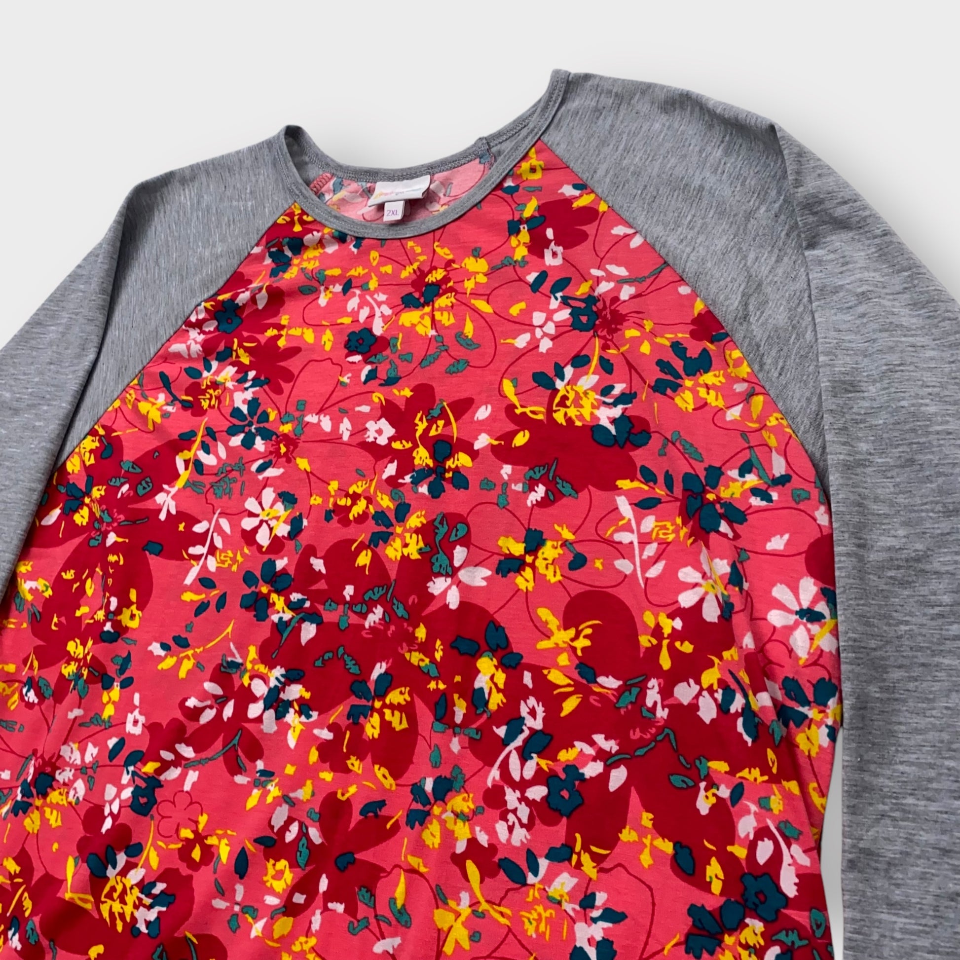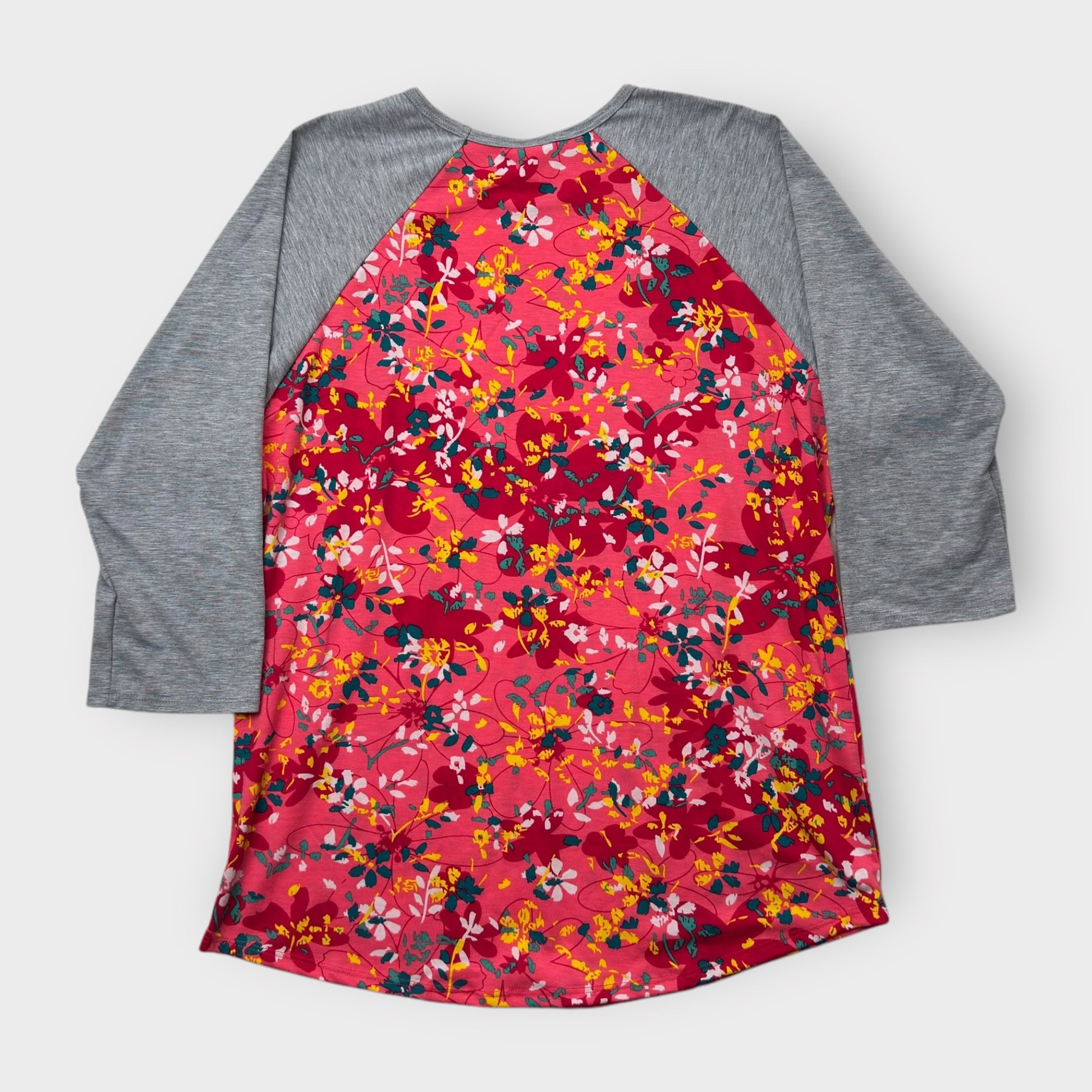 LuLaRoe Randy Baseball Tee - 2XL (20-22) - Red/Pink/Yellow Floral with Heather Gray Sleeves