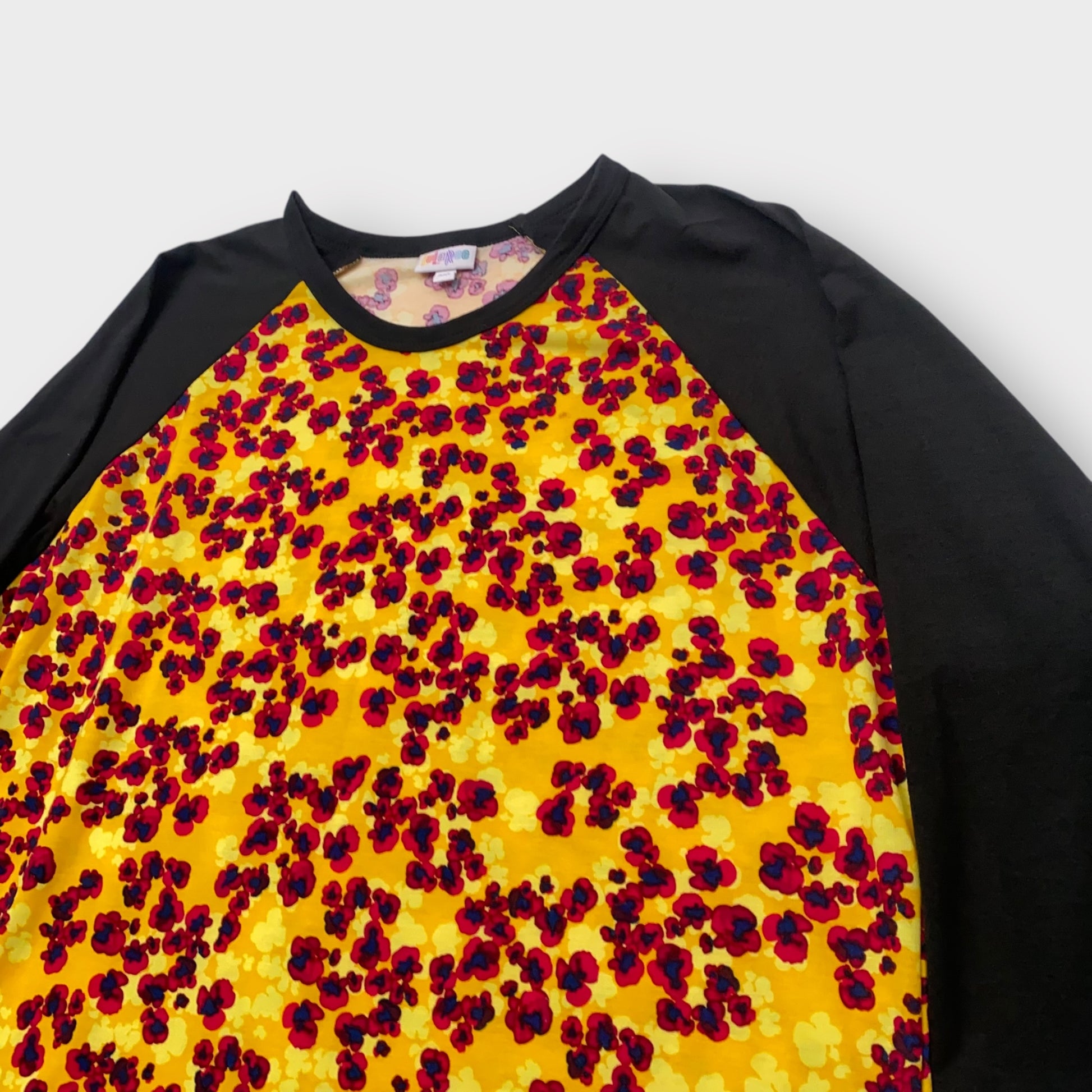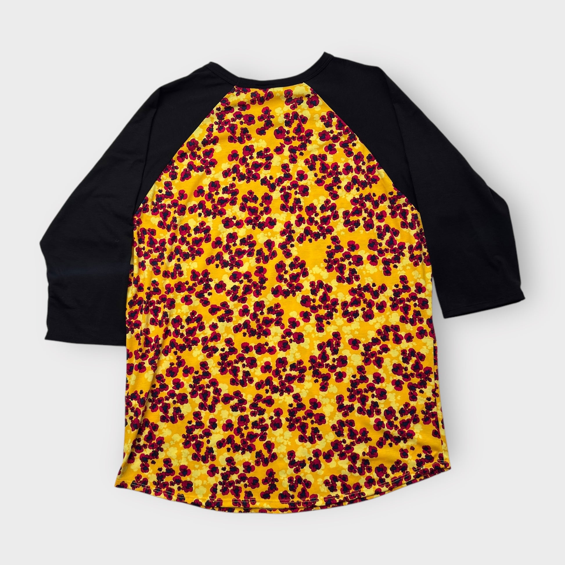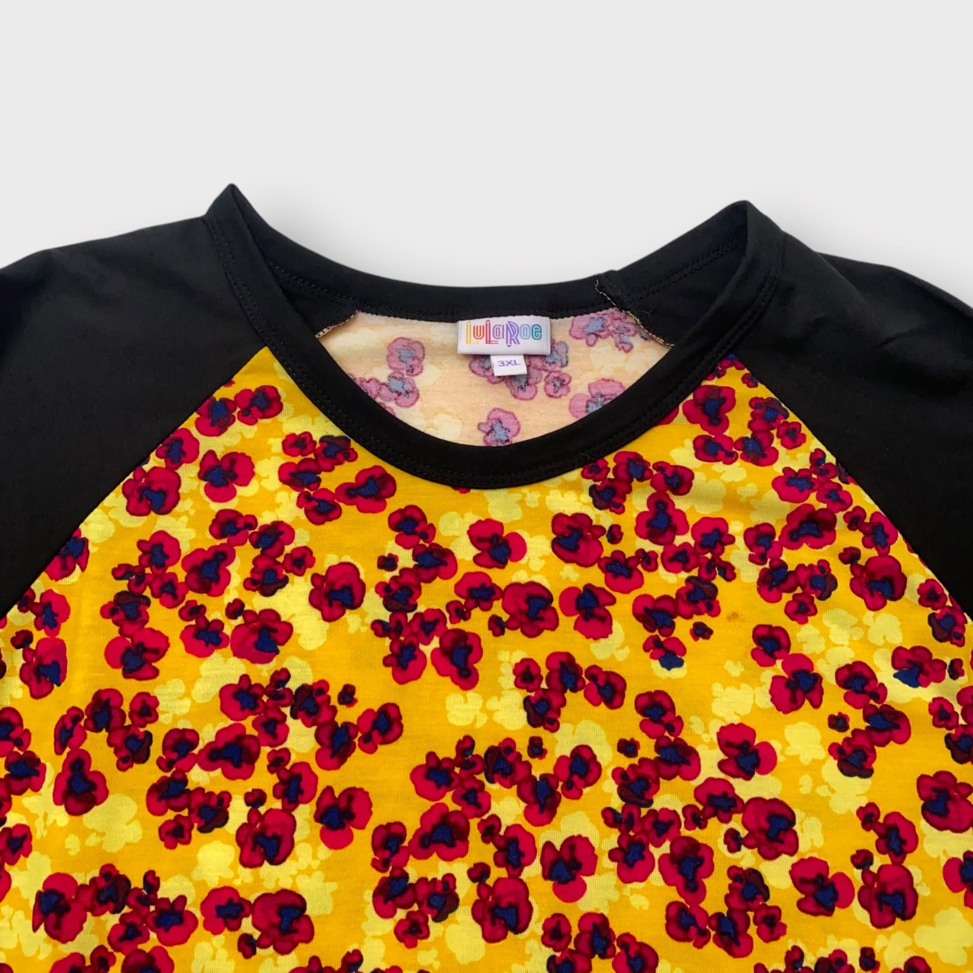 LuLaRoe Randy Baseball Tee - 3XL (24-26) - Yellow/Red Floral with Black Sleeves