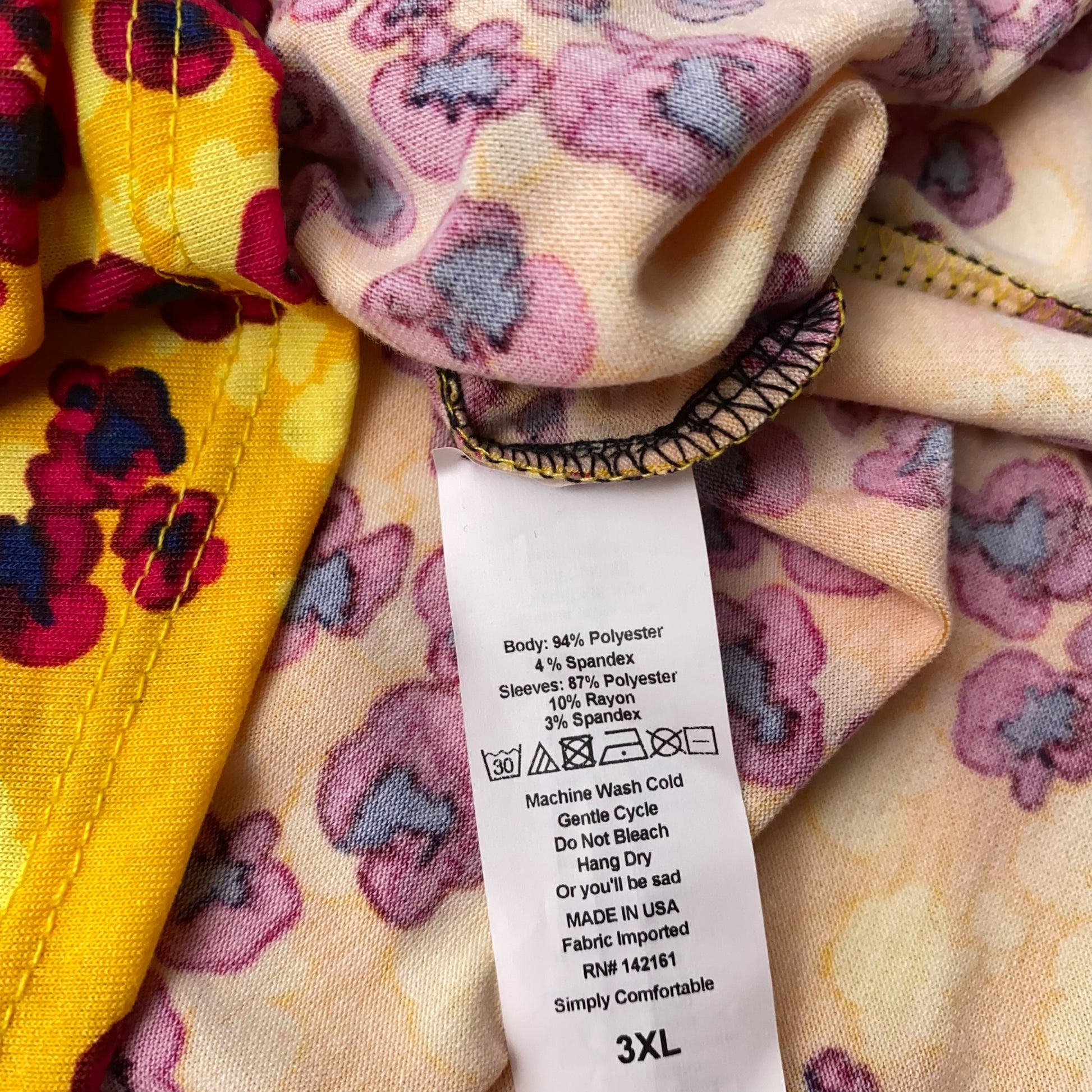 LuLaRoe Randy Baseball Tee 3XL (24-26) - Yellow/Red Floral Print with Black Sleeves - Soft Stretch Fabric