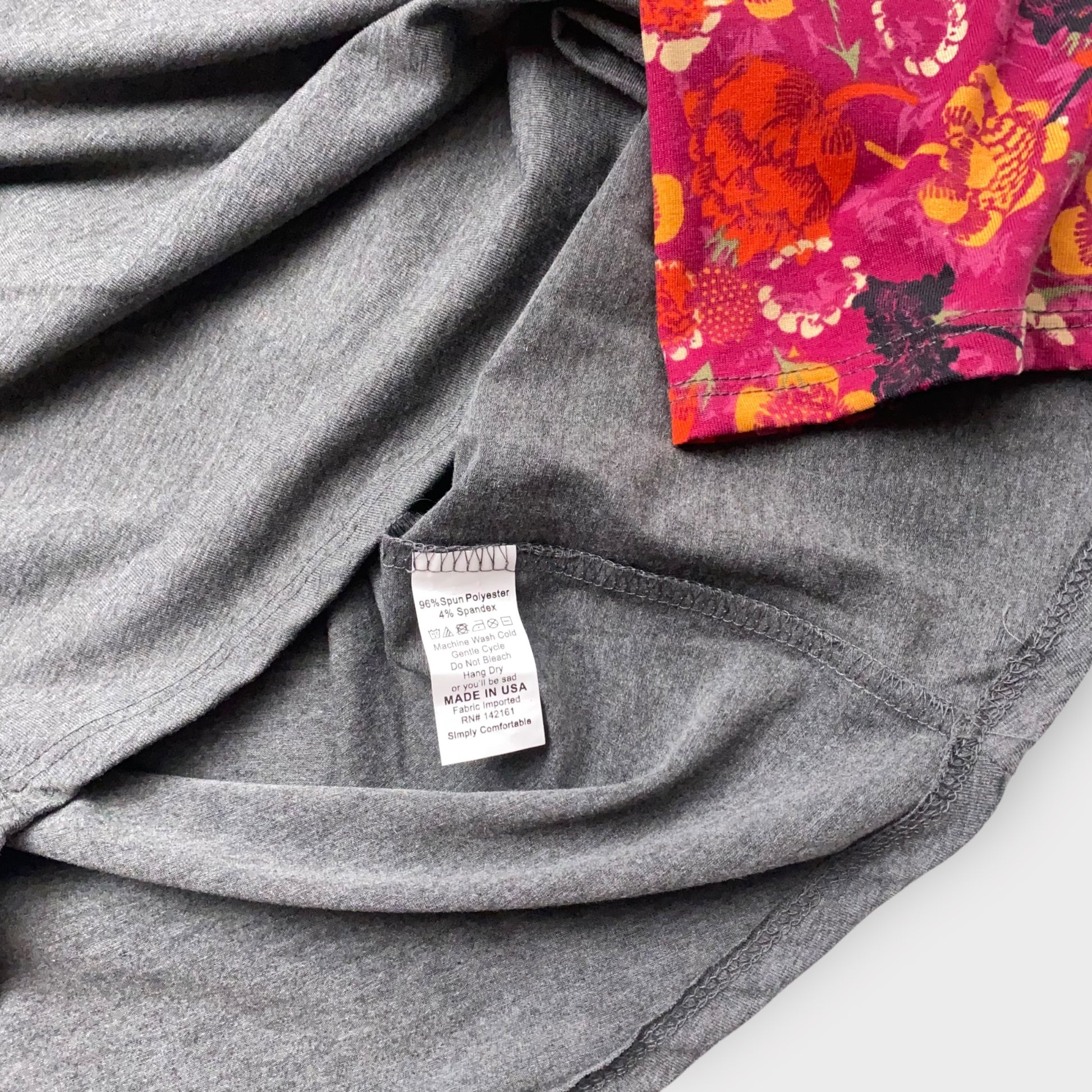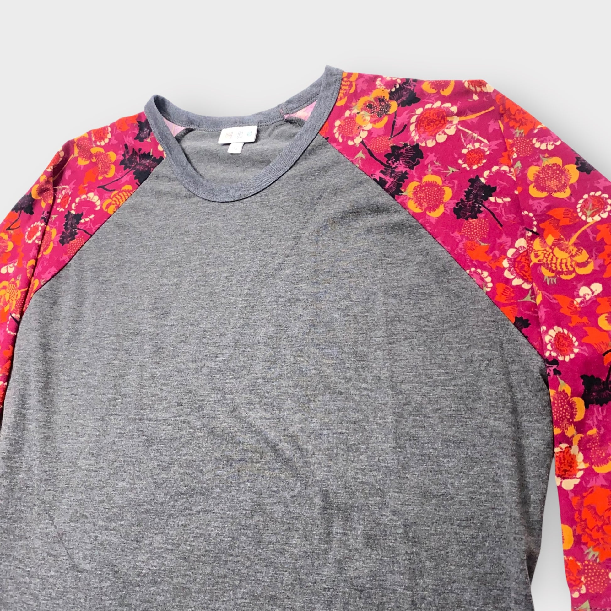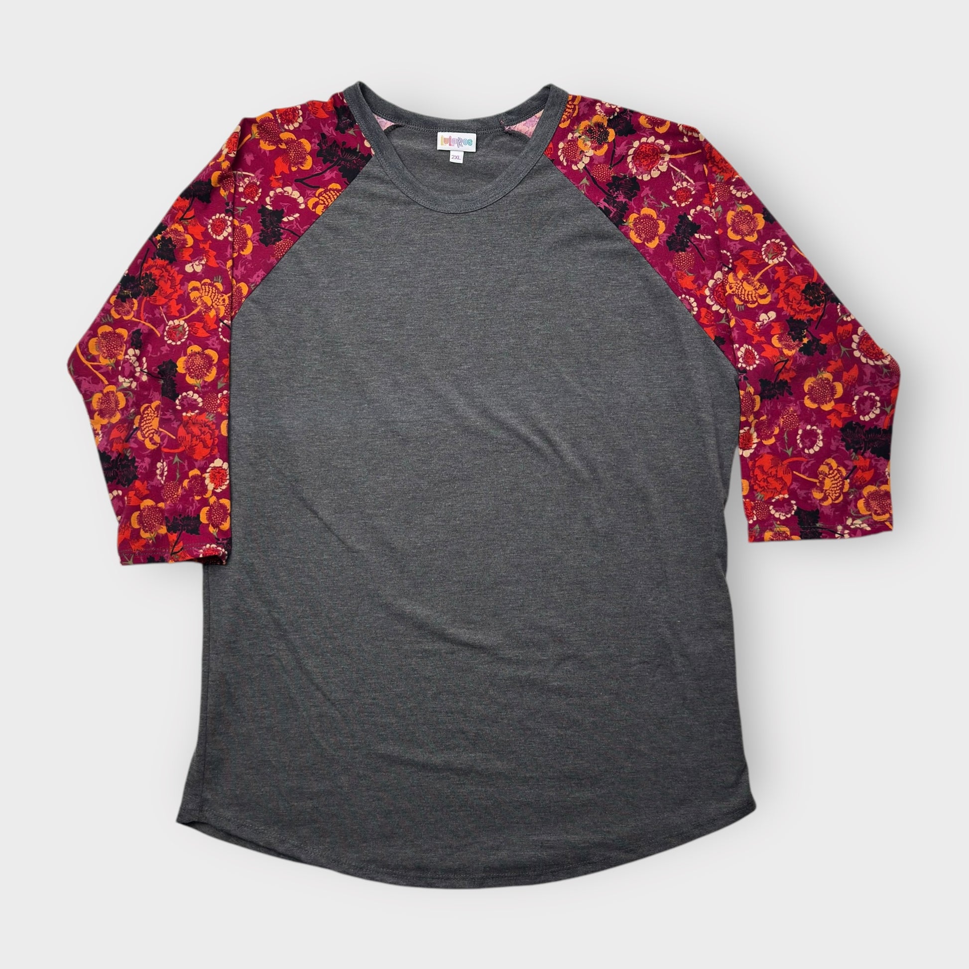LuLaRoe Randy Raglan T-Shirt - 2XL (20-22) - Charcoal Gray with Red/Yellow Floral Sleeves