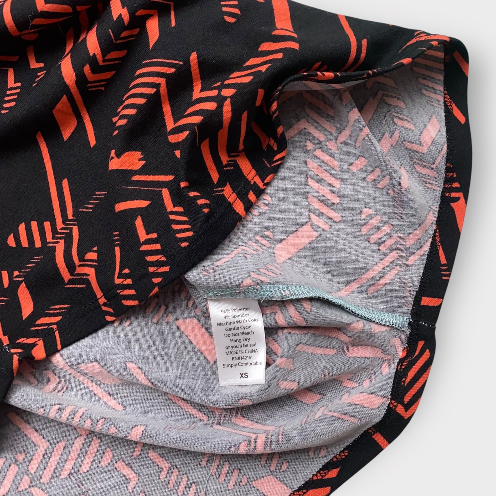LuLaRoe Randy Raglan Tee XS (0-2) - Black/Red Geometric Abstract Print with Mint Green Sleeves - Soft Stretch Fabric