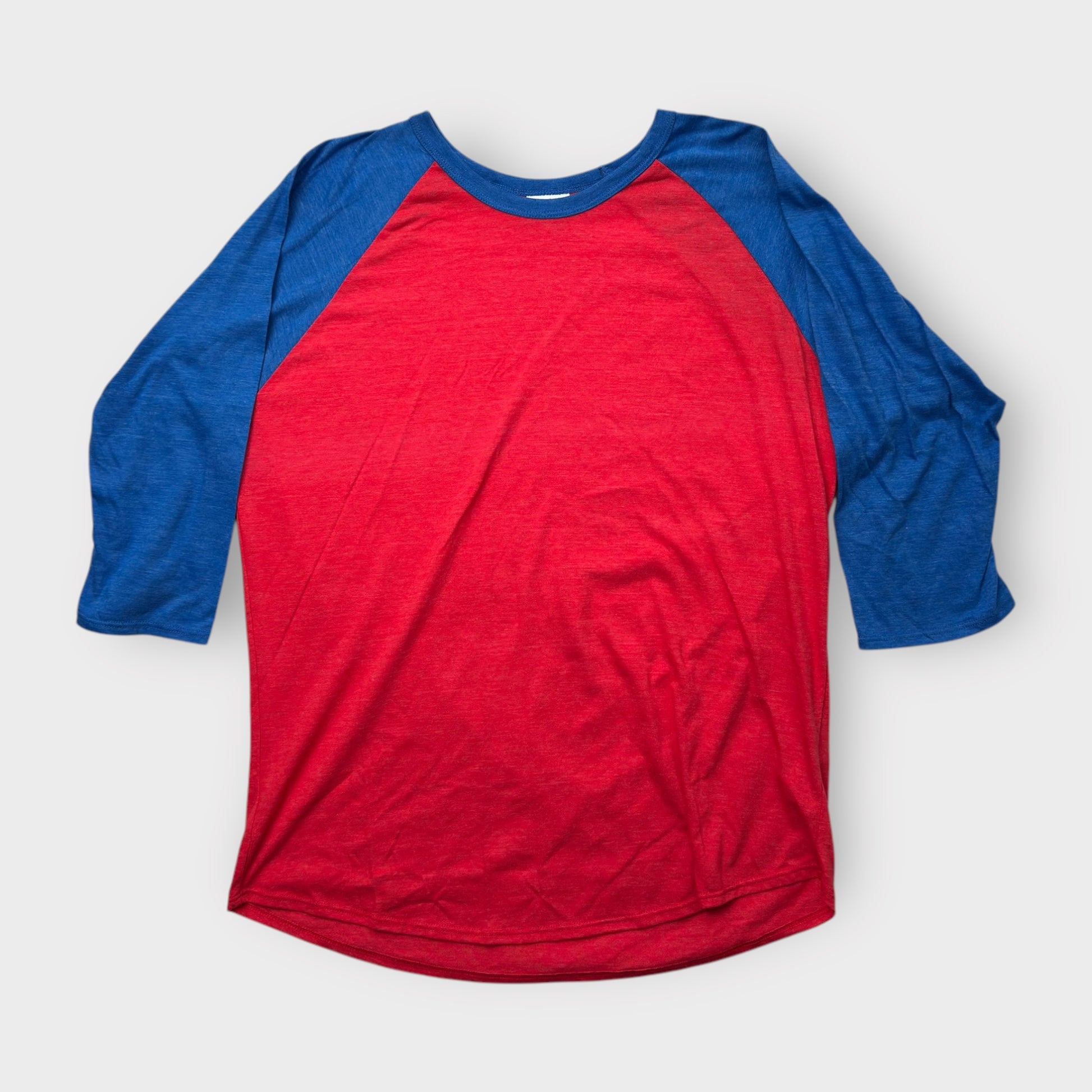 LuLaRoe Randy Tee 2XL (20-22) - Red and Blue Heathered Raglan - Soft Stretch Polyester Rayon Blend