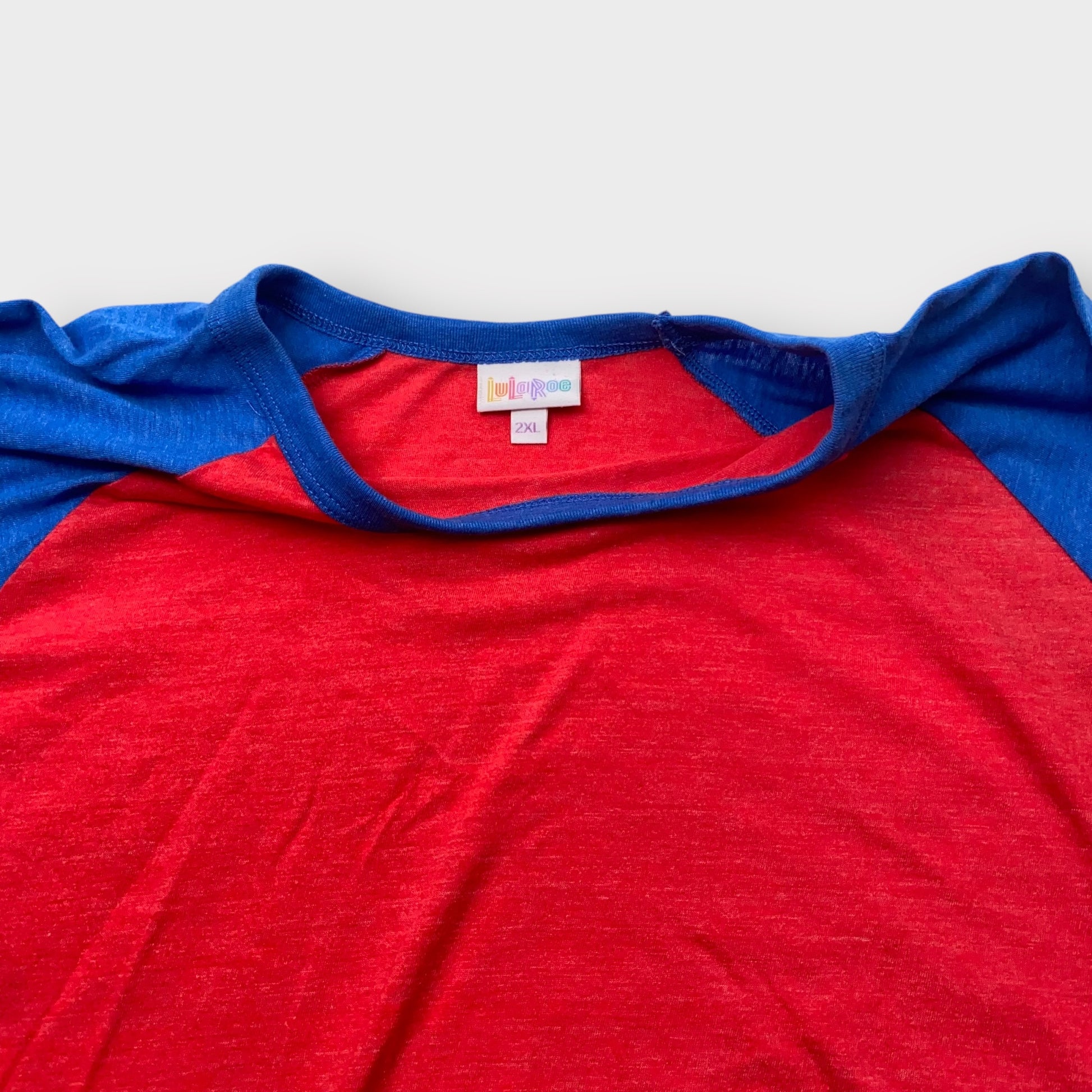 LuLaRoe Randy Tee - 2XL (20-22) - Red and Blue Heathered Raglan