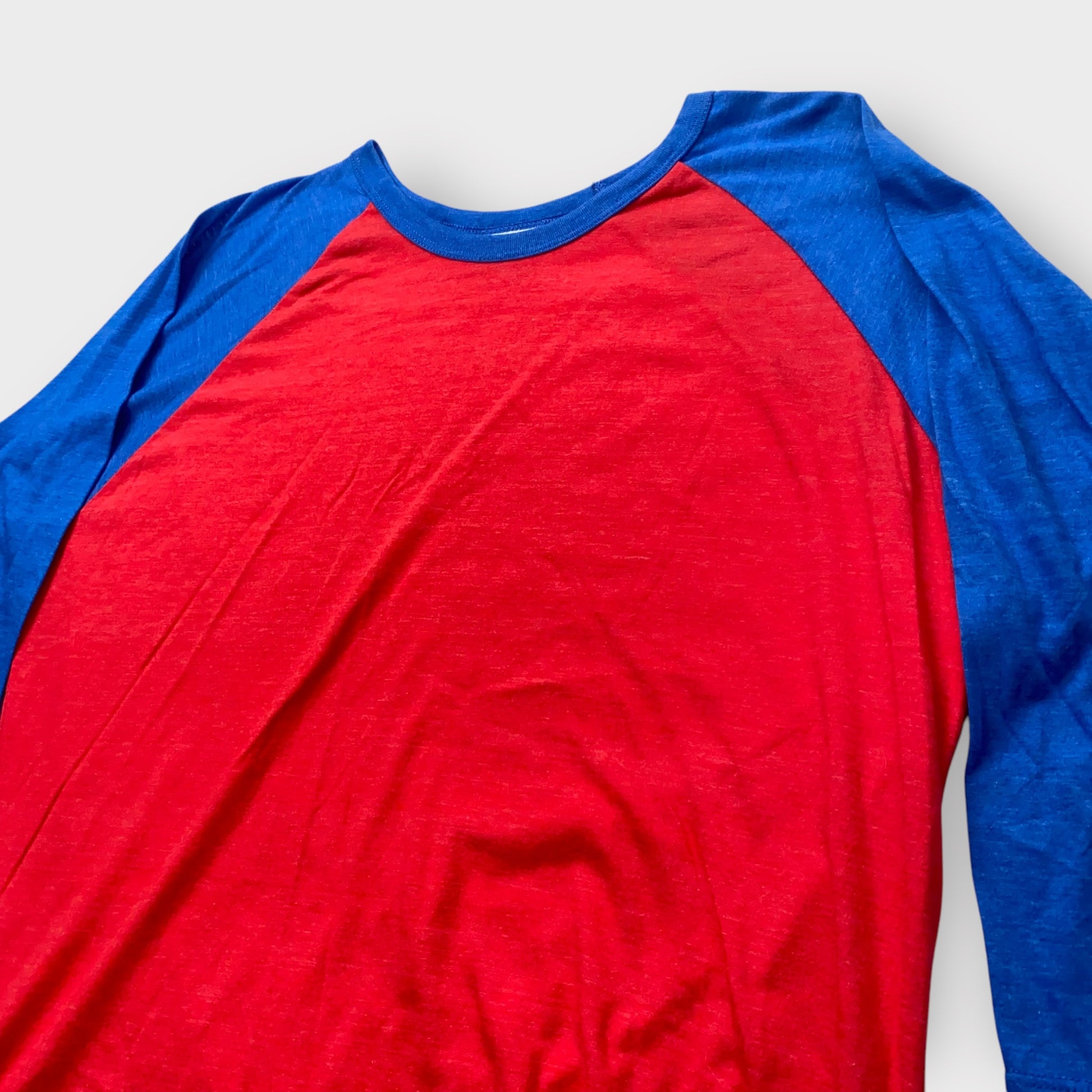 - Unique Heathered Design: Red and blue heathered raglan sleeves provide a modern and stylish contrast.