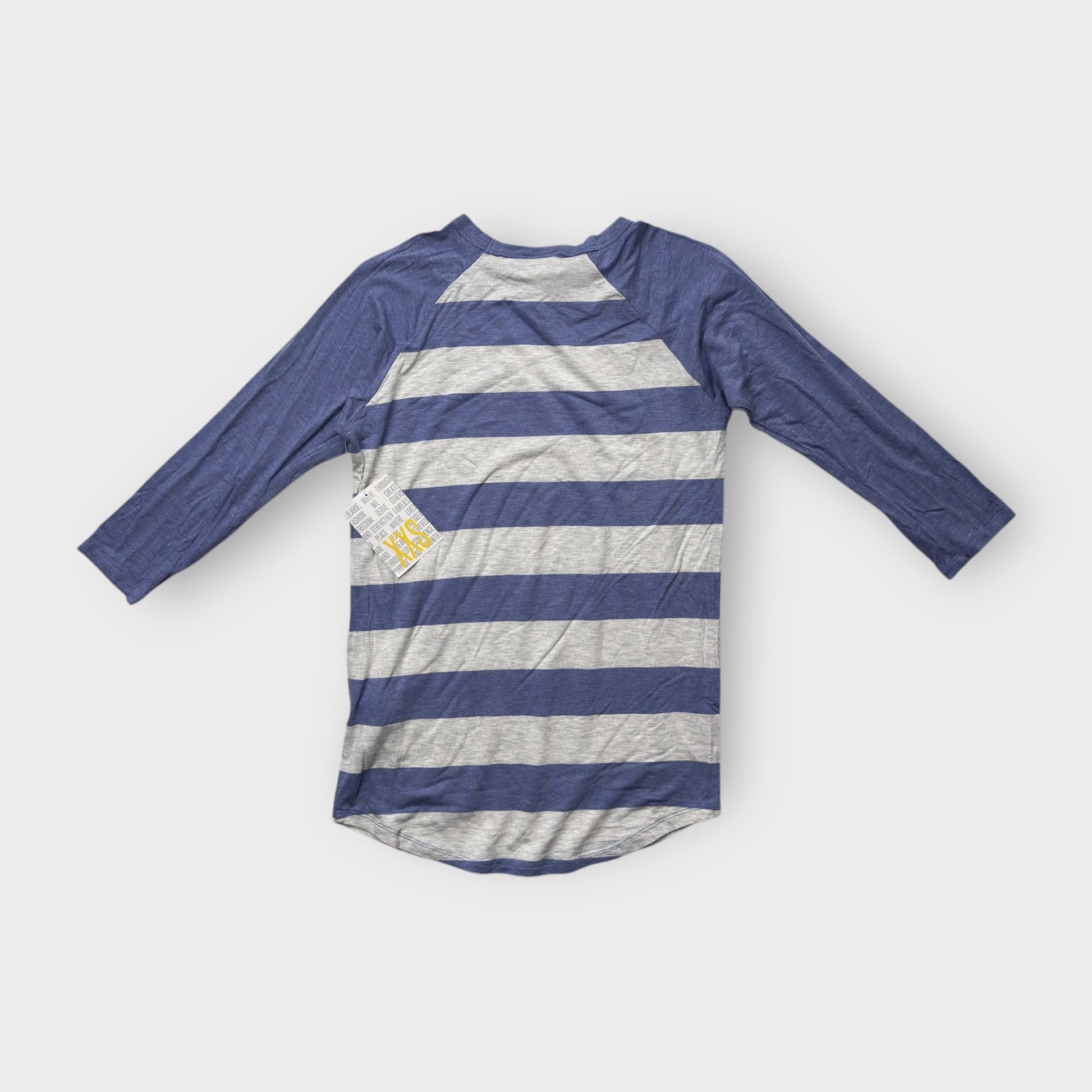 LuLaRoe Randy Tee - XXS (00) - Blue and Gray Striped Raglan