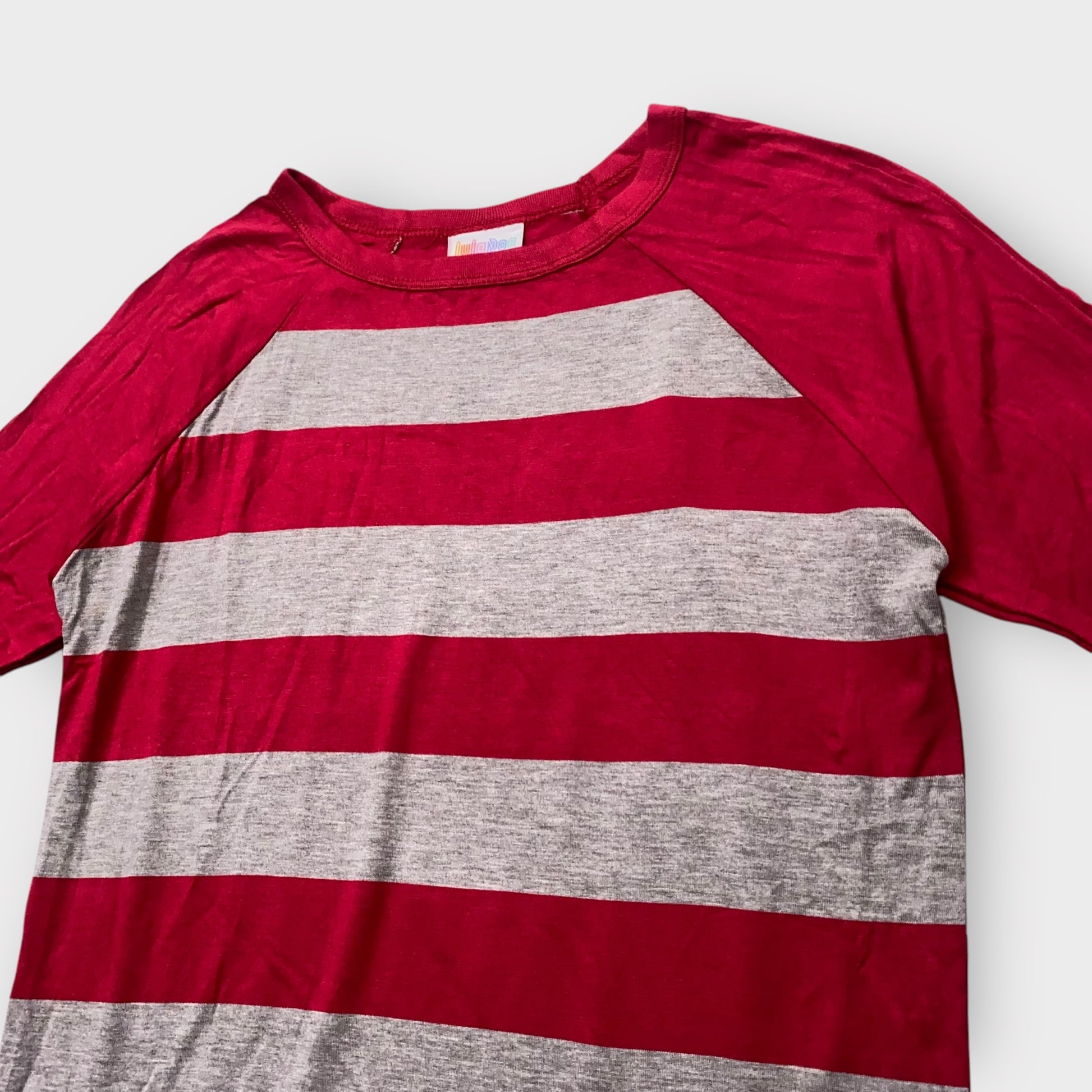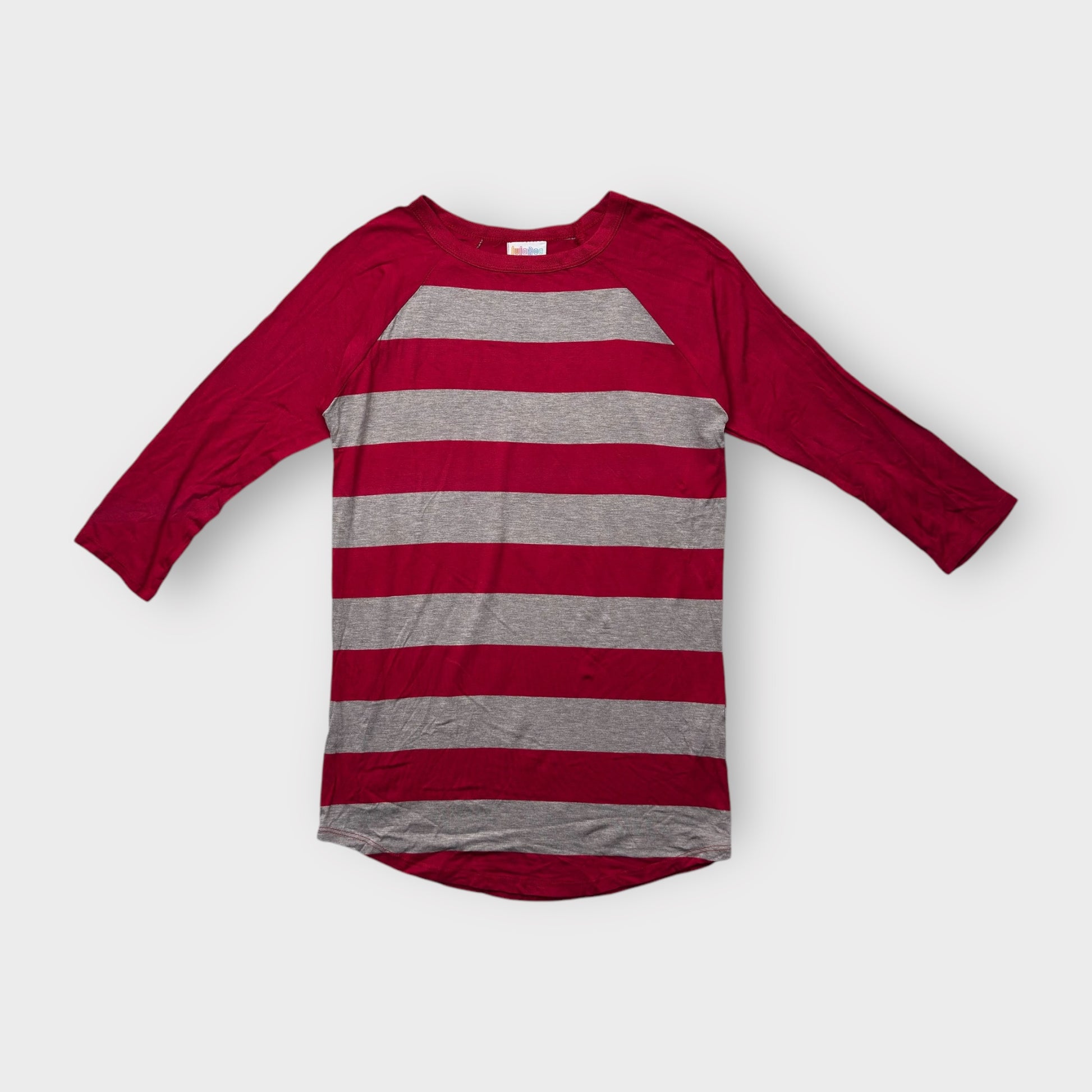 LuLaRoe Randy Tee - XXS (00) - Burgundy and Gray Striped Raglan