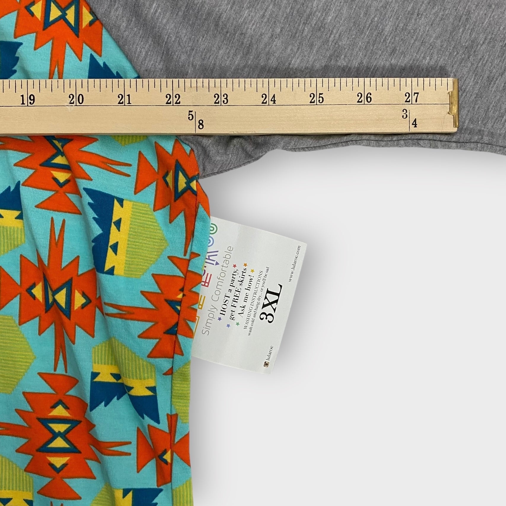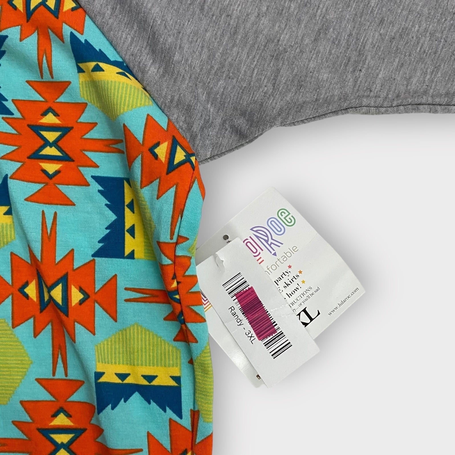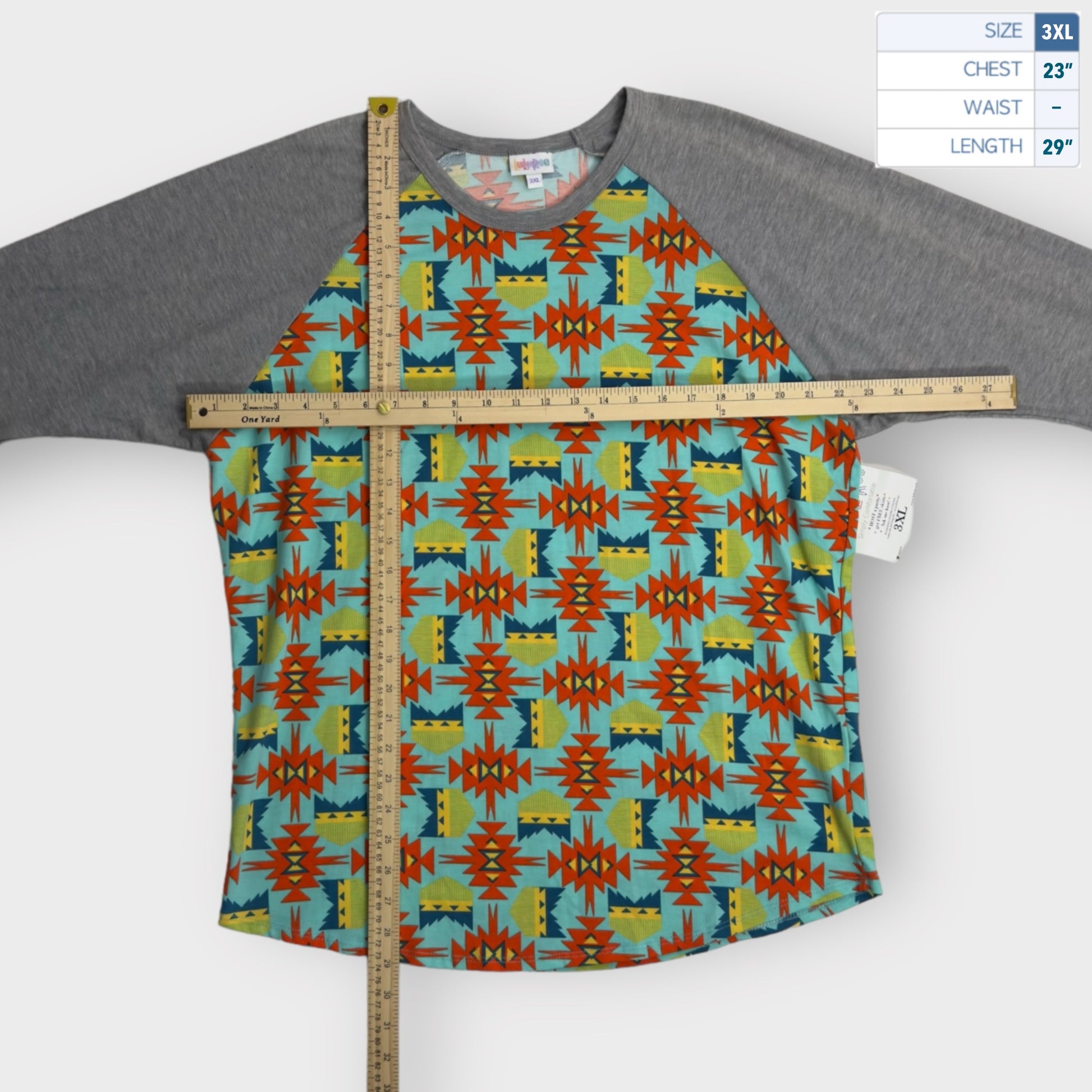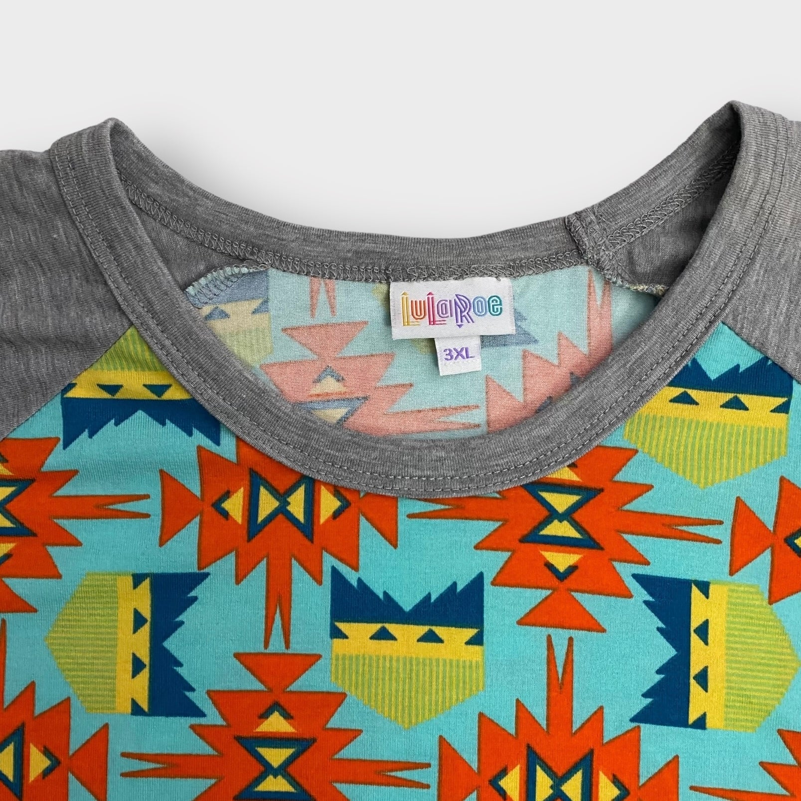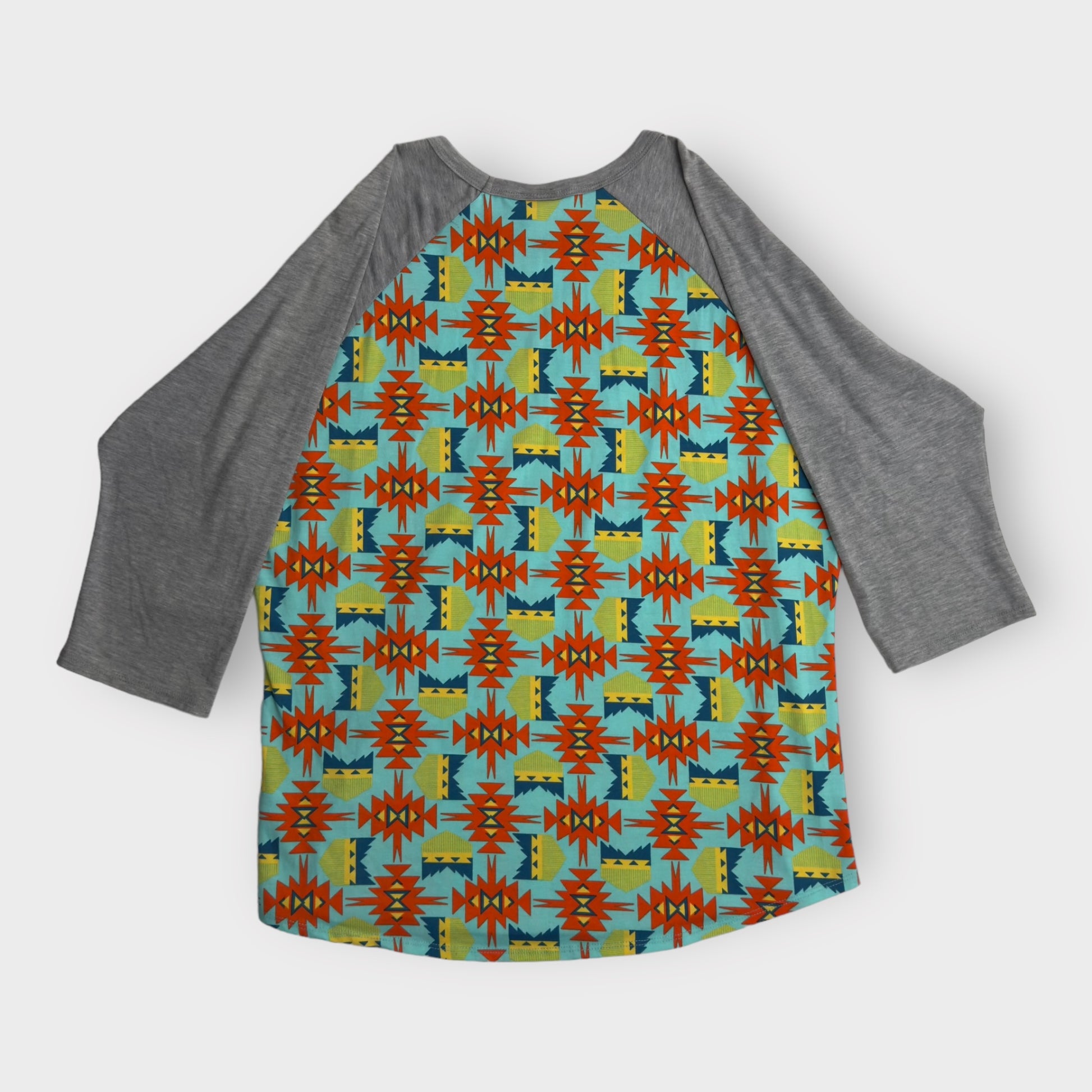 LuLaRoe Randy Unisex Raglan Tee | 3XL | Gray/ Multicolor Southwestern | Colorblock | 3/4 Sleeves | NWT