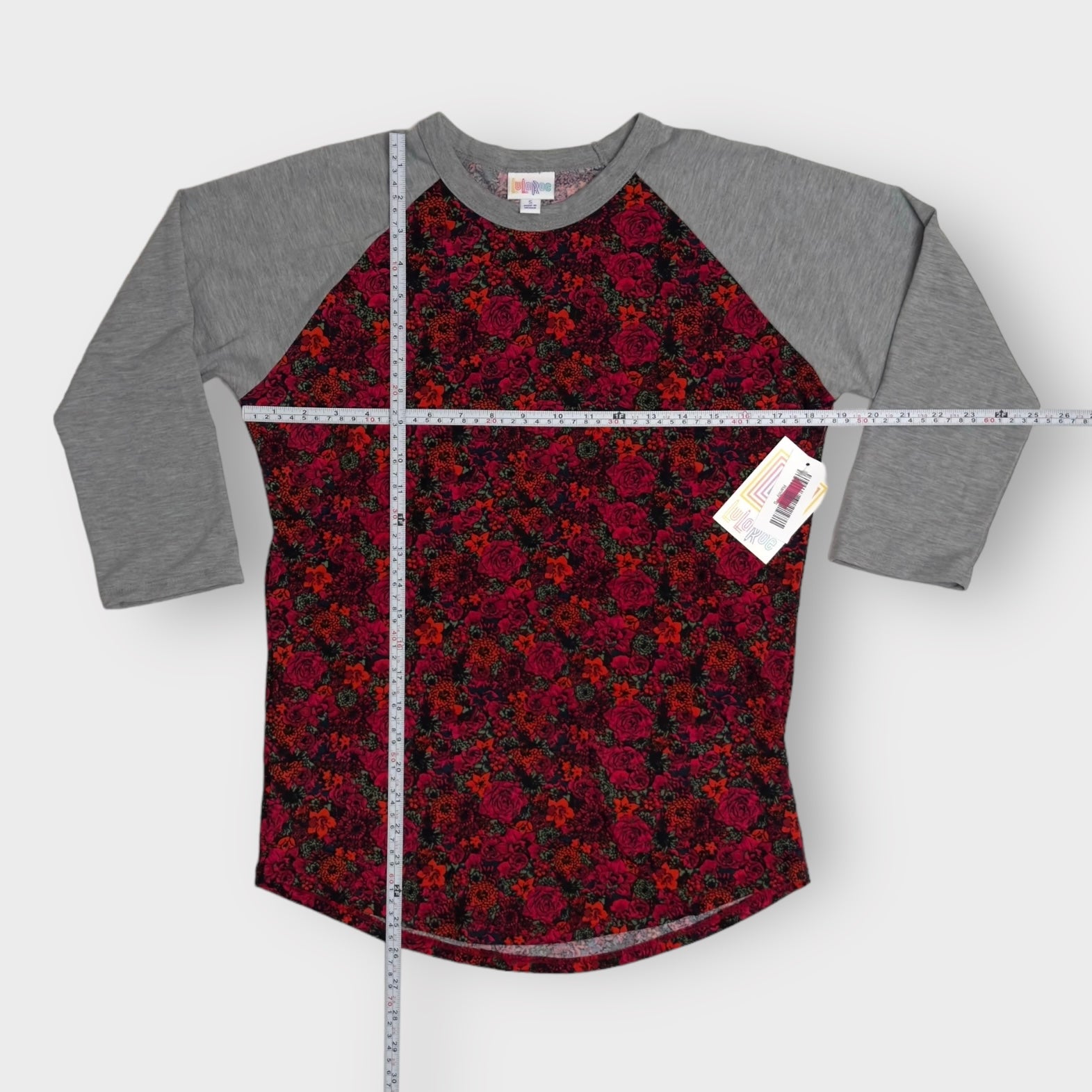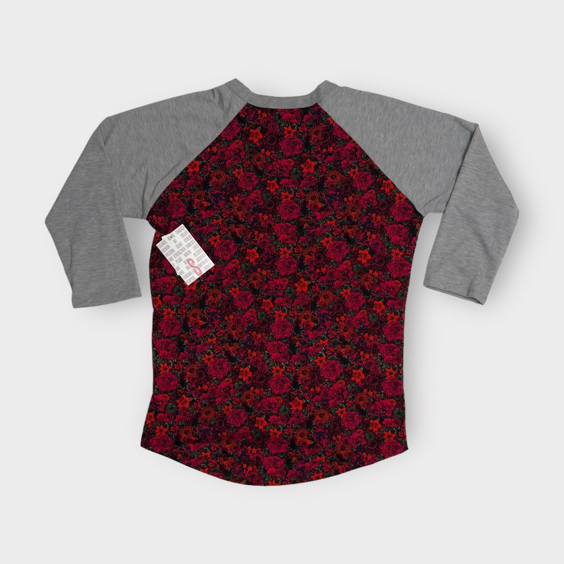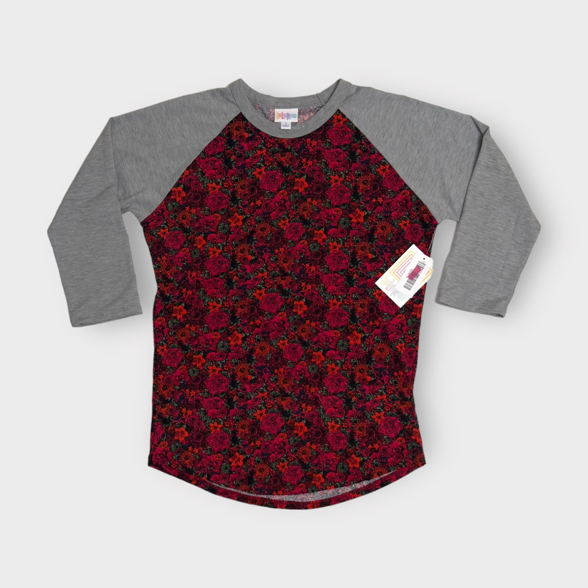 LuLaRoe Randy Unisex Raglan Tee | S | Red/Gray Floral/Colorblock | NWT