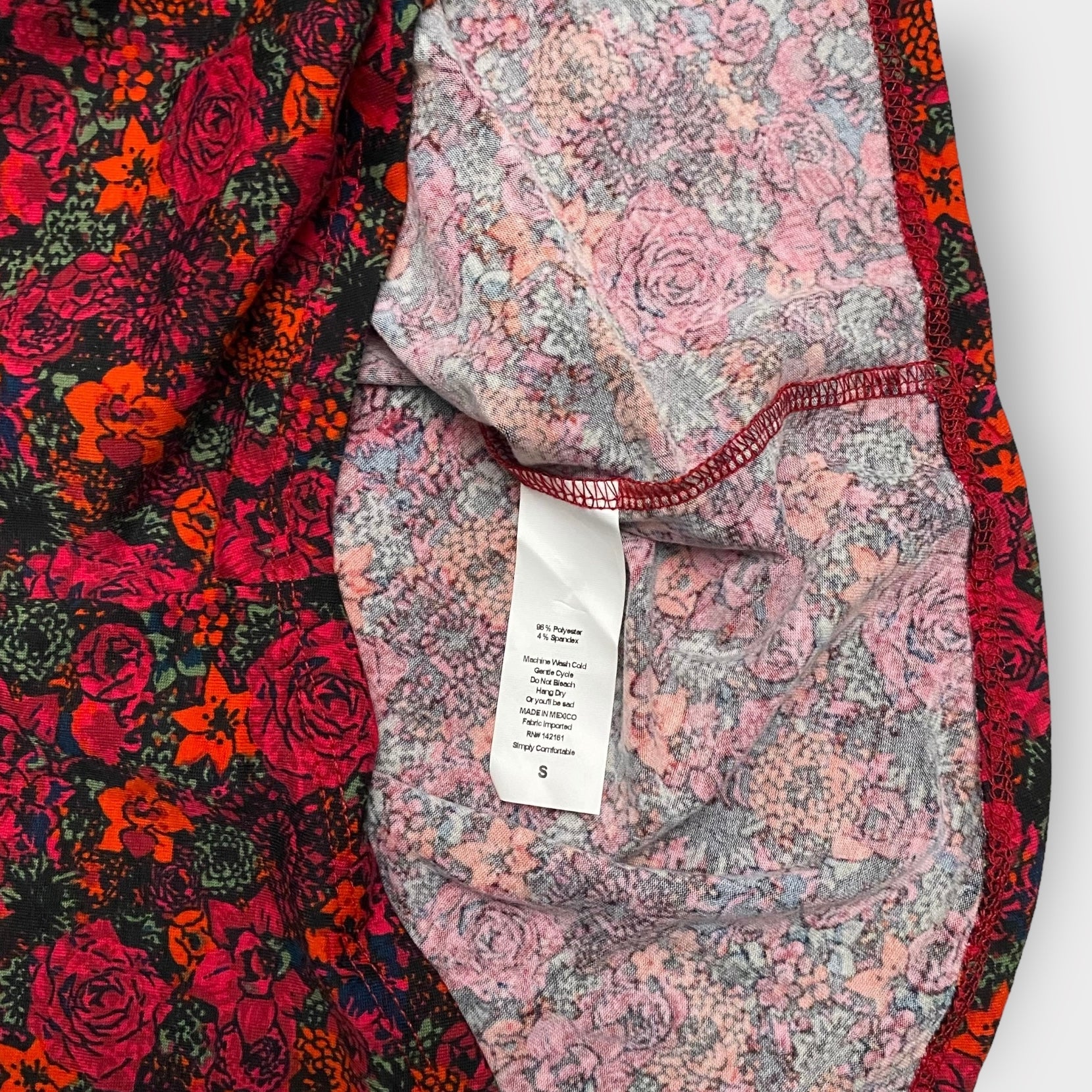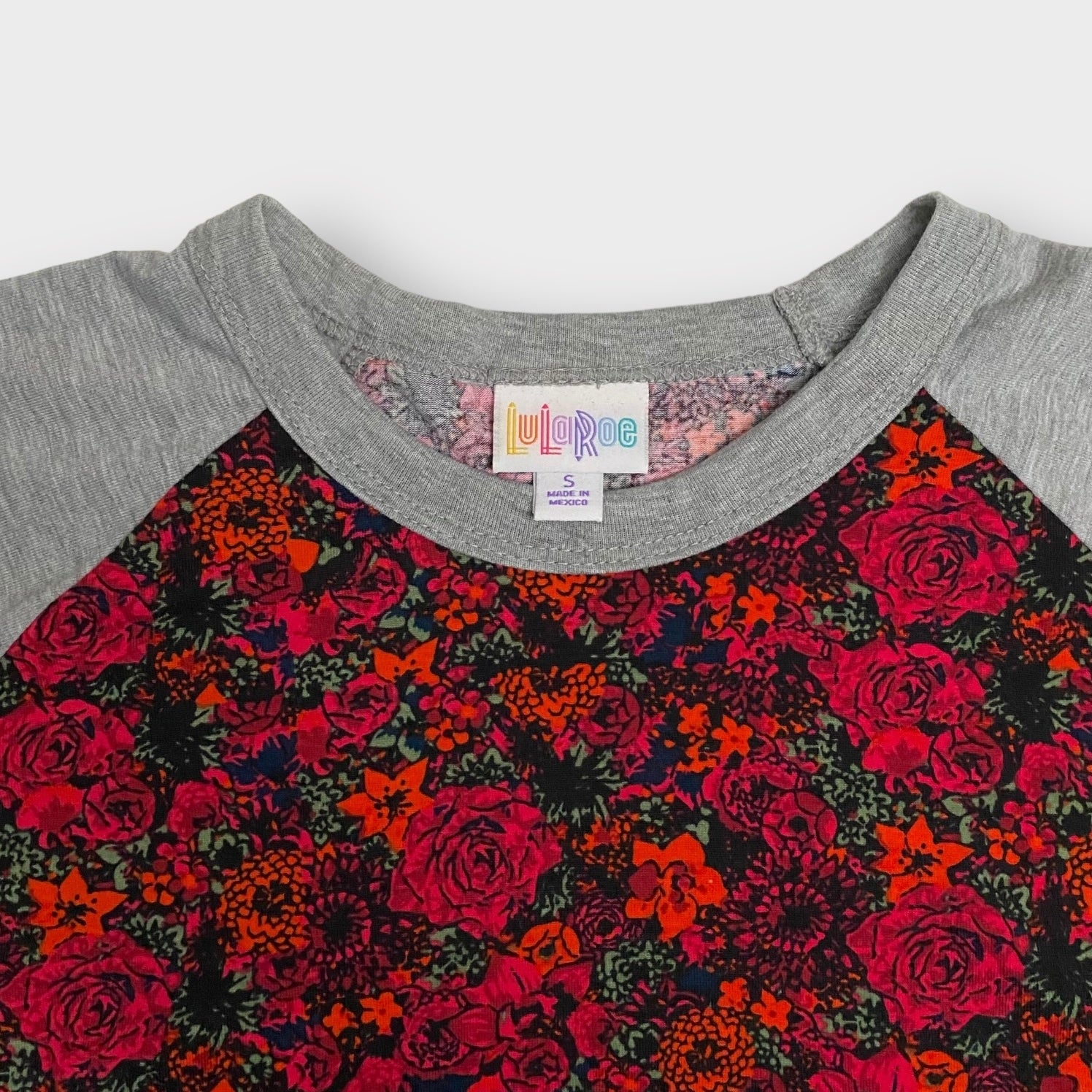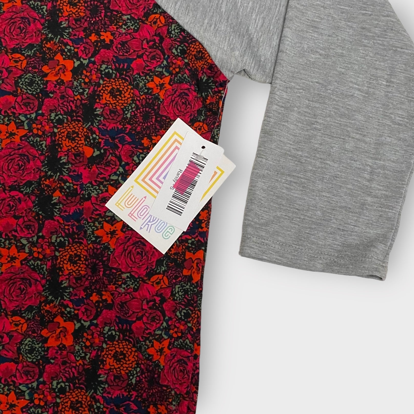 LuLaRoe Randy Unisex Raglan Tee | S | Red/Gray Floral/Colorblock | NWT