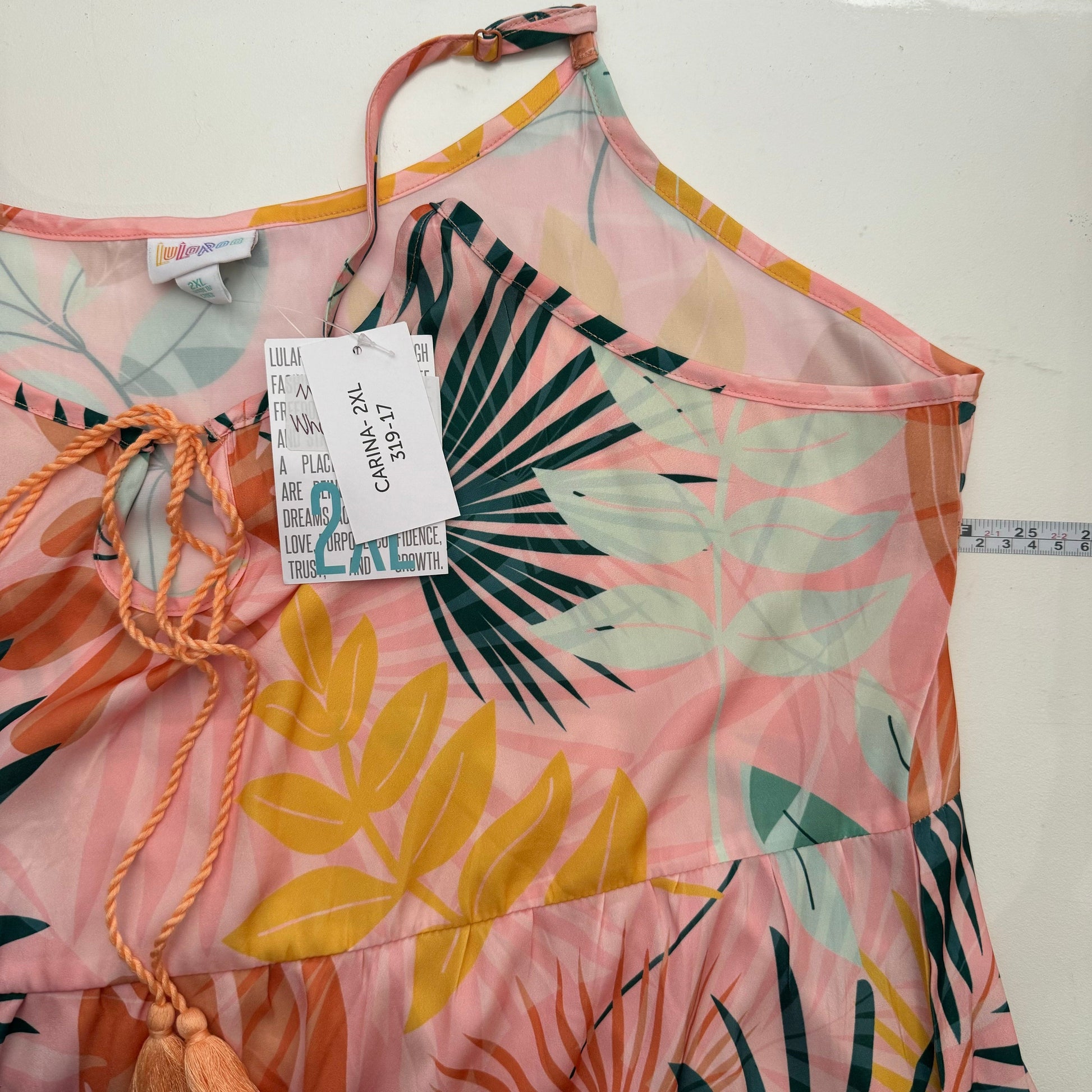 LuLaRoe Resort Collection 2023 | CARINA Tiered Maxi Dress | 2XL (20-22) | Peach | Tropical | NWT
