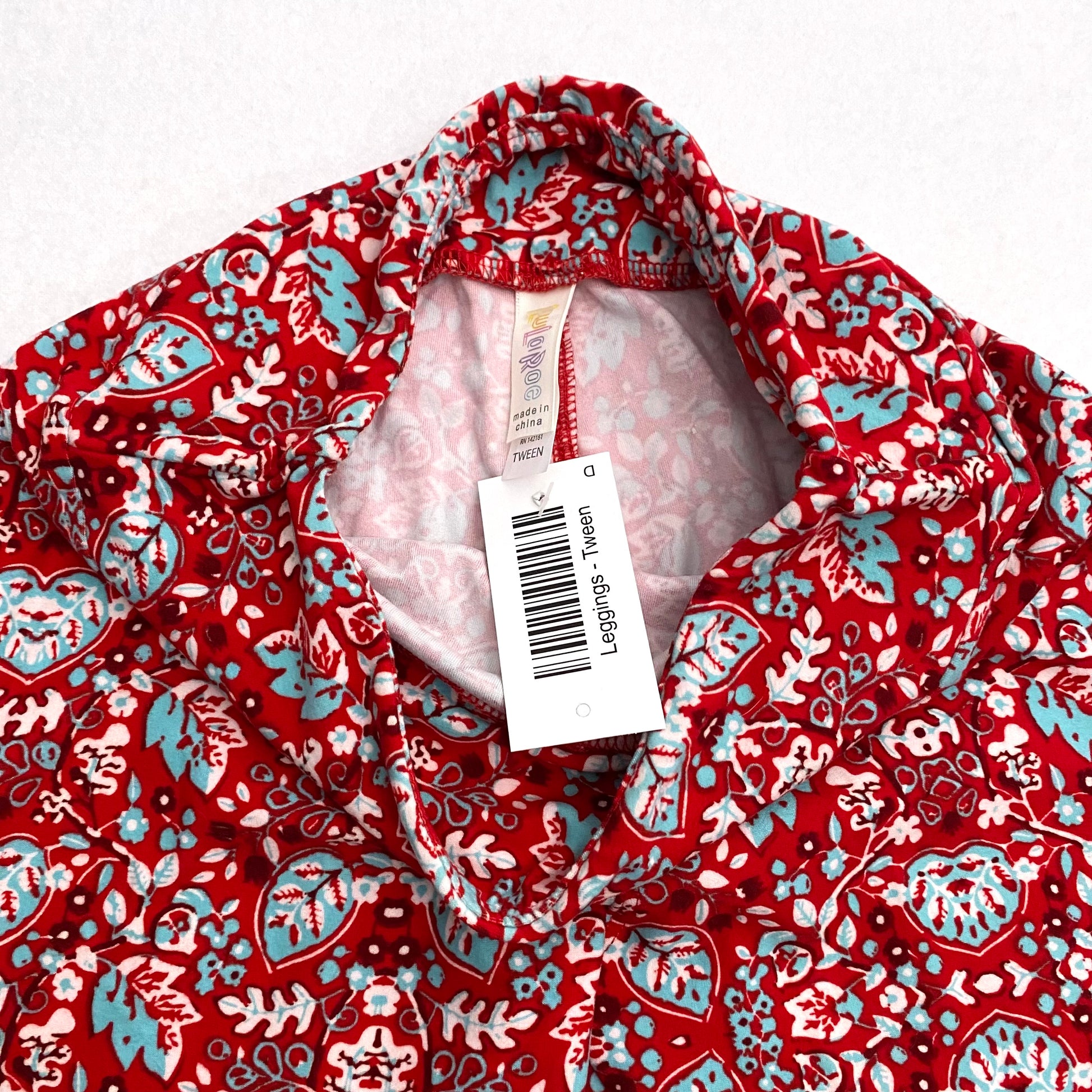 LuLaRoe Juniors Leggings | Tween (00-0) | Red Botanical Print | Buttery Soft | New