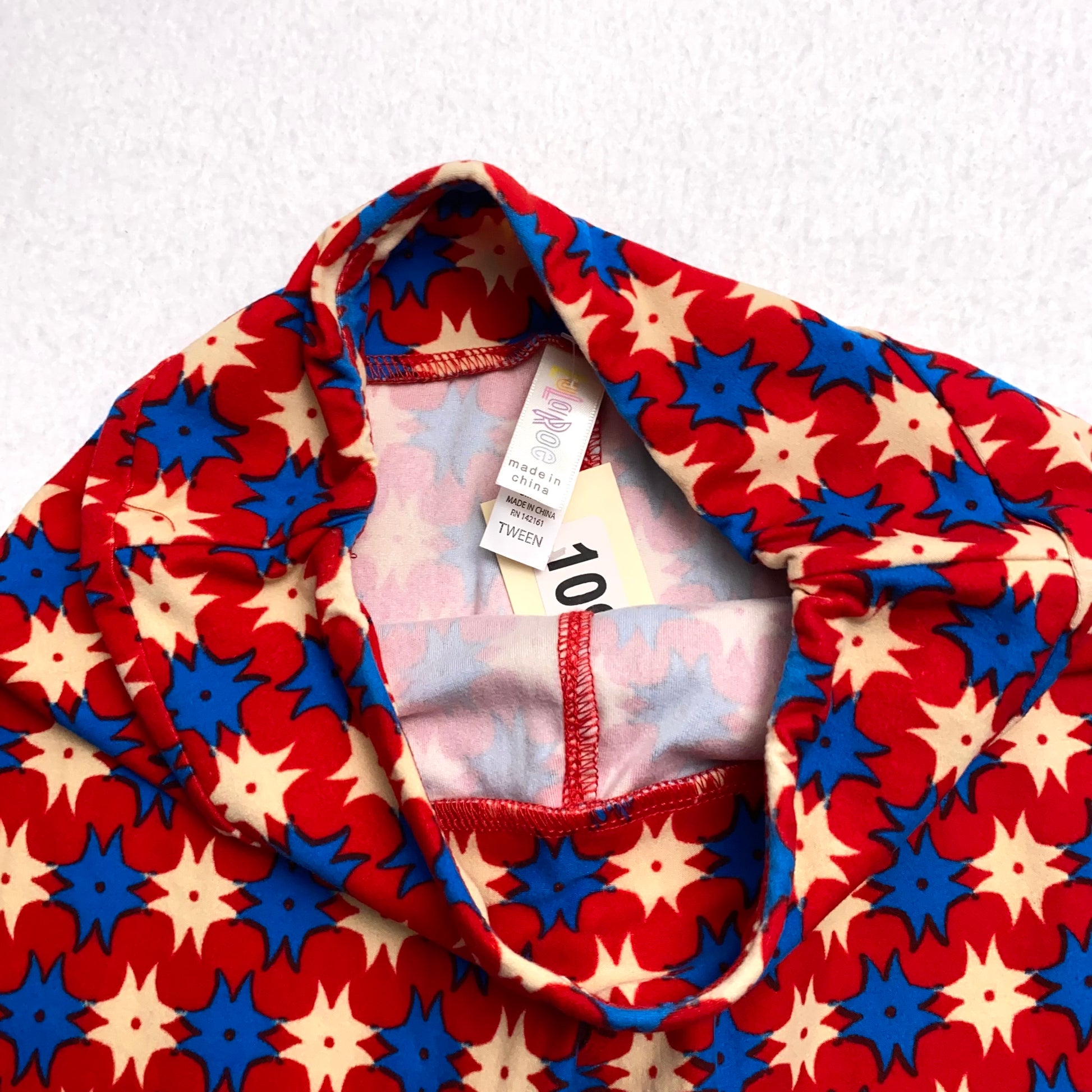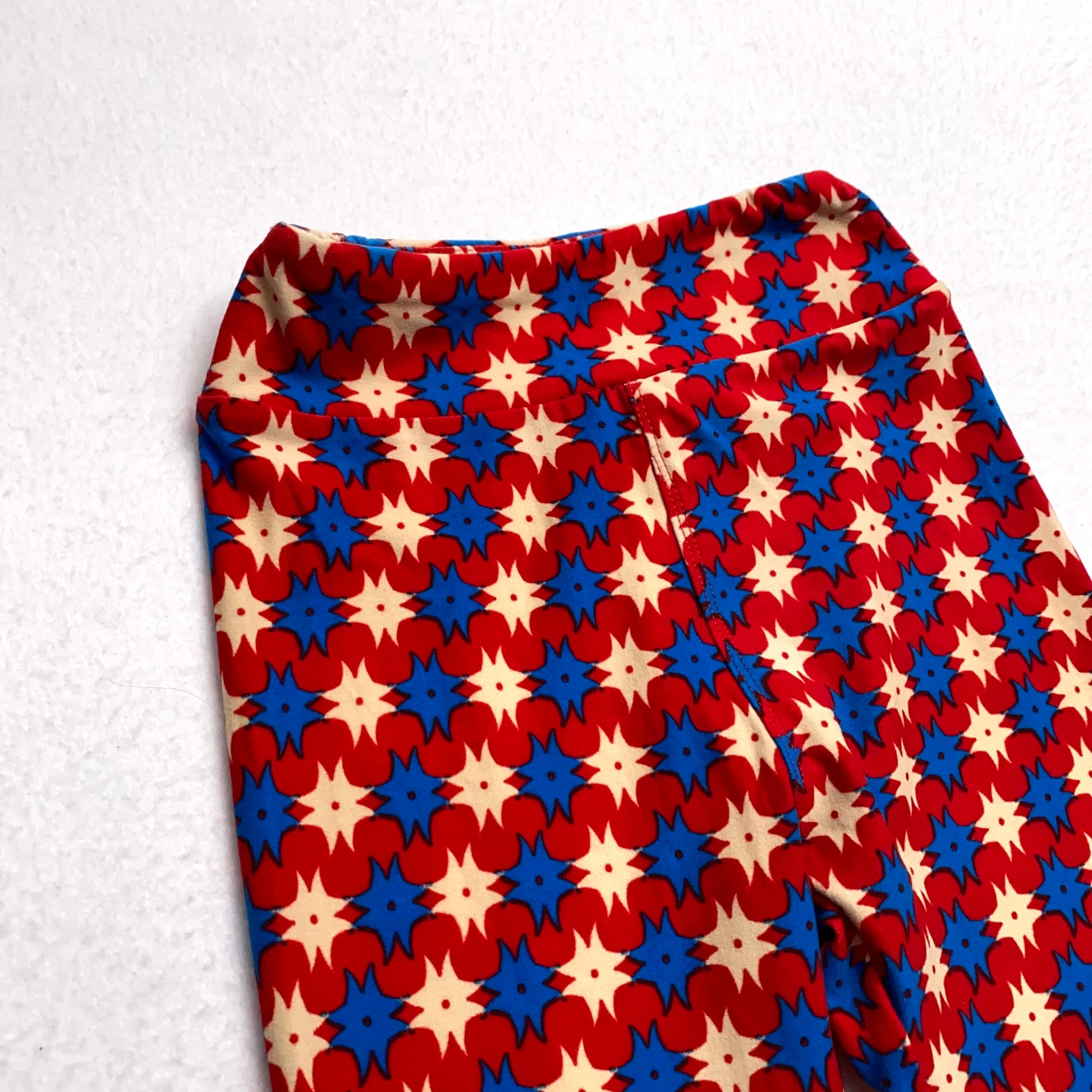 LuLaRoe Juniors Leggings | Tween (00-0) | Red/Blue Starburst Print | New