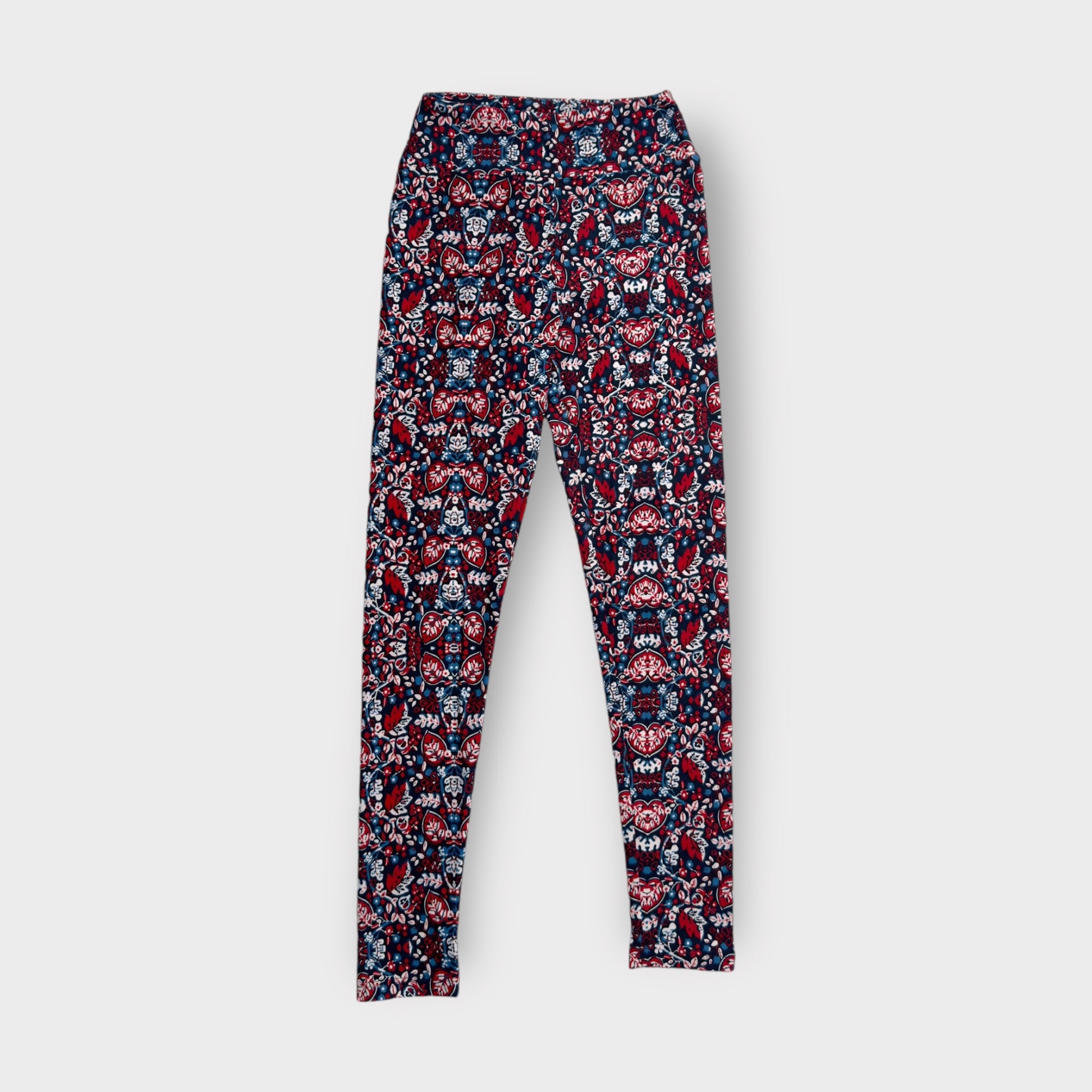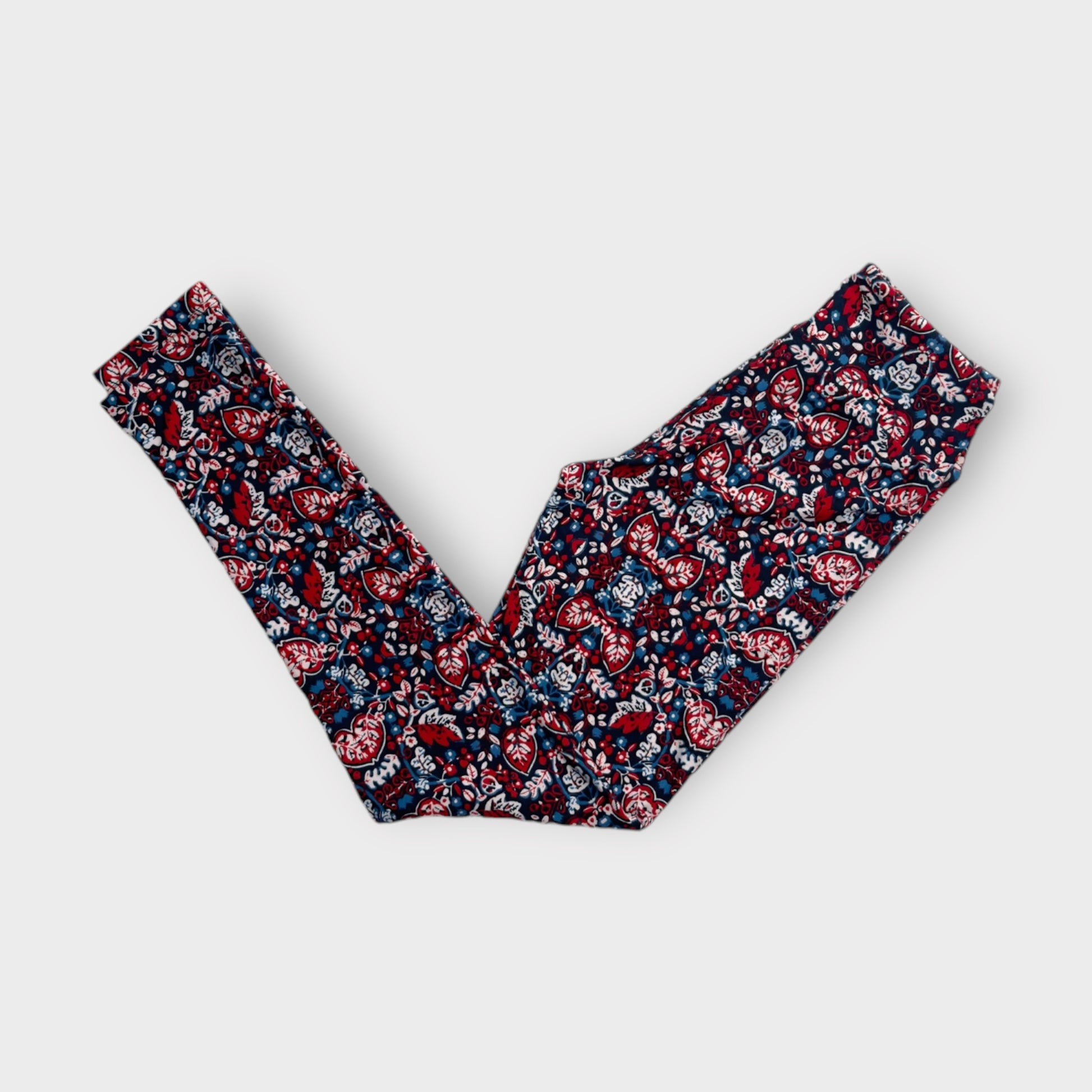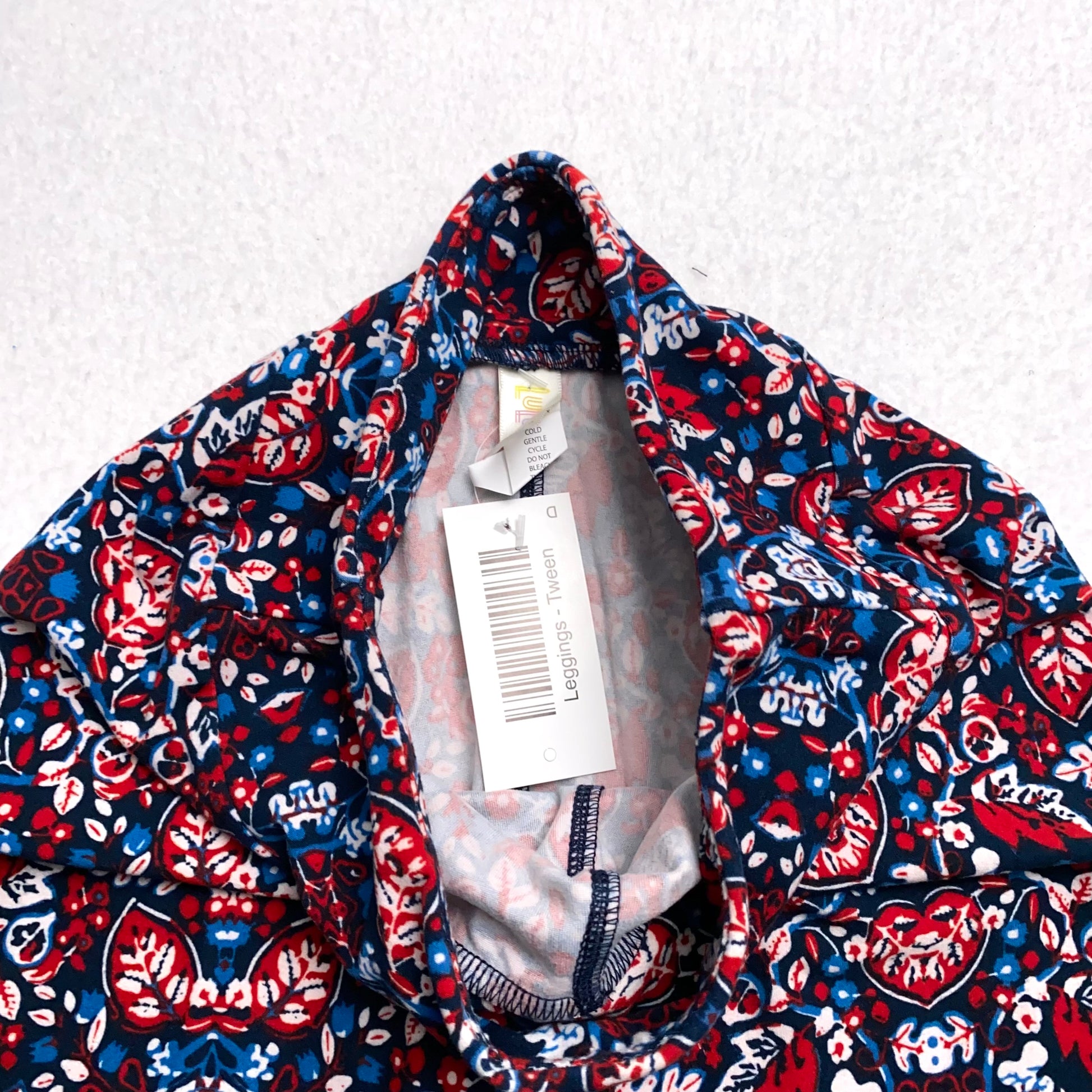 LuLaRoe Juniors Leggings | Tween (00-0) | Red/Blue/White Floral Print | New