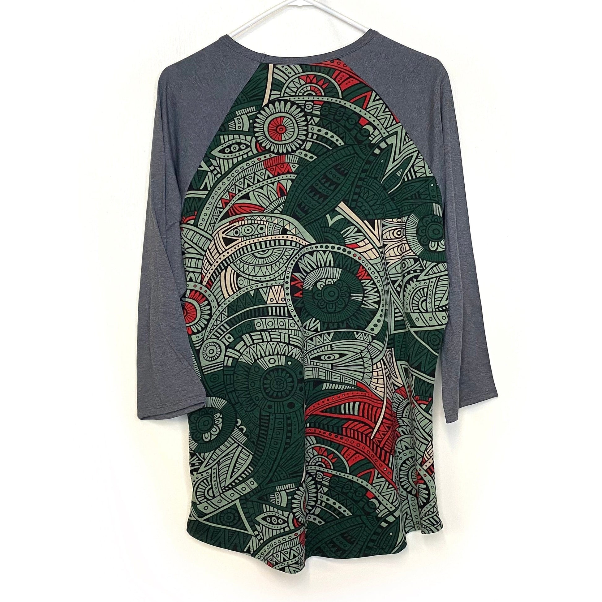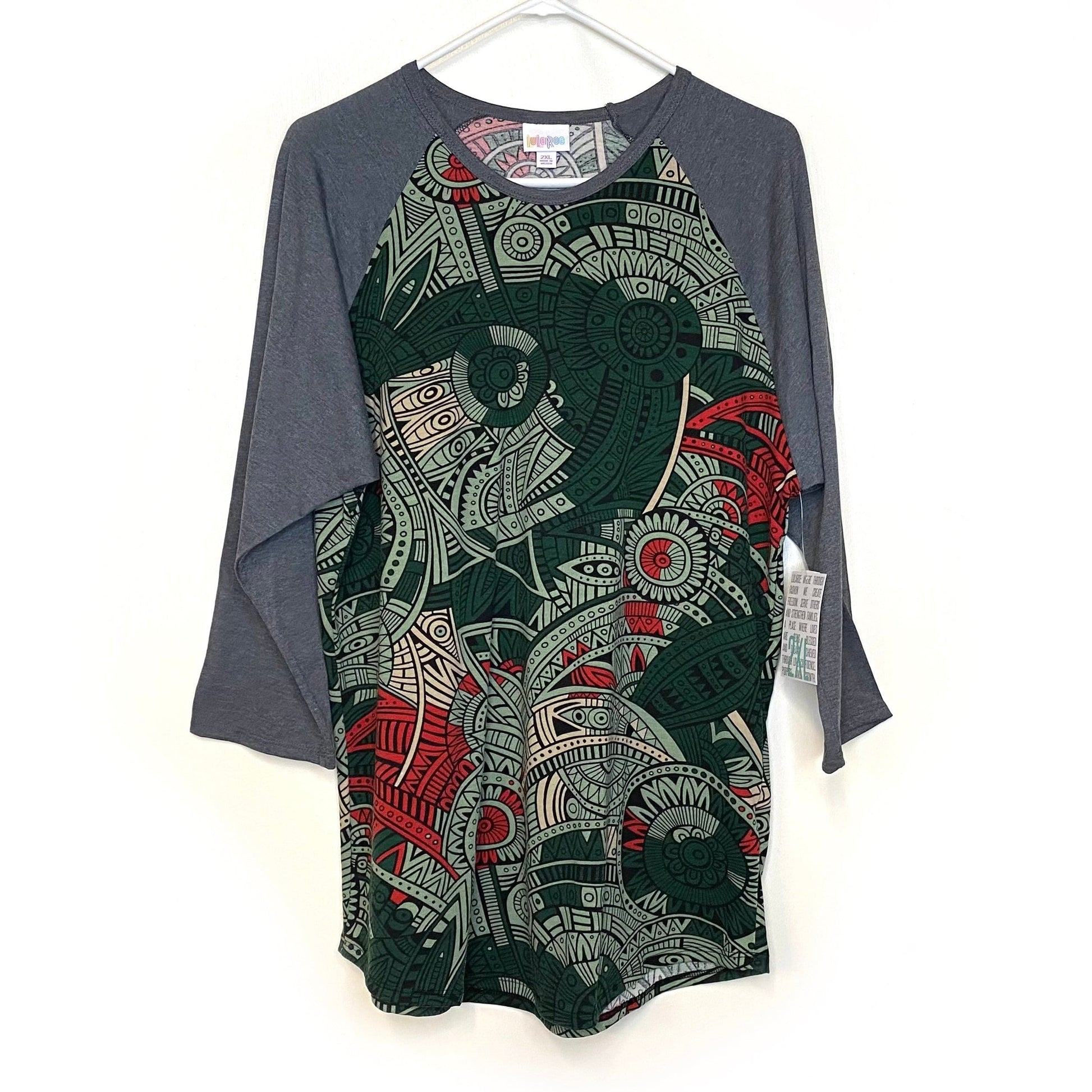 LuLaRoe Unisex 2XL Red/Green/Gray Randy Geometric/Tribal Raglan T-Shirt ¾ Sleeves NWT