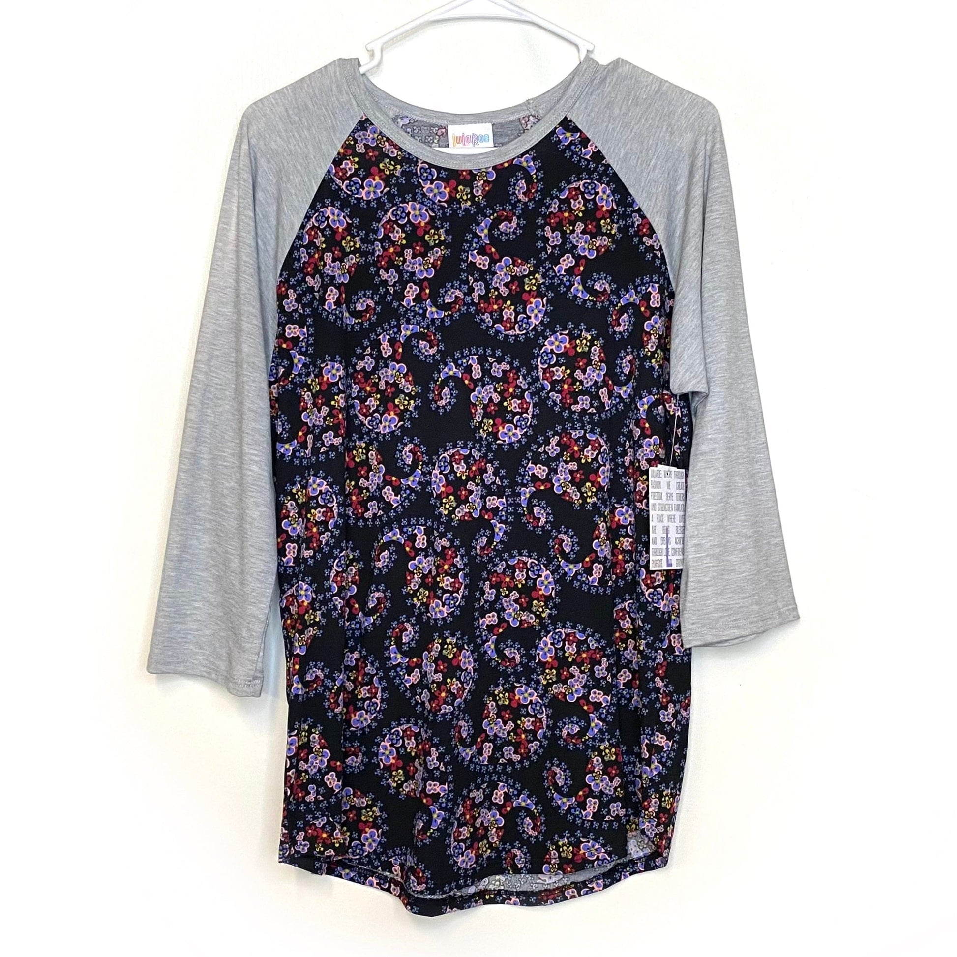 LuLaRoe Unisex L Blue/Red/Black Randy Floral/Paisley Raglan T-Shirt ¾ Sleeves NWT