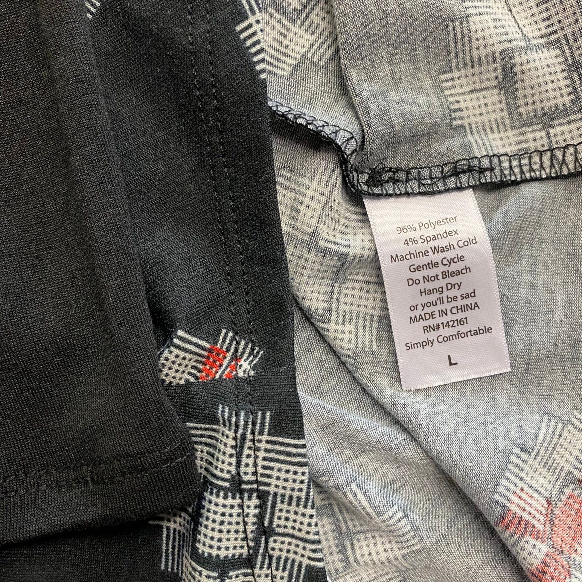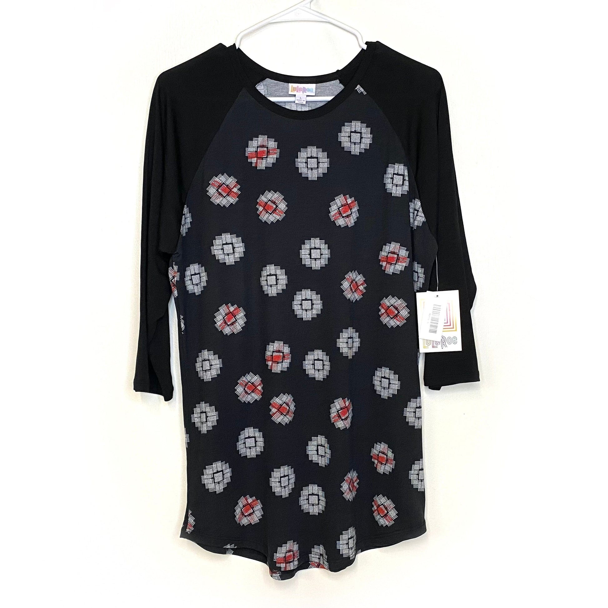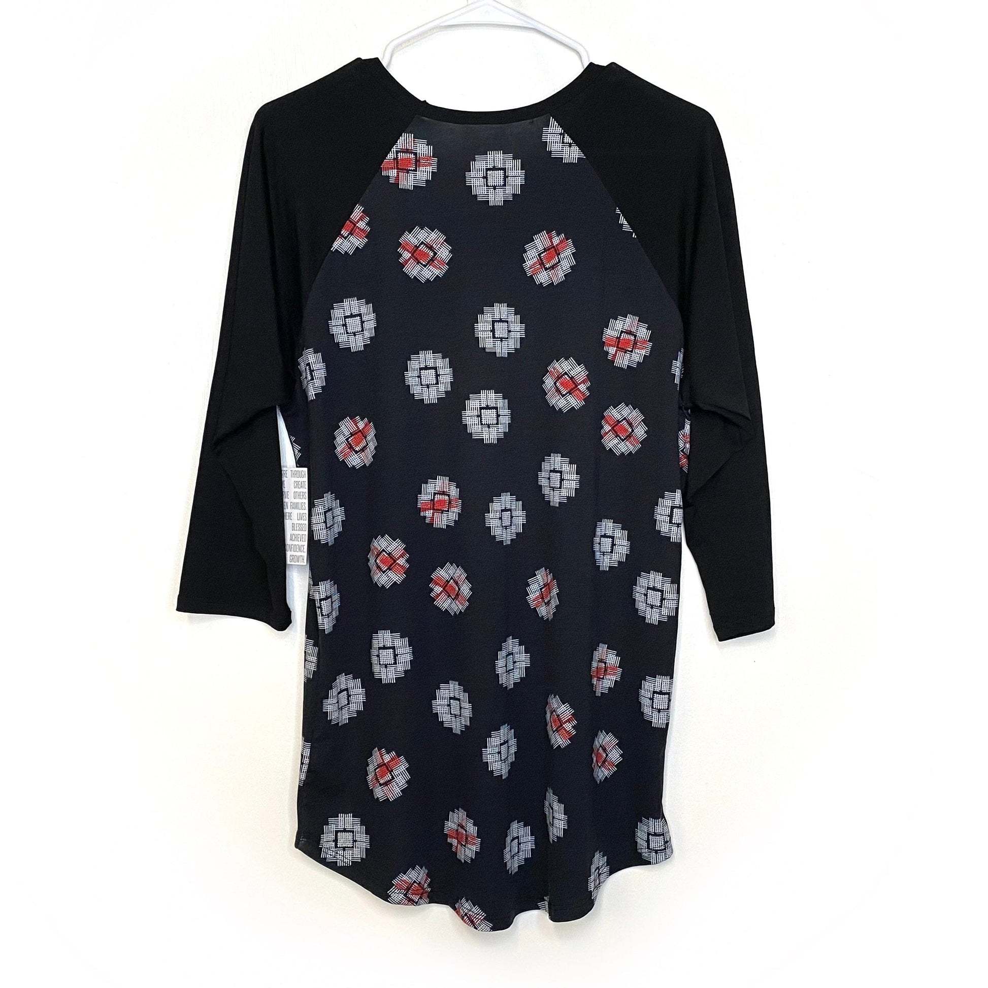 LuLaRoe Black Geometric Raglan T-Shirt Details