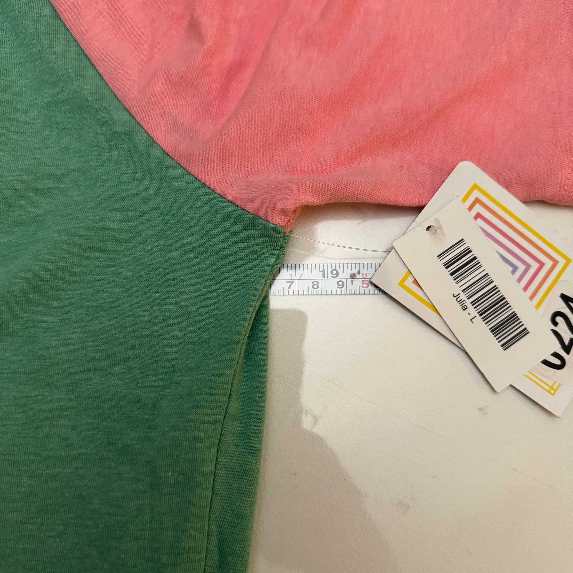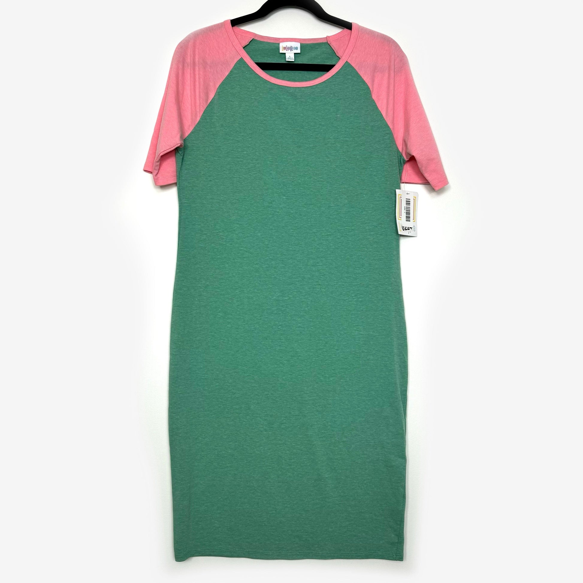 LuLaRoe Julia Bodycon Dress | L (12-14) | Pink/Green | Colorblock | NWT