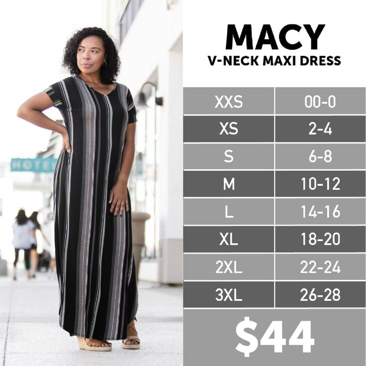 Don't miss out on the chance to elevate your wardrobe with this classic LuLaRoe Macy Dress. With limited availability, now is the perfect time to grab this unique piece that combines comfort and style. Act fast and make it yours today—your new favorite dress awaits!