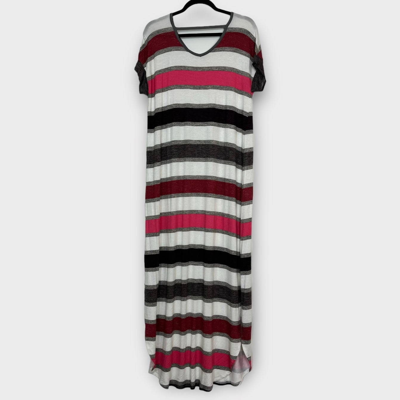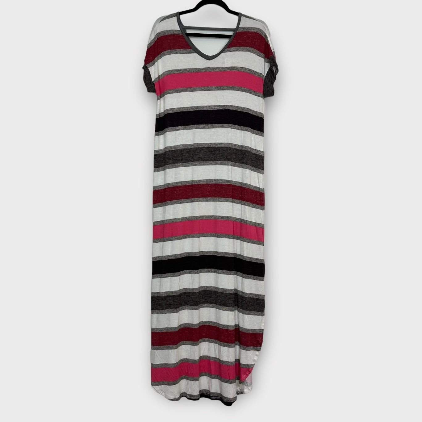 Step into a world of vibrant colors and effortless elegance with the LuLaRoe Macy Dress. This stunning multicolor Hawaiian maxi dress is designed to make you feel as fabulous as you look. Crafted from a lightweight blend of rayon and spandex, it drapes beautifully, offering a comfortable fit that flatters your silhouette. The eye-catching striped pattern adds a playful touch, making it perfect for any occasion, from beach outings to casual brunches.