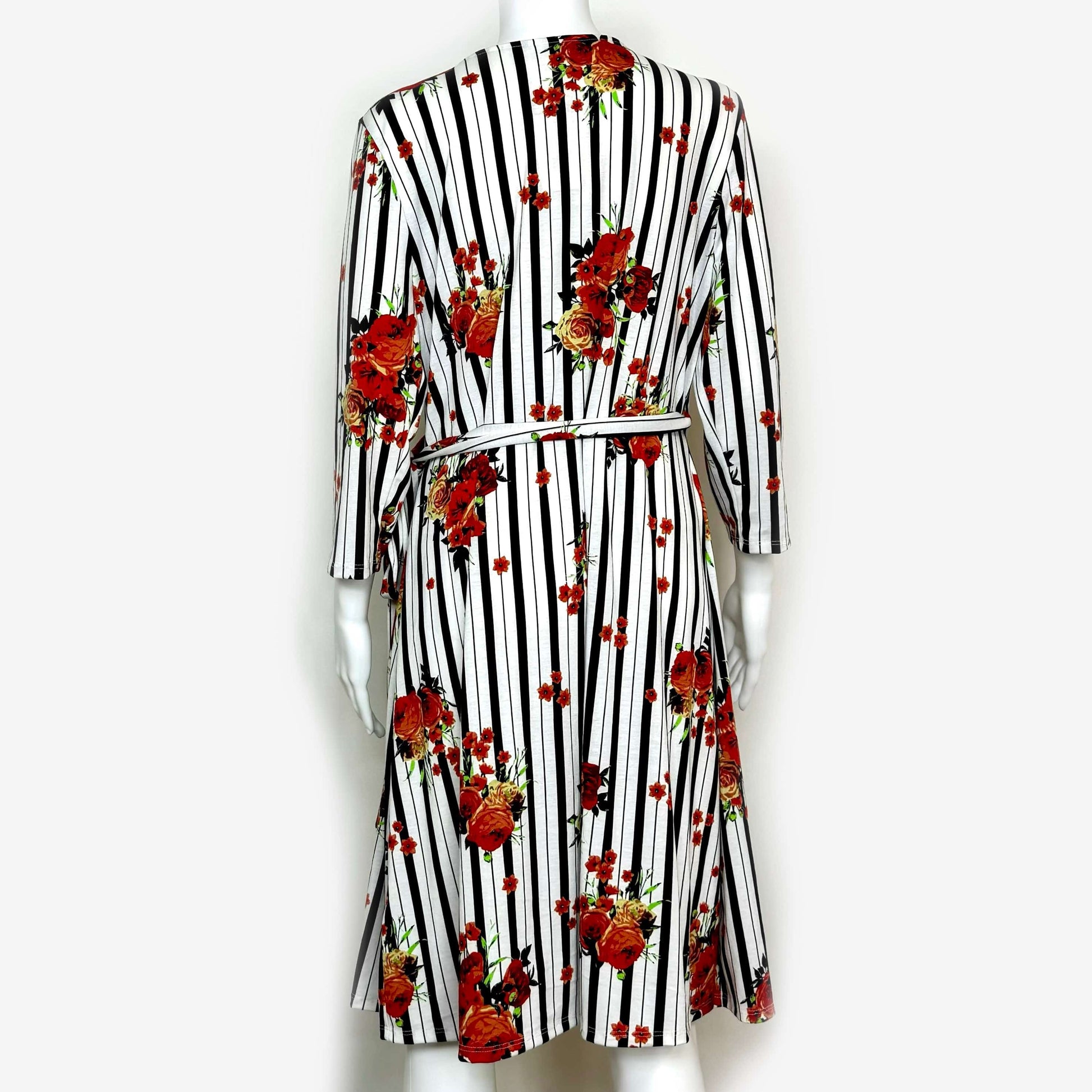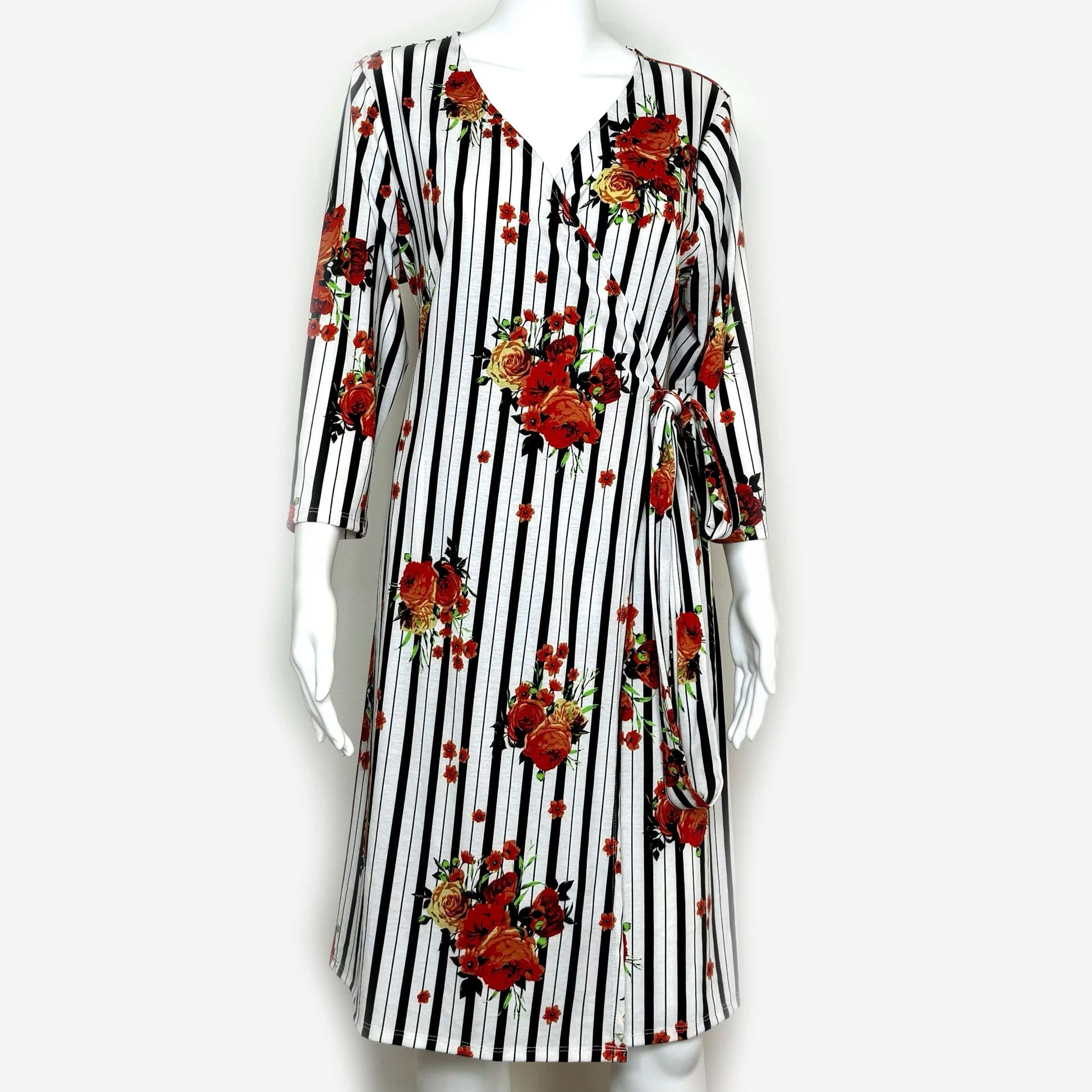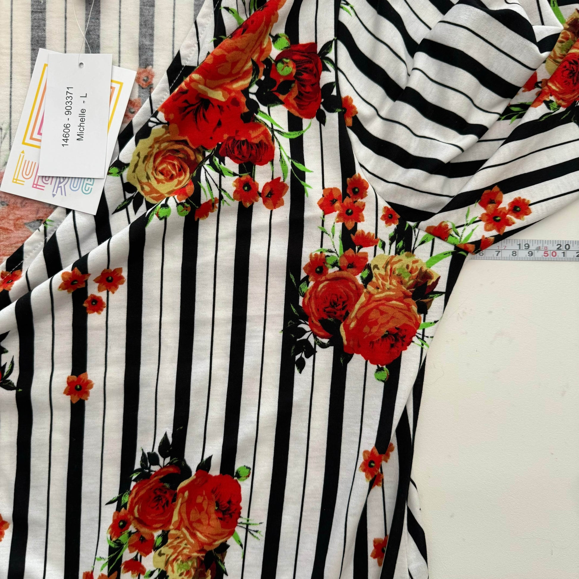 LuLaRoe Vault | Michelle Wrap Dress | Size: L | Color: Black/White/Red | Floral/Striped | NWT