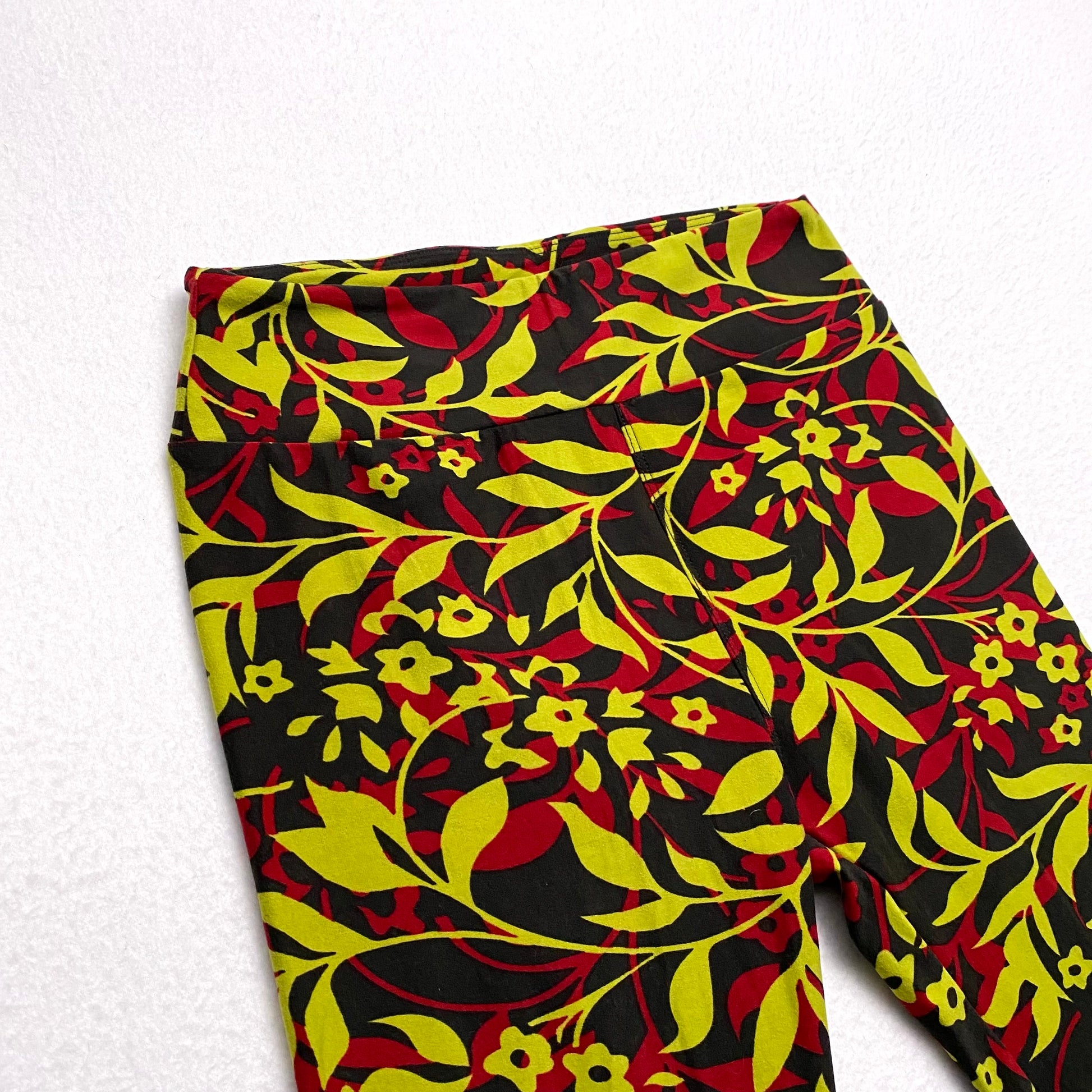 LuLaRoe Womens Leggings | One Size (0-10) | Red & Yellow Floral Print | Soft Stretch Knit | New