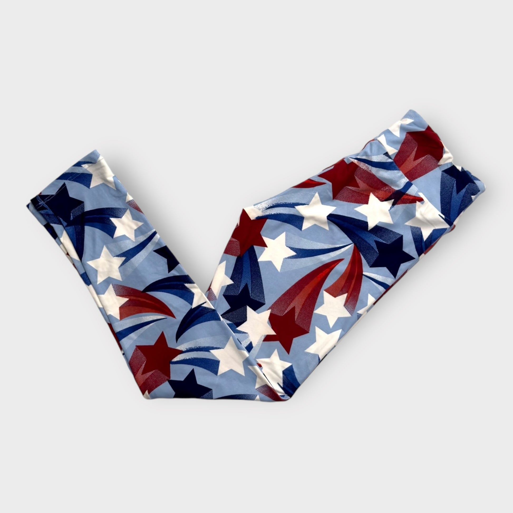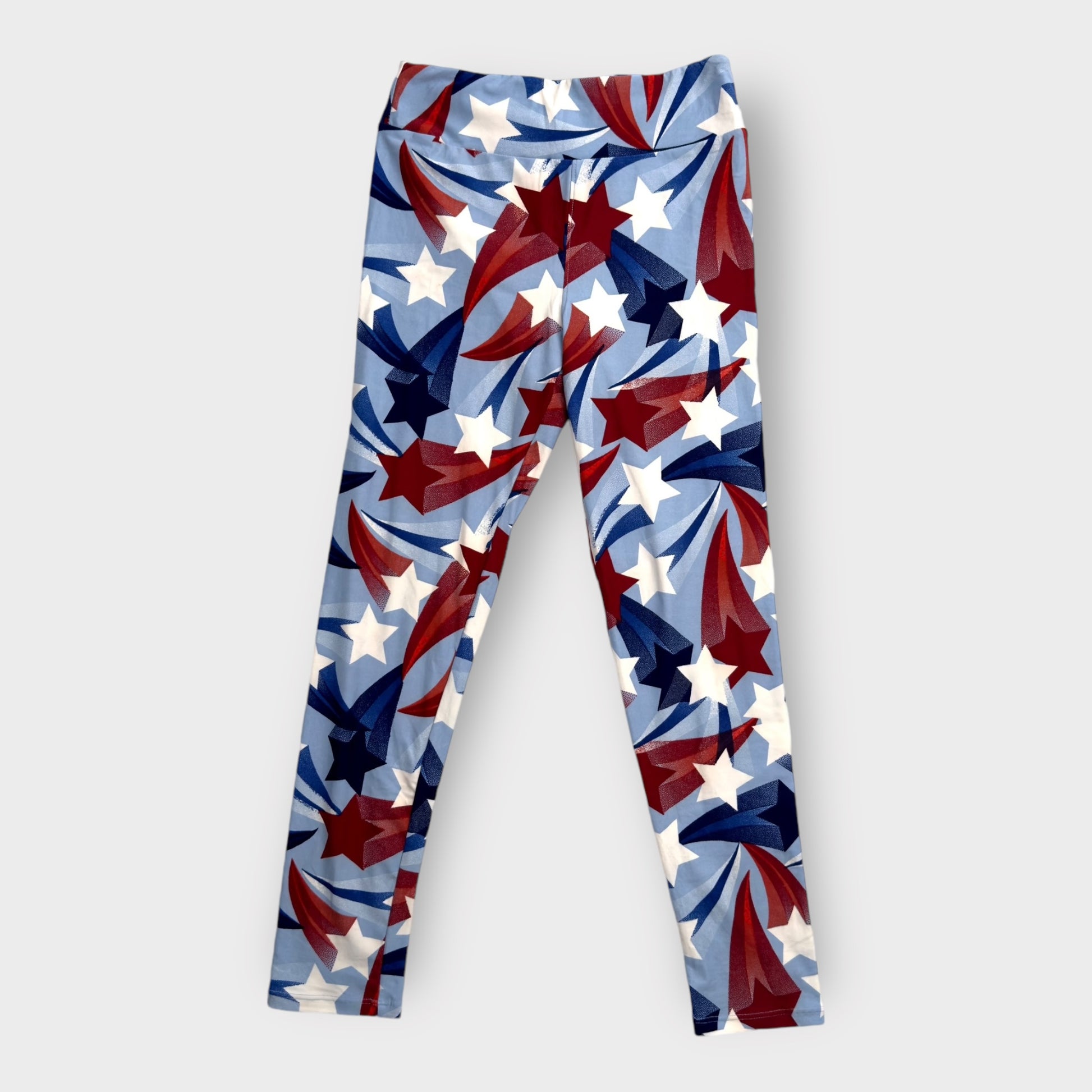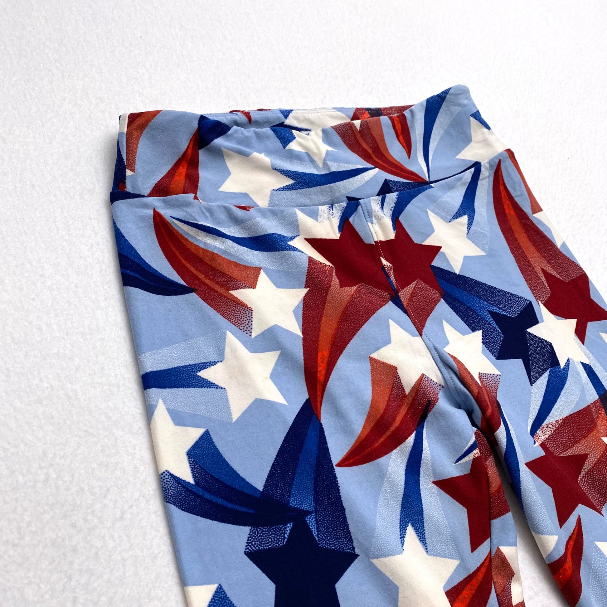 LuLaRoe Women’s Leggings | One Size (2-10) | Red, White, and Blue Starburst Print | Soft Stretchy Fabric | NWT