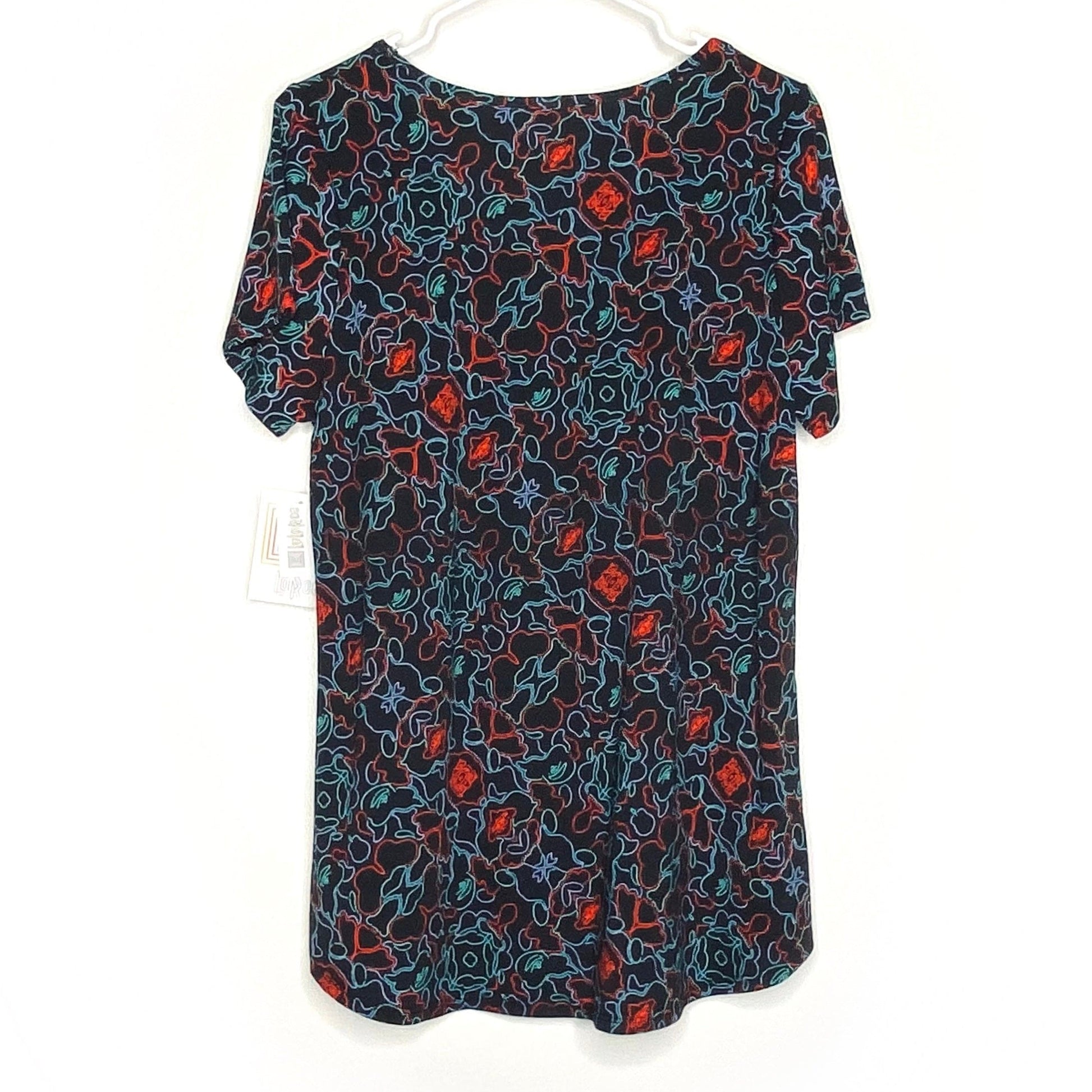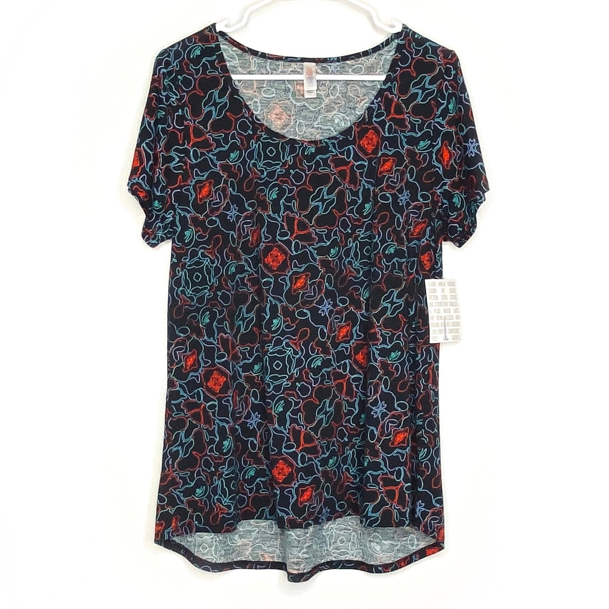 LuLaRoe Womens L Black/Red/Blue Abstract Rorschach Pattern Classic T S/s Top NWT