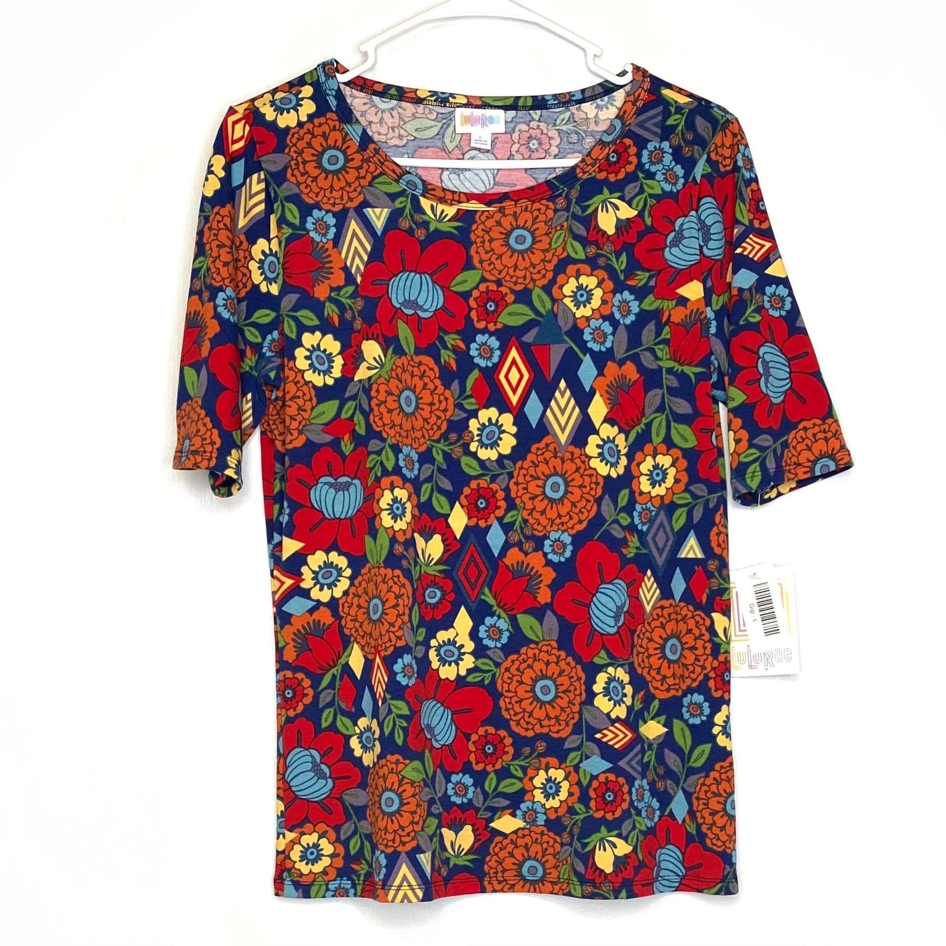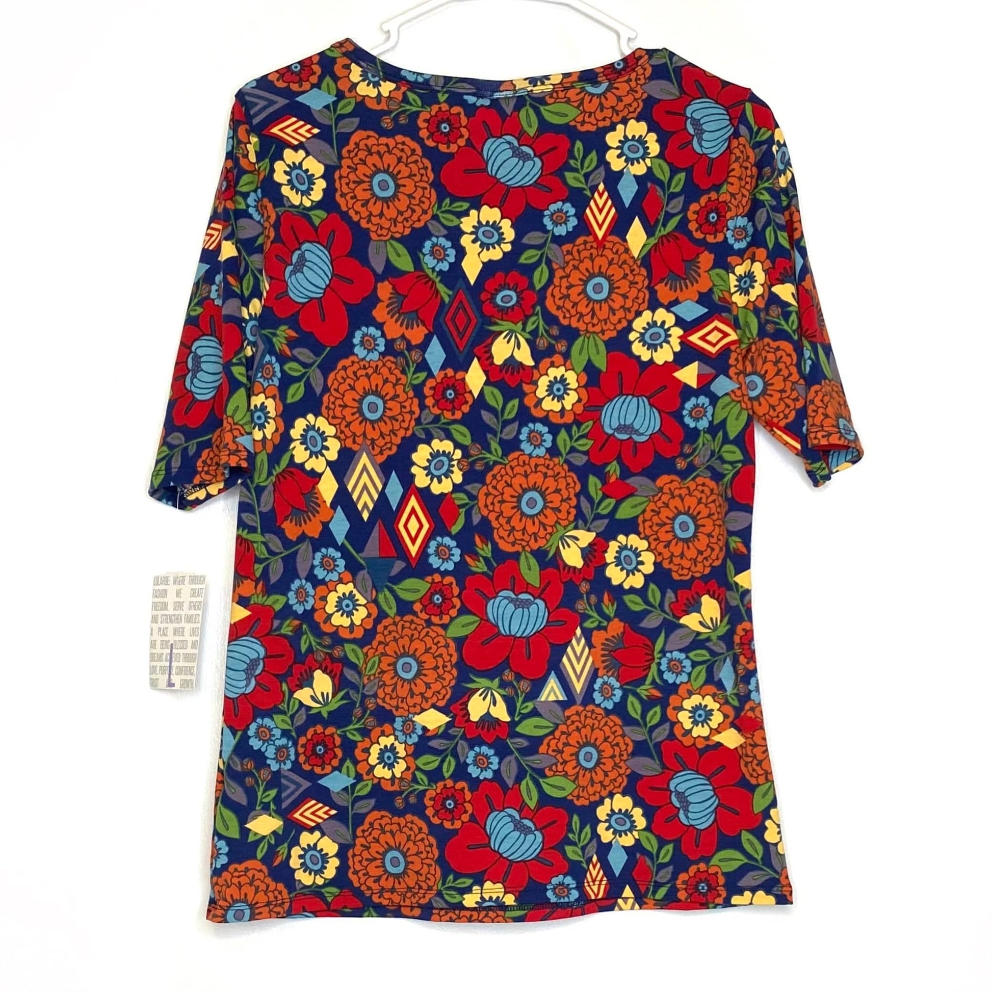 LuLaRoe Vault | Gigi Top | Size: L | Blue/Red | Geometric/Floral | NWT