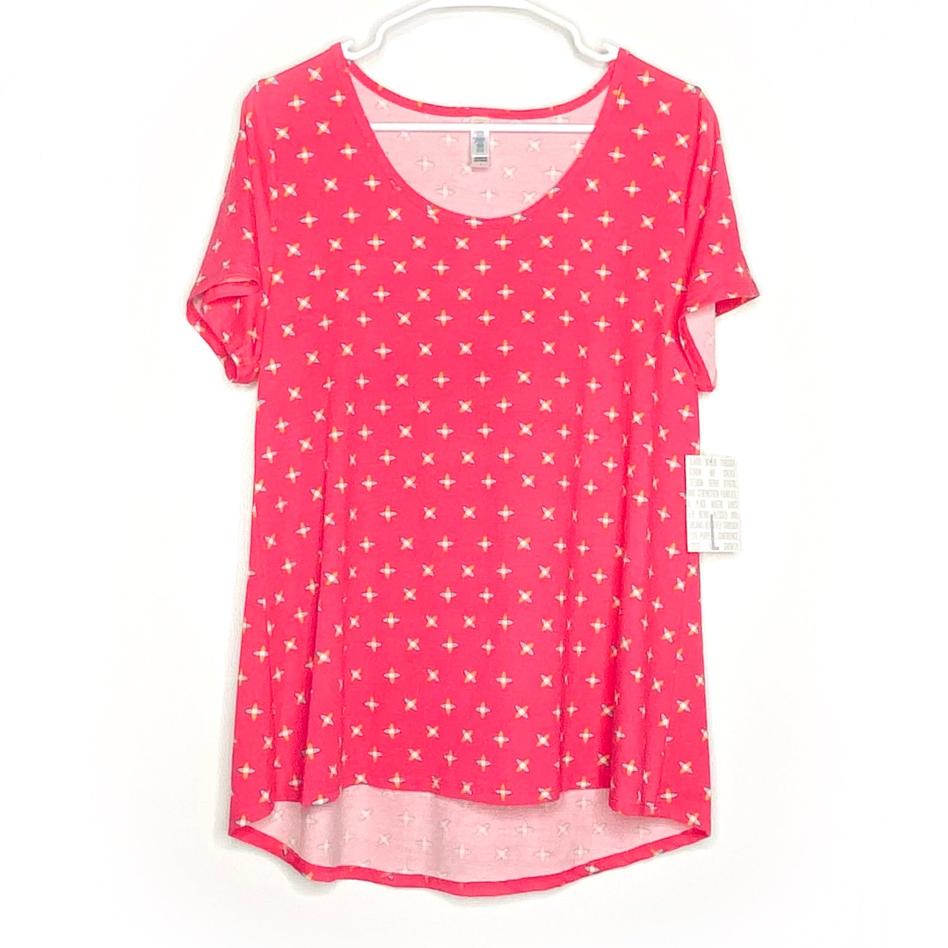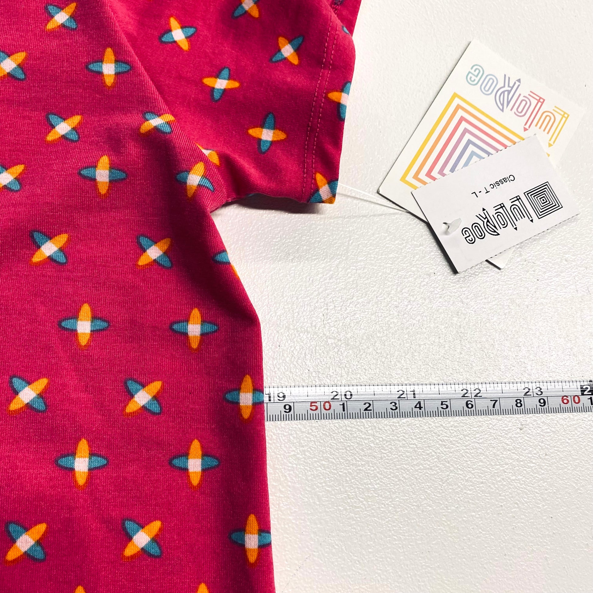 LuLaRoe Womens L Bright Pink 'Jacks' Pattern Classic T S/s Top | NWT