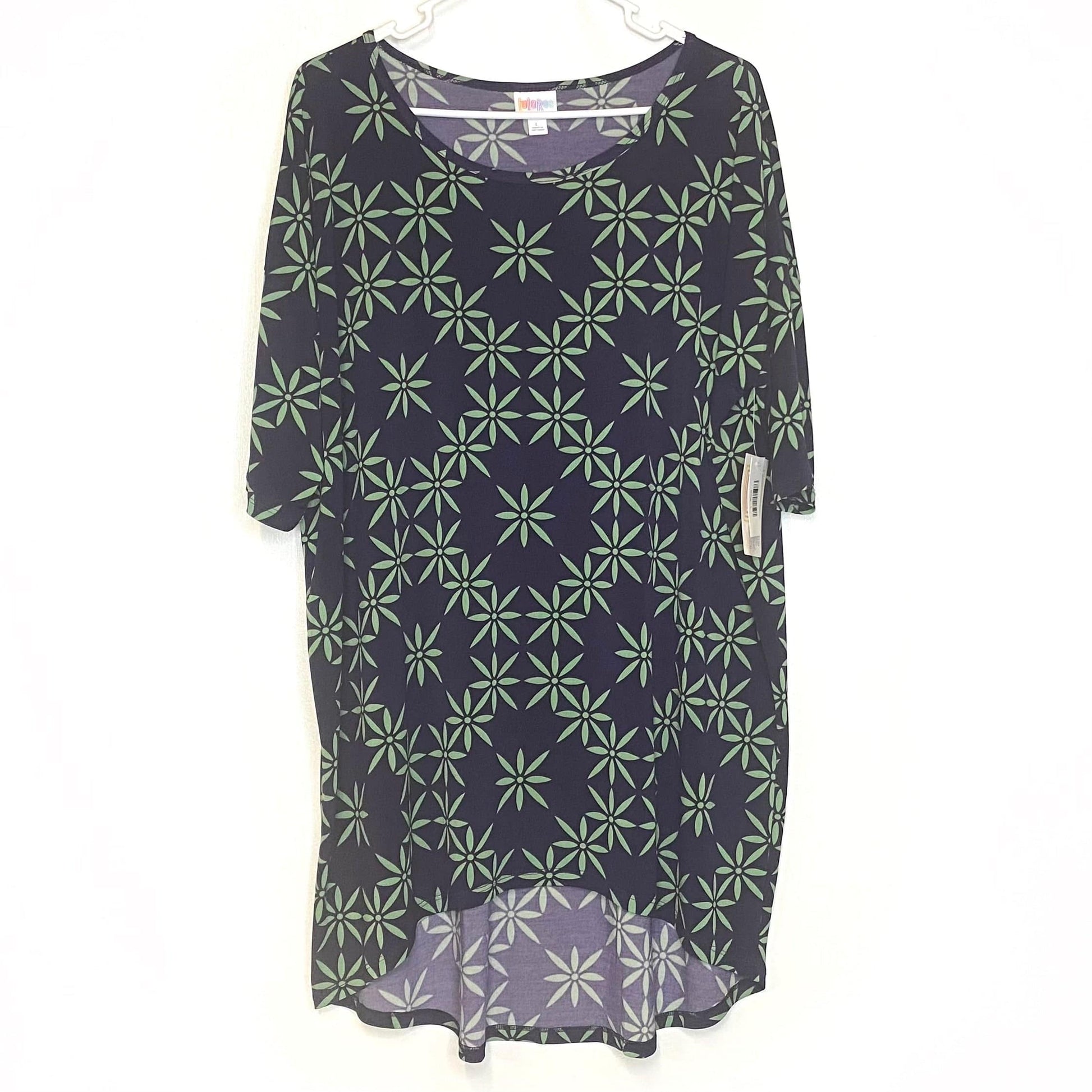 LuLaRoe Womens L Irma Deep Blue/Green Botanical Pattern S/s Tunic Top NWT
