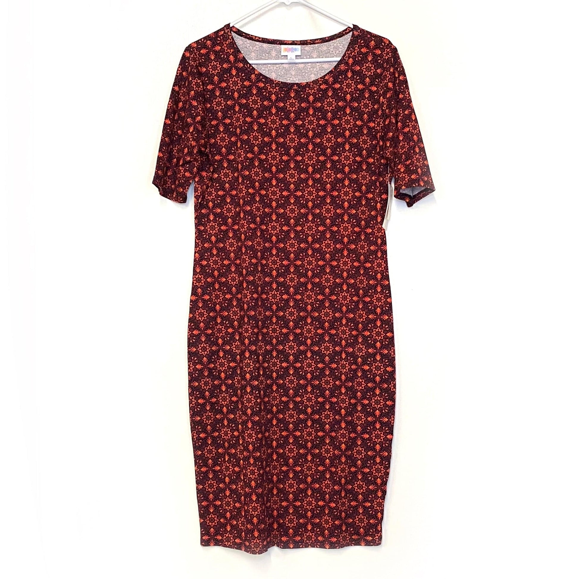 LuLaRoe Julia Bodycon Dress | L (12-14) | Orange/Red | Floral | NWT