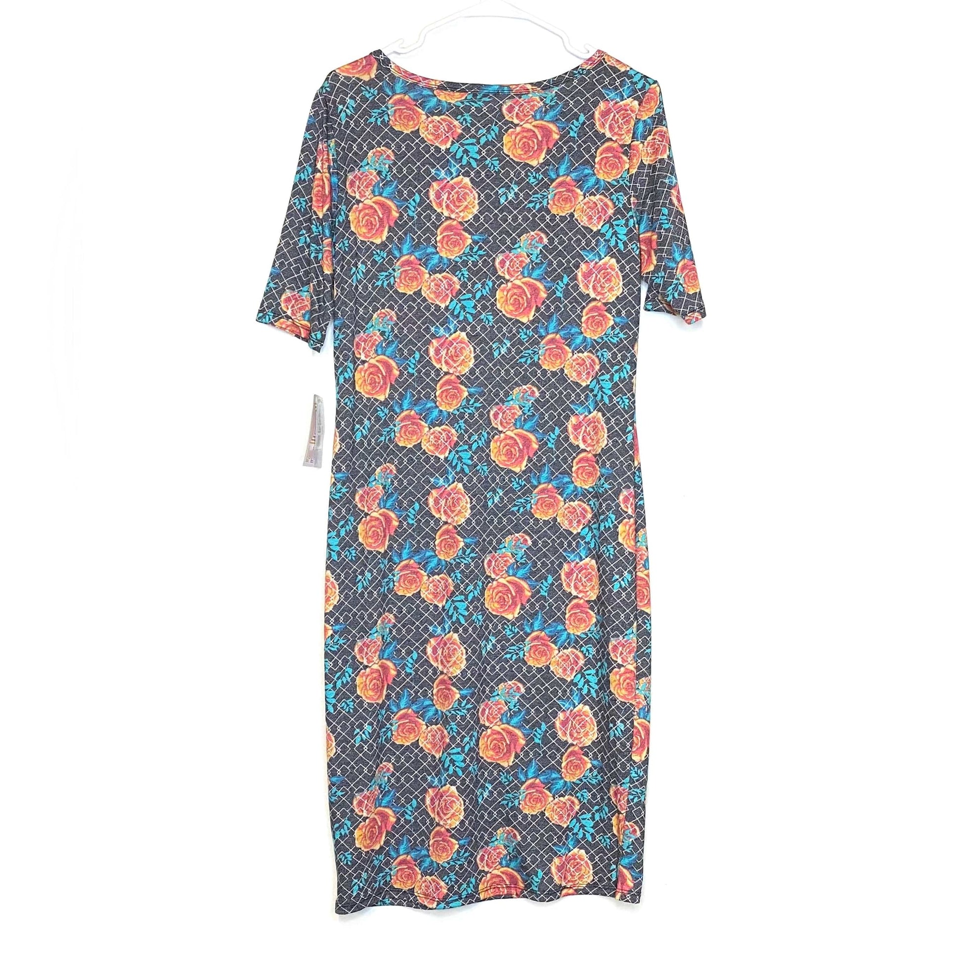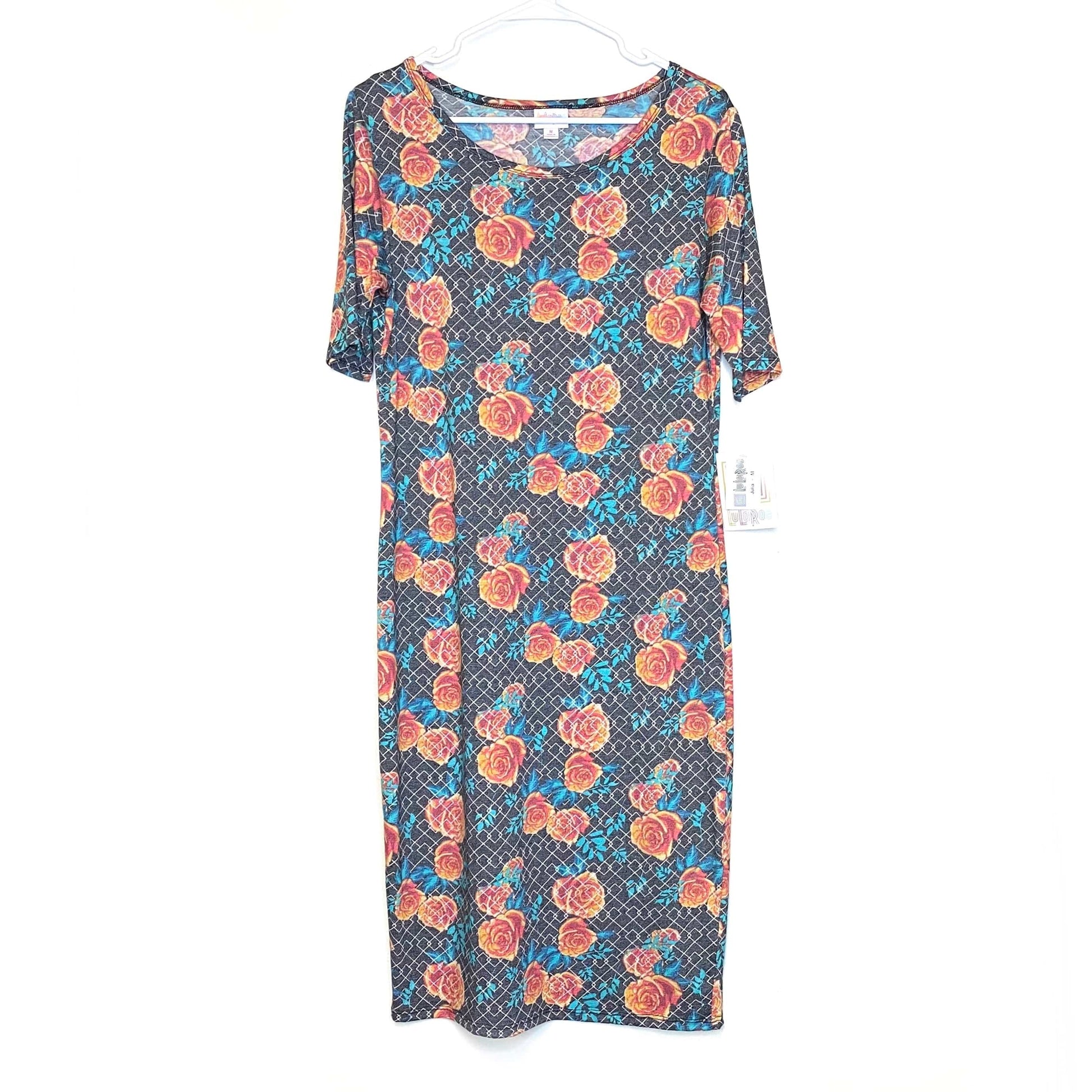 LuLaRoe Julia Bodycon Dress | M (8-10) | Blue/Orange/Gray | Floral | NWT