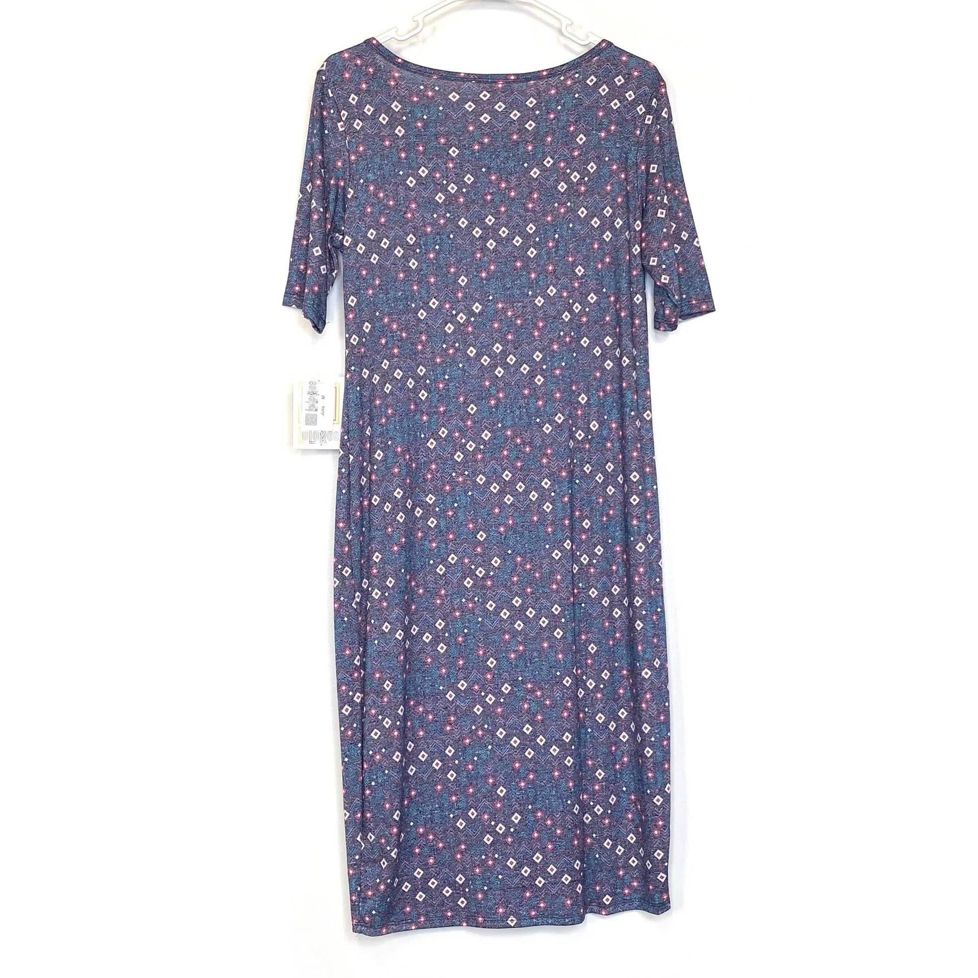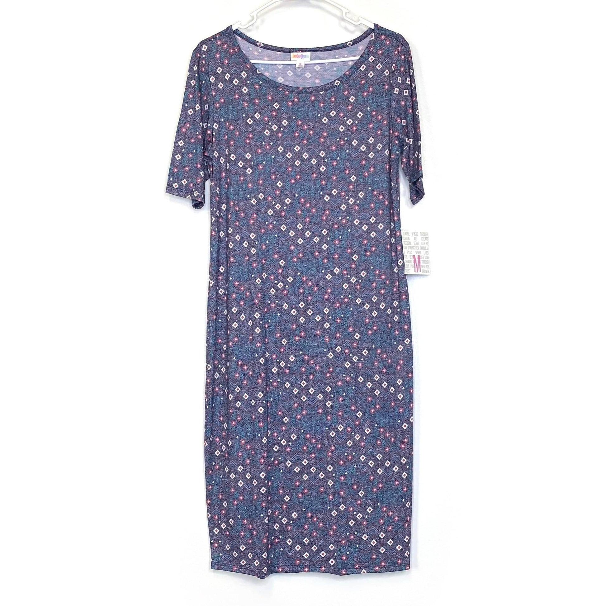 LuLaRoe Julia Bodycon Dress | M (8-10) | Blue/Red/White | Chevron | NWT