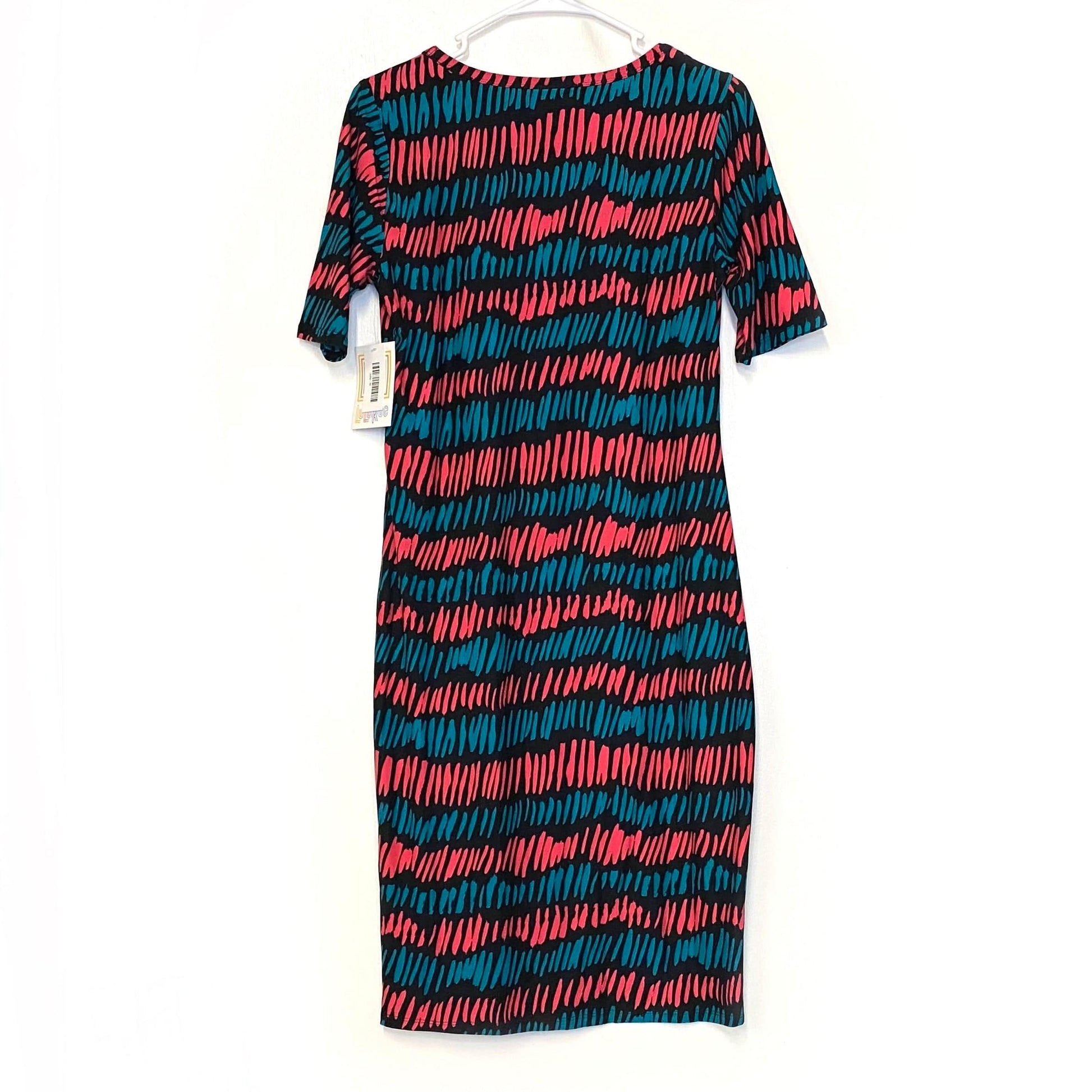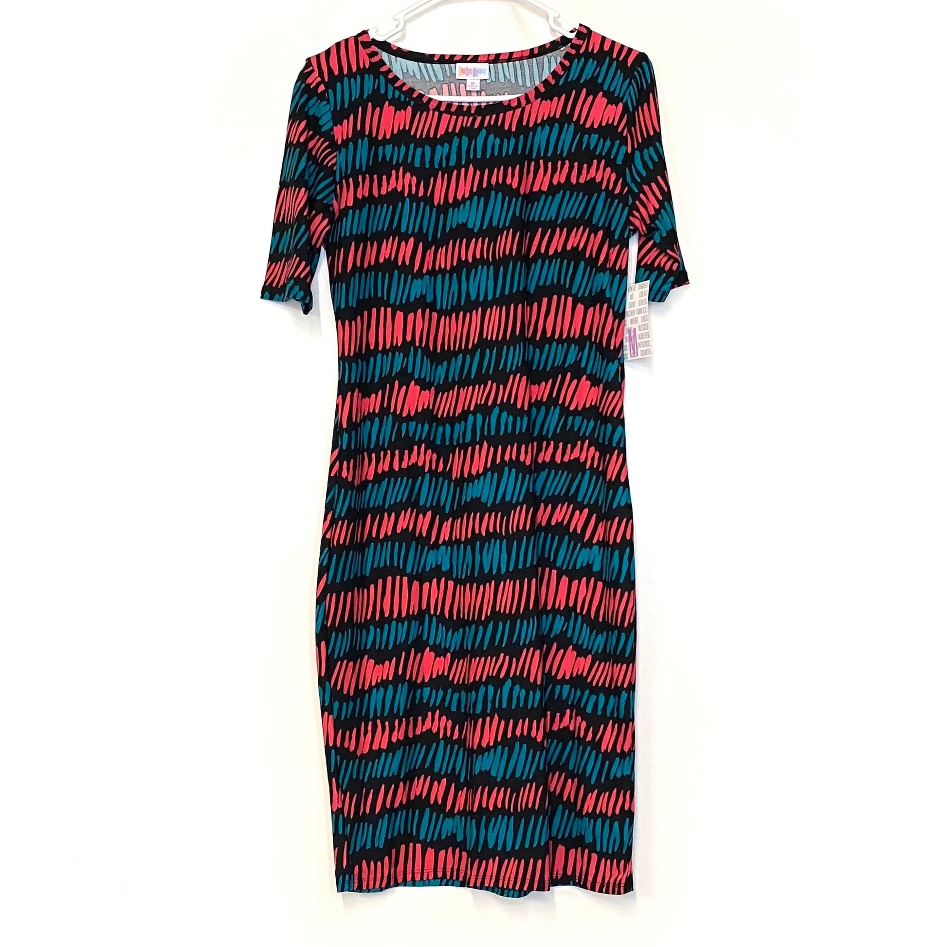 LuLaRoe Julia Bodycon Dress | M (8-10) | Blue/Orange/Gray | Floral | NWT