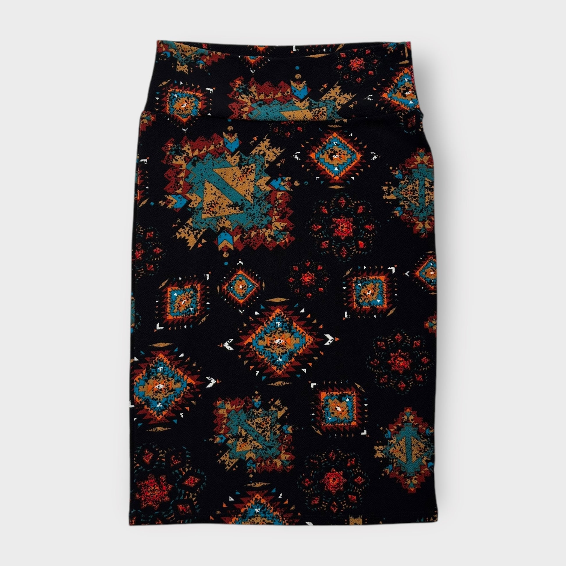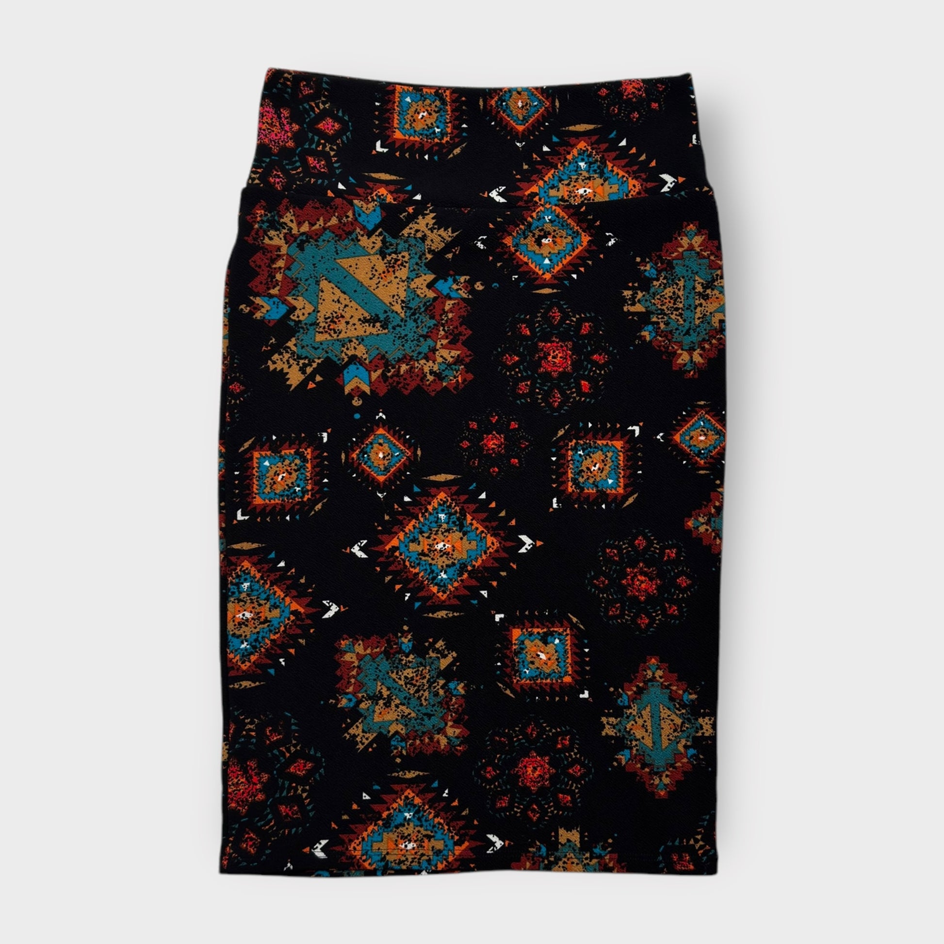 LuLaRoe Cassie Pencil Skirt - Black Multicolor Aztec Pattern