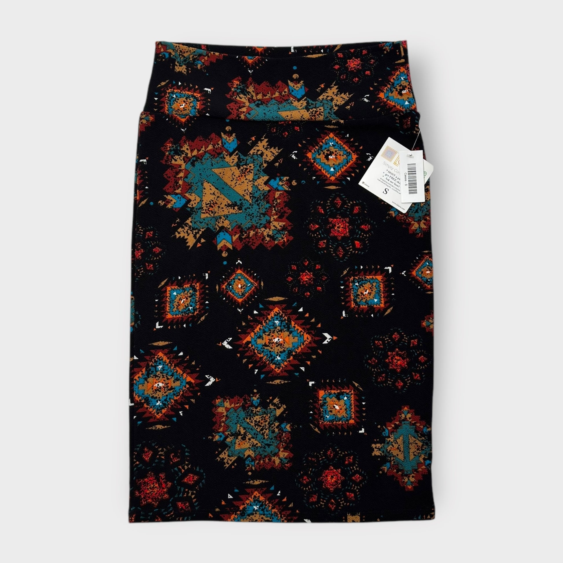 LuLaRoe Cassie Pencil Skirt - Black Multicolor Aztec Pattern - Size S (6-8) - NWT