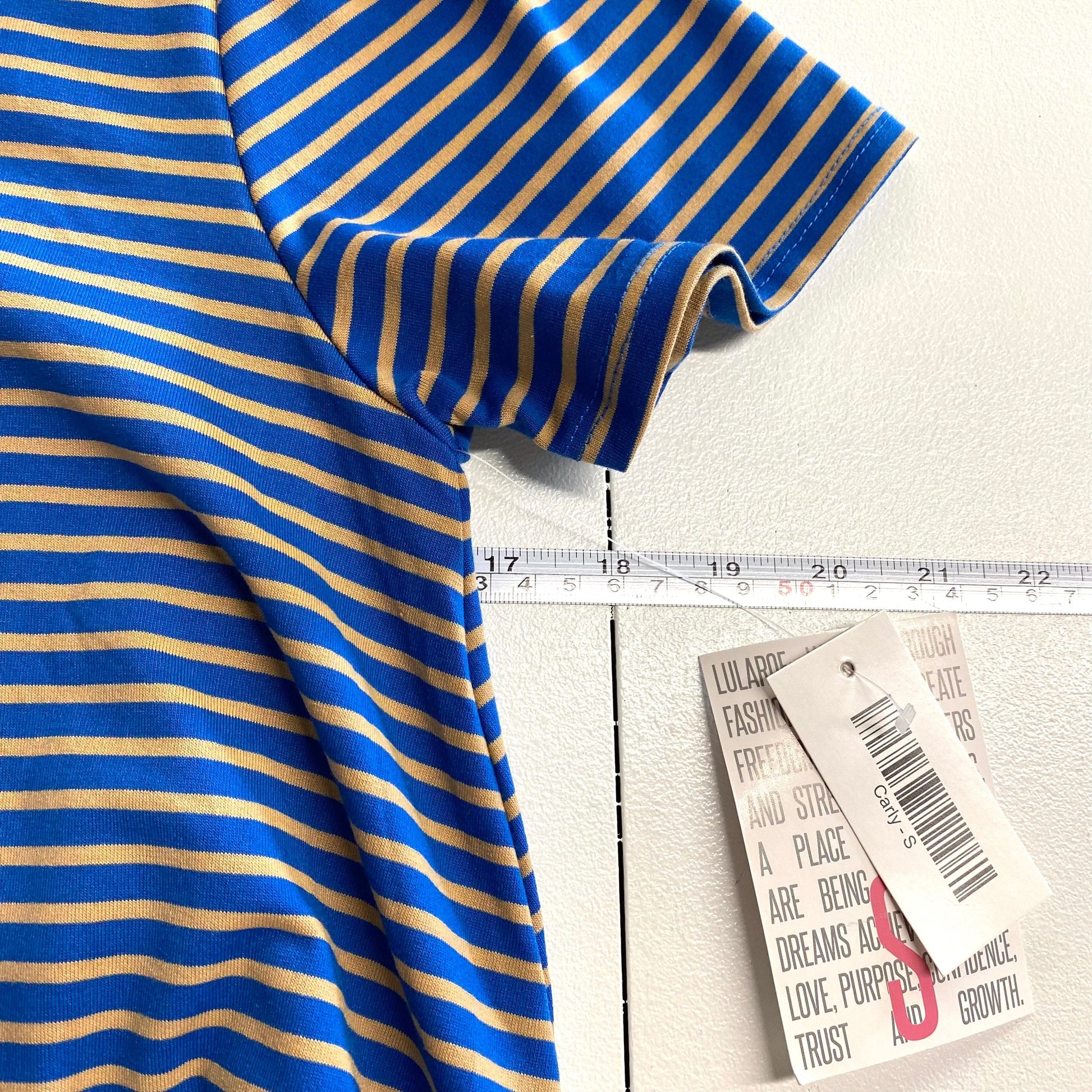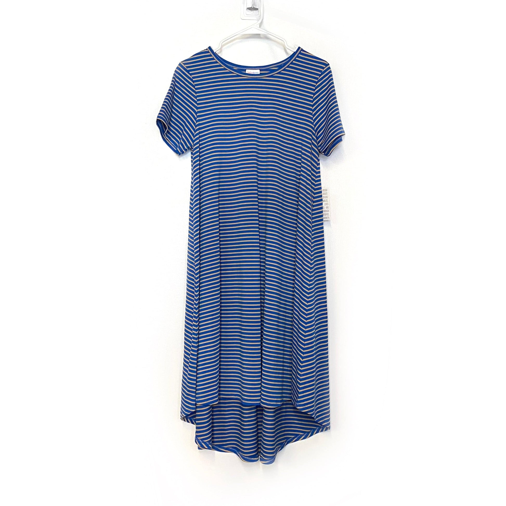 LuLaRoe Womens S Beige/Blue Striped 'Carly' S/s Swing Dress NWT