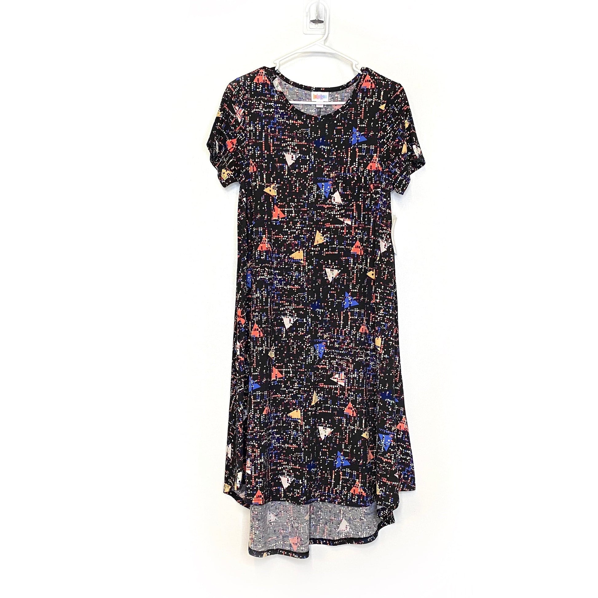 LuLaRoe Womens S Black/Blue/Orange Digital Dots 'Carly' S/s Swing Dress NWT