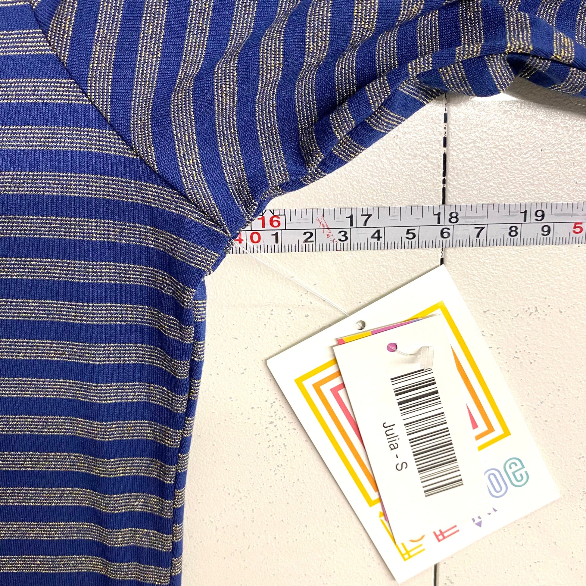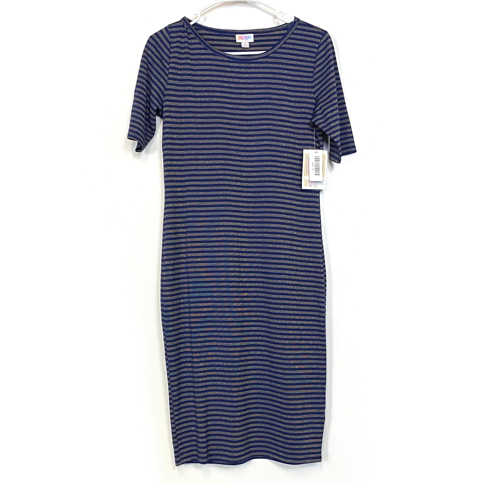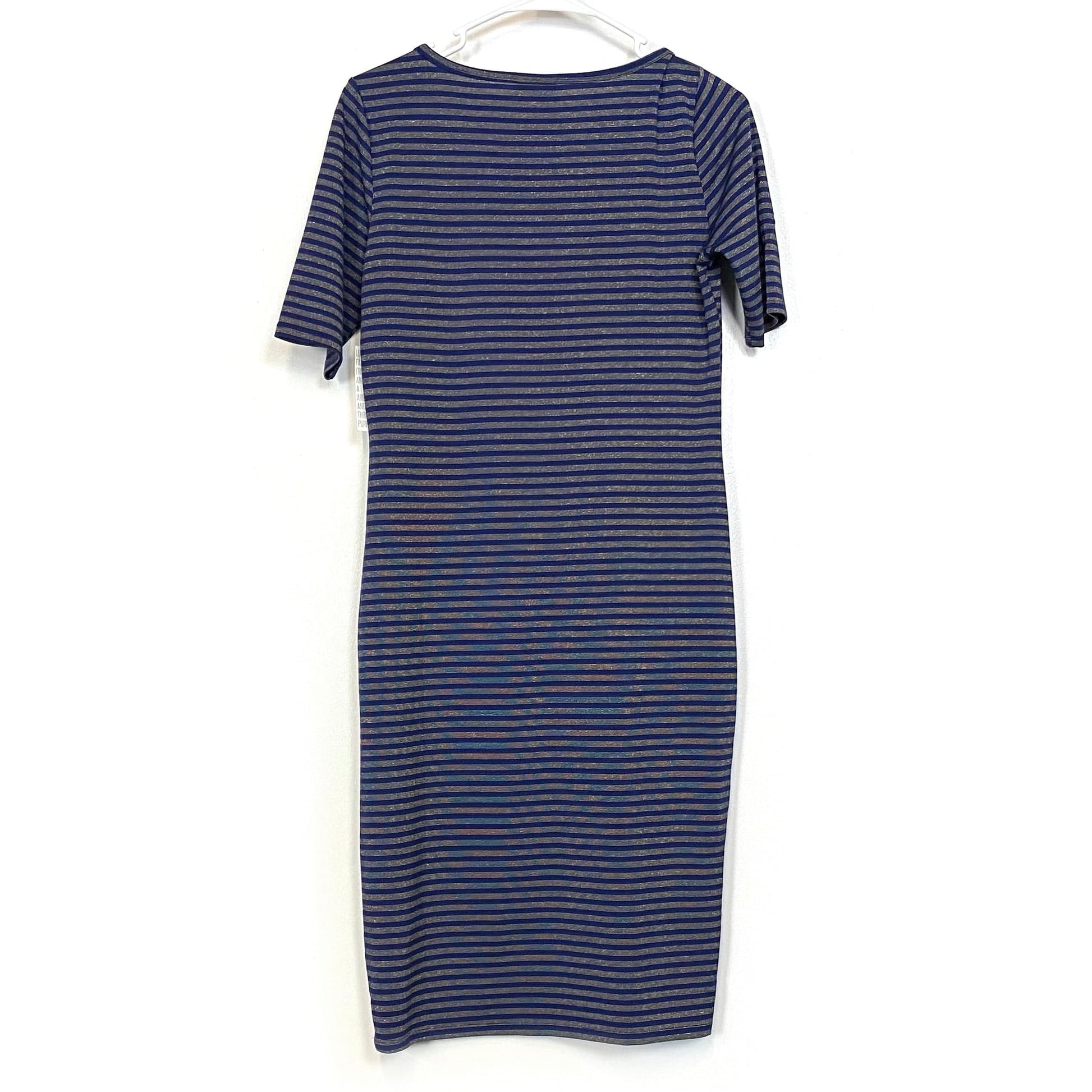 LuLaRoe Julia Bodycon Dress | S (4-6) | Blue/Gold | Striped | NWT