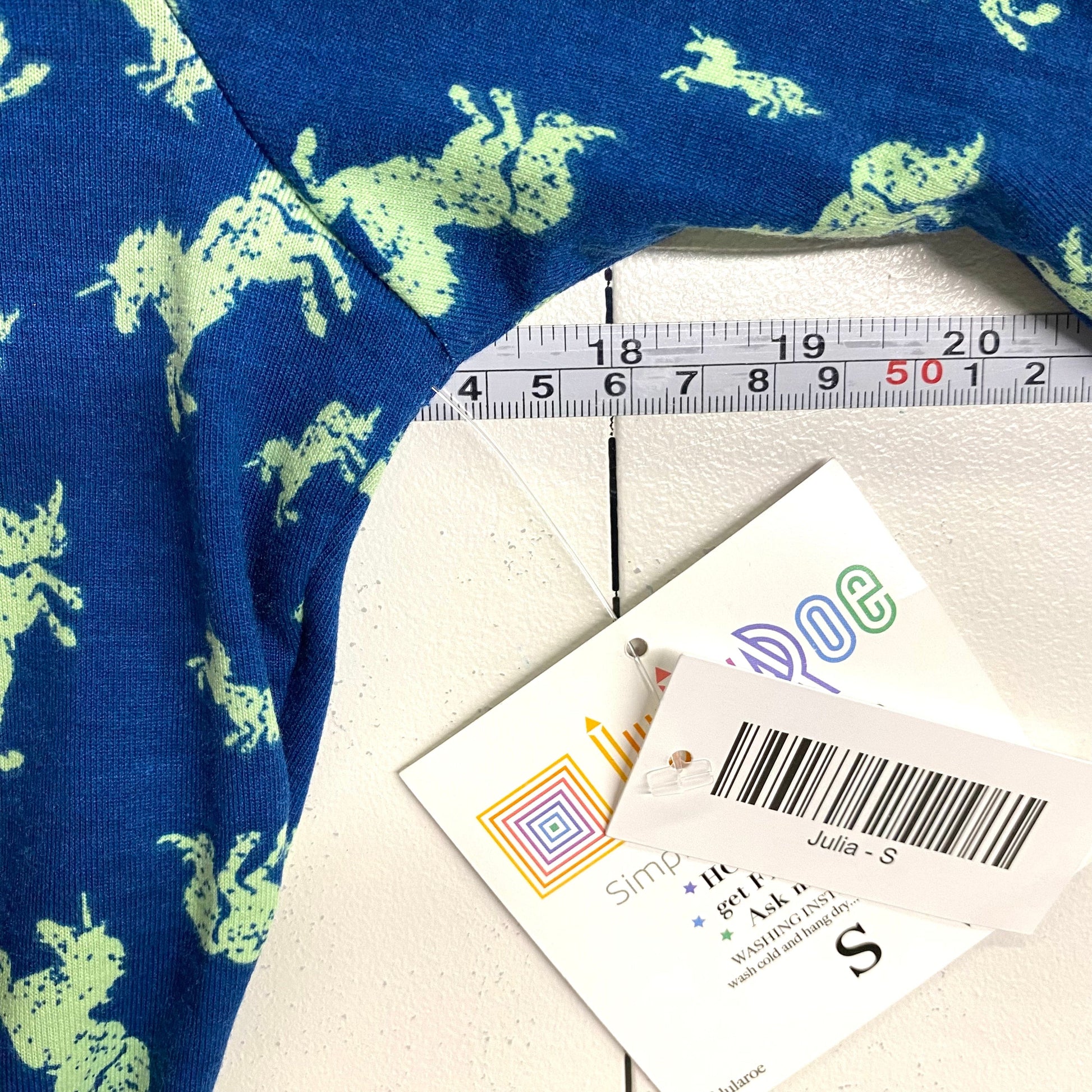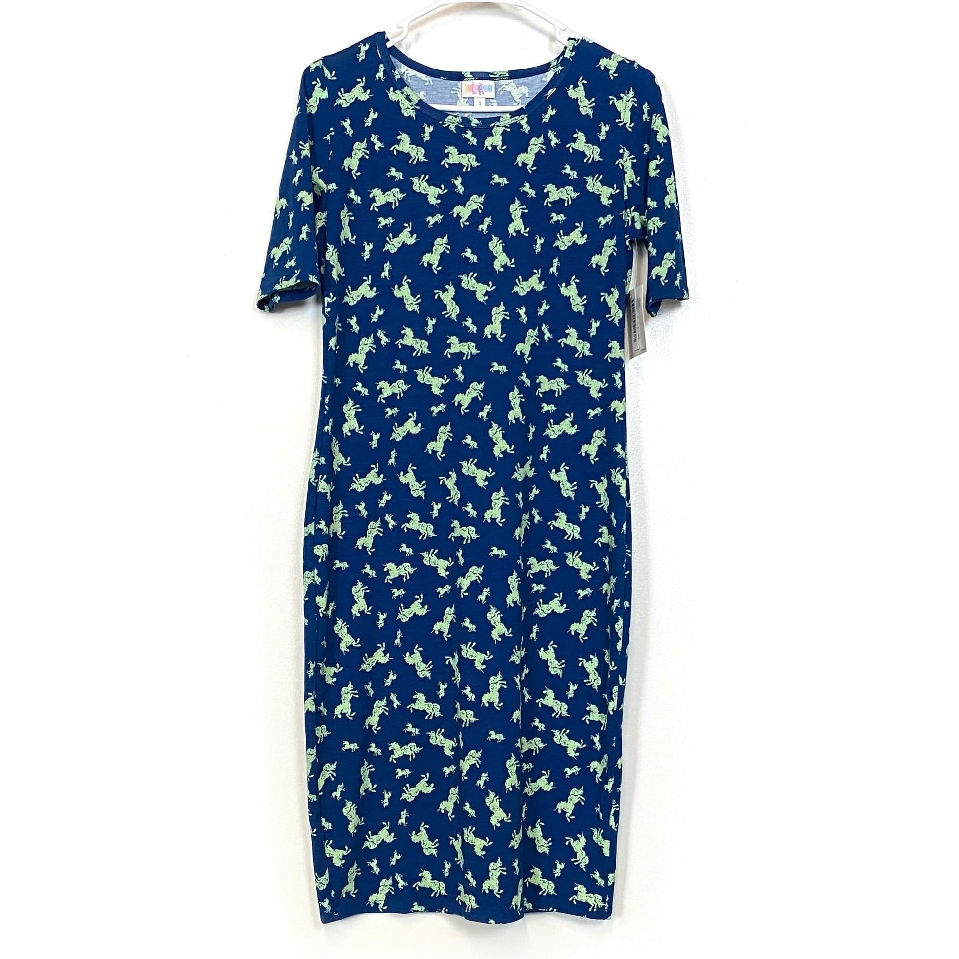 LuLaRoe Julia Bodycon Dress | S (4-6) | Blue/Green | Unicorns | NWT