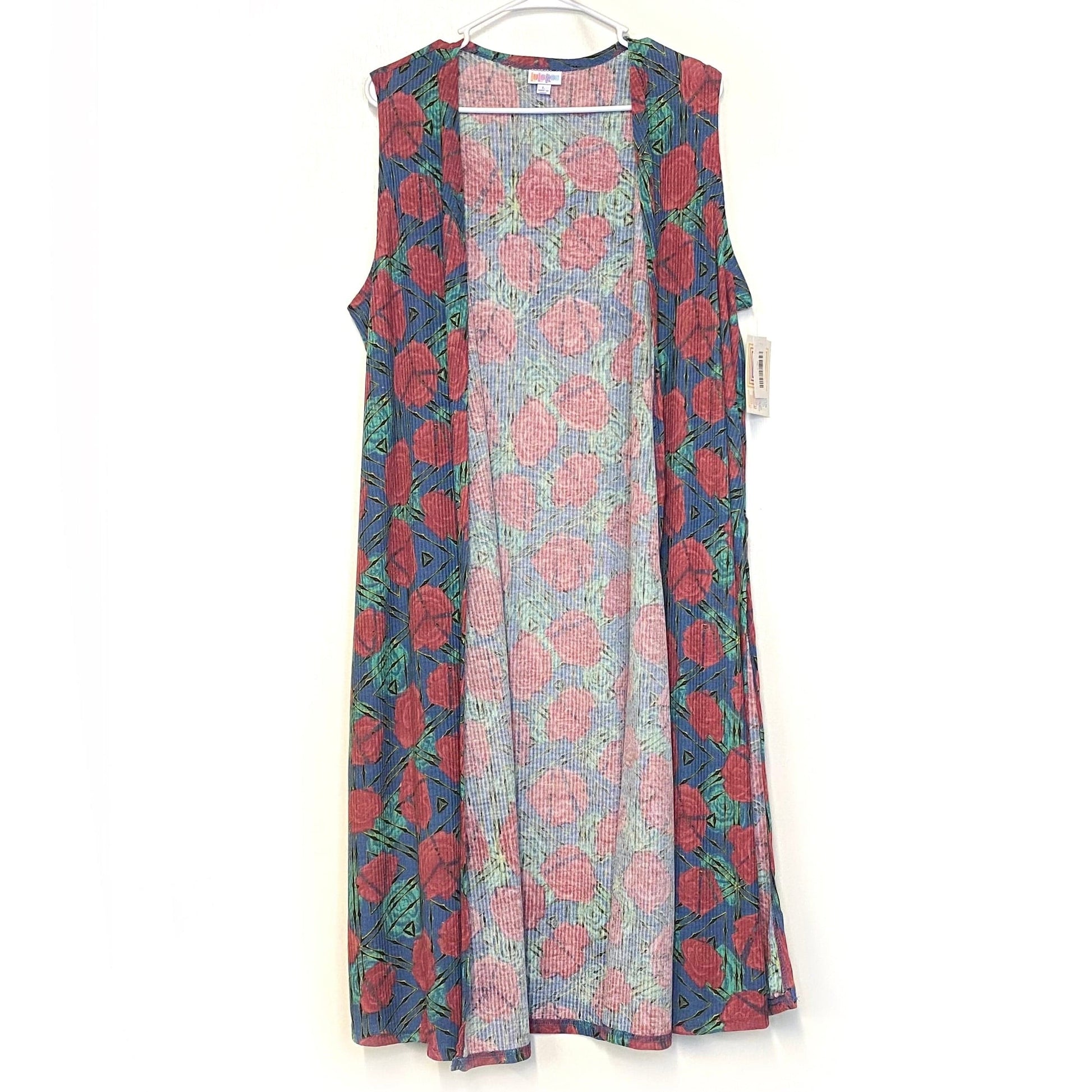 LuLaRoe Womens Size L Red/Green/Blue Floral Joy Duster Vest Sleeveless NWT