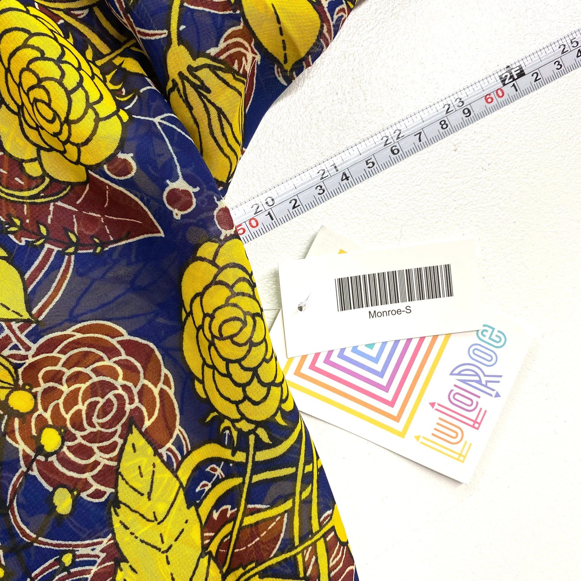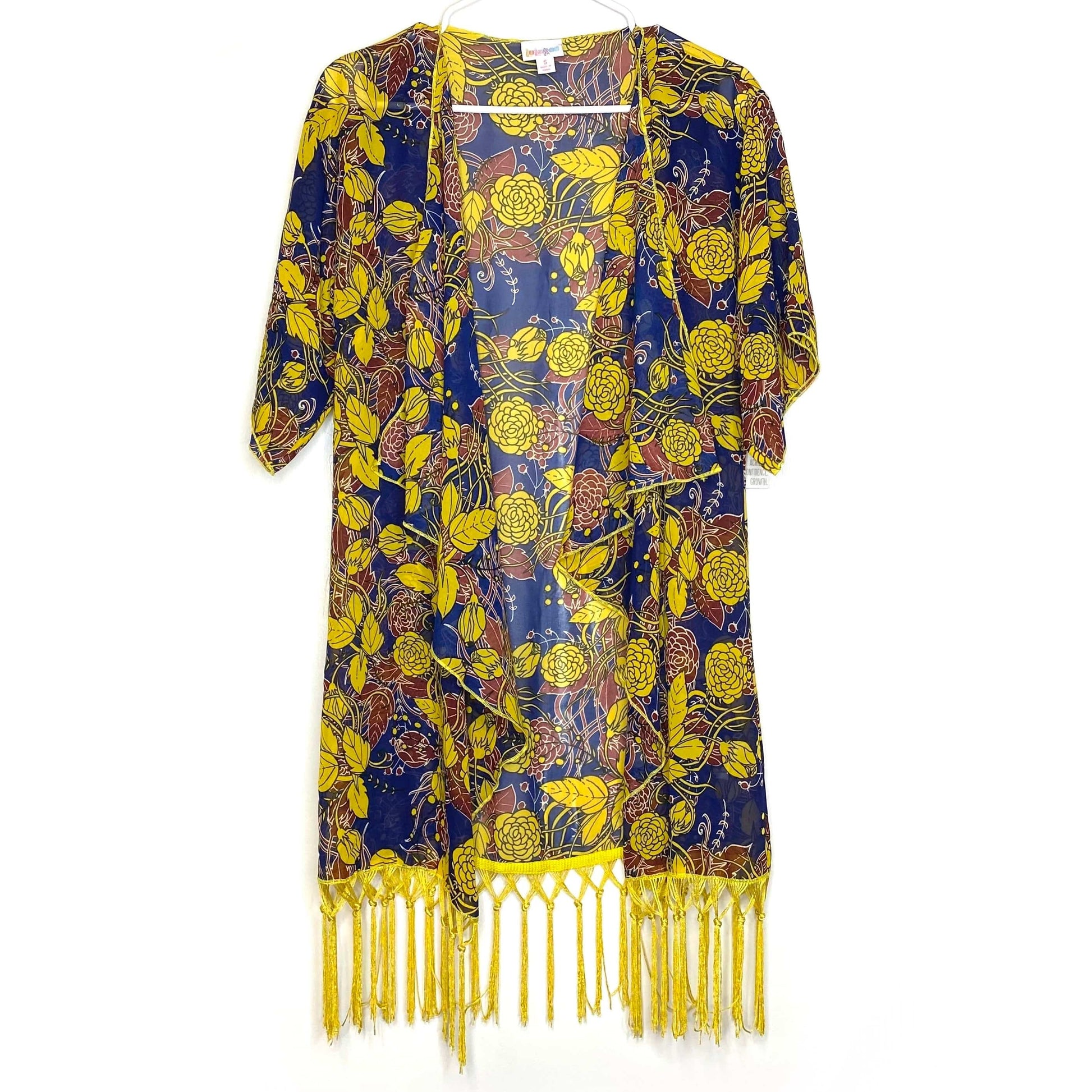 LuLaRoe Womens Size S (0-12) Blue/Yellow Floral ‘Monroe’ Kimono Fringe Cover-Up NWT