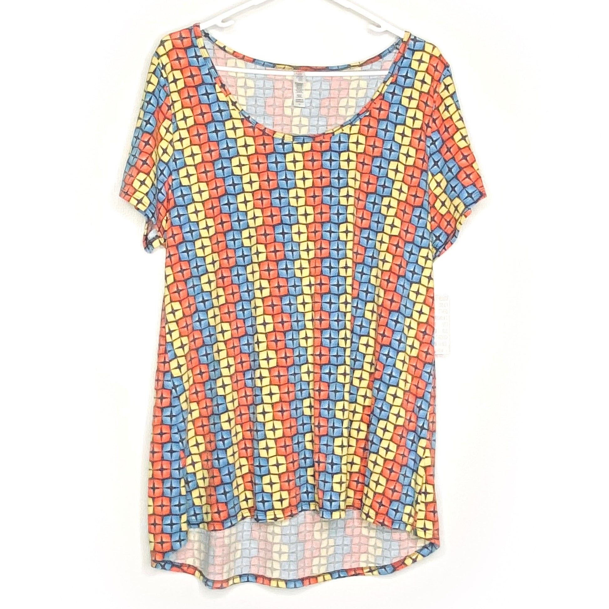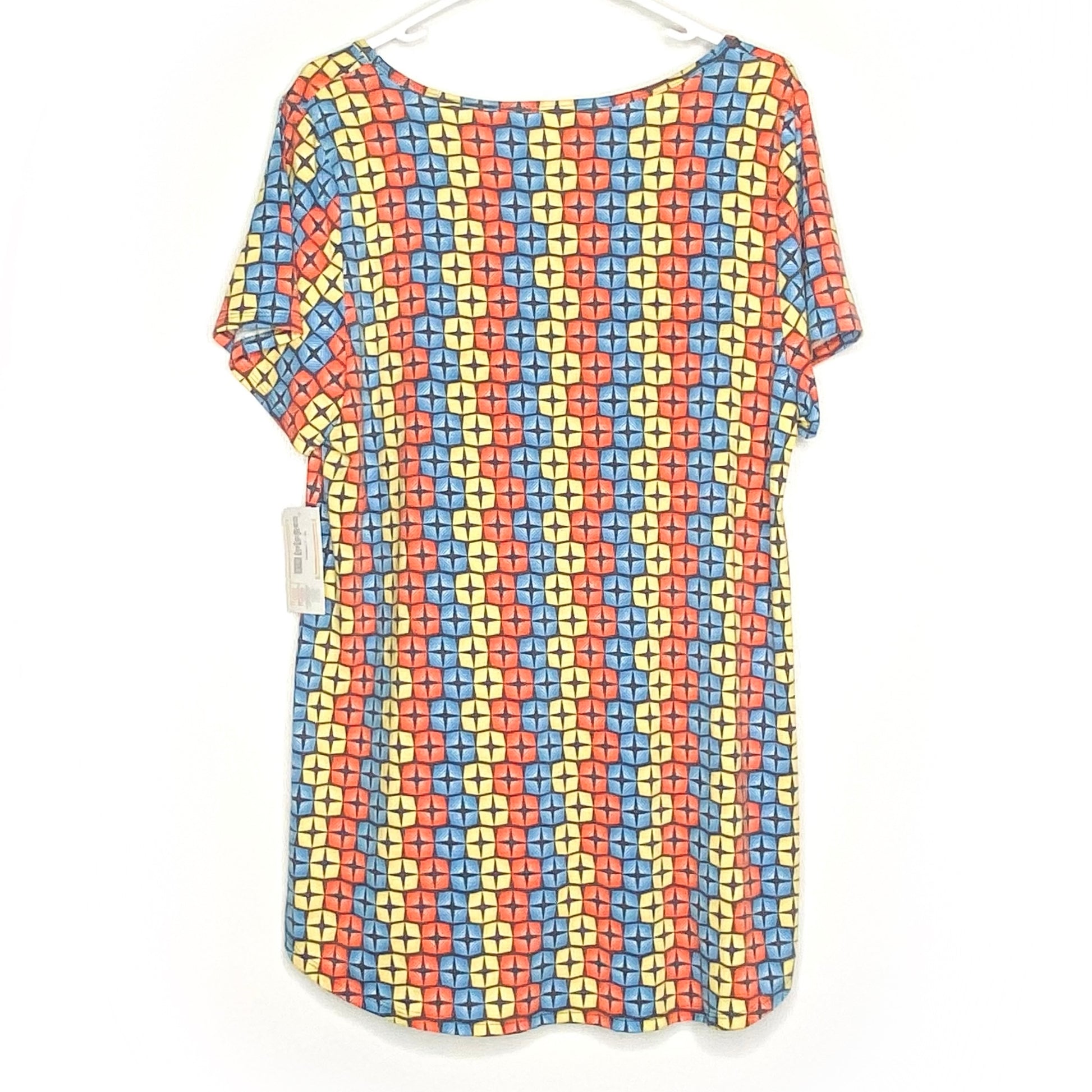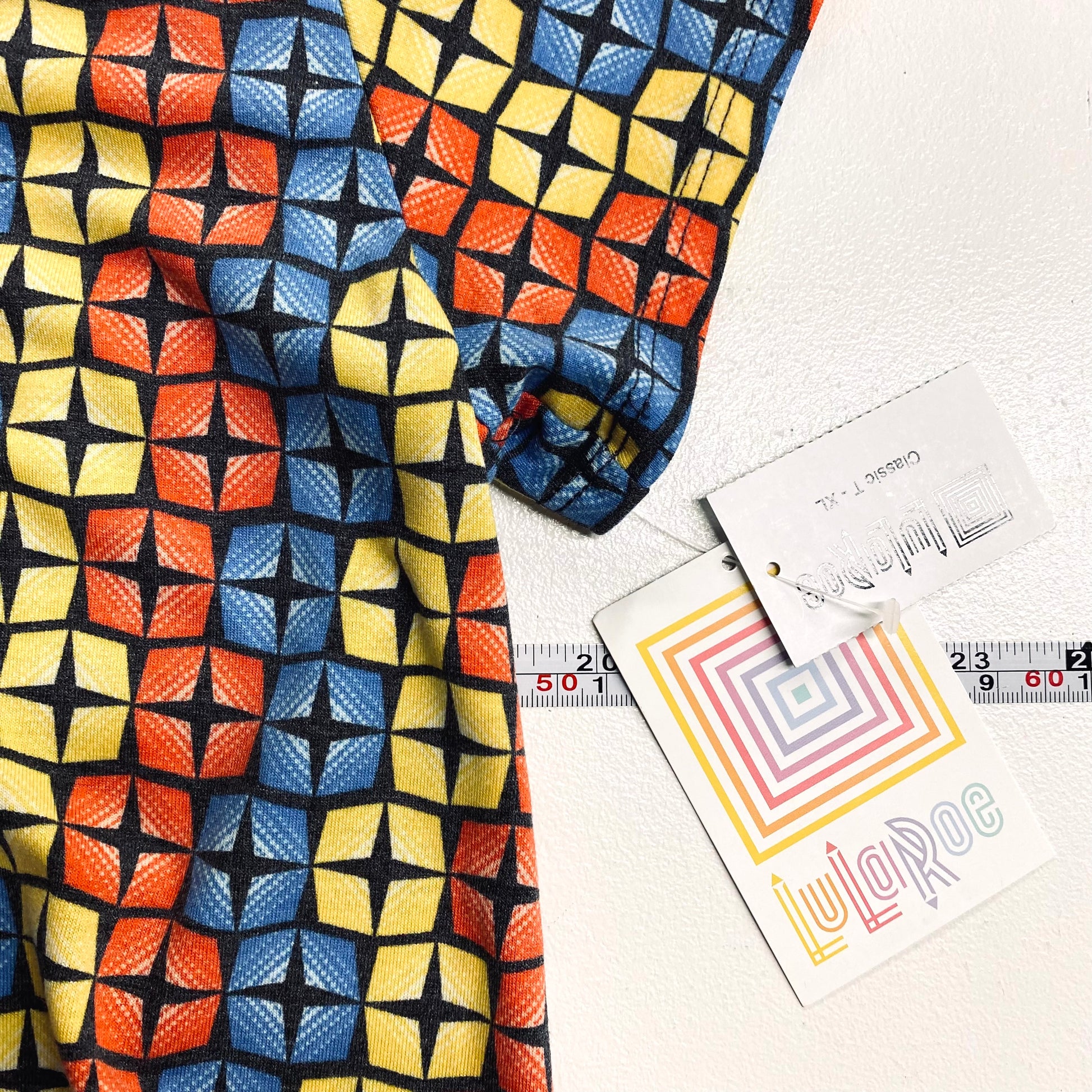 LuLaRoe Womens XL Orange/Blue/Yellow Star-Like Geometric Classic T S/s Top | NWT