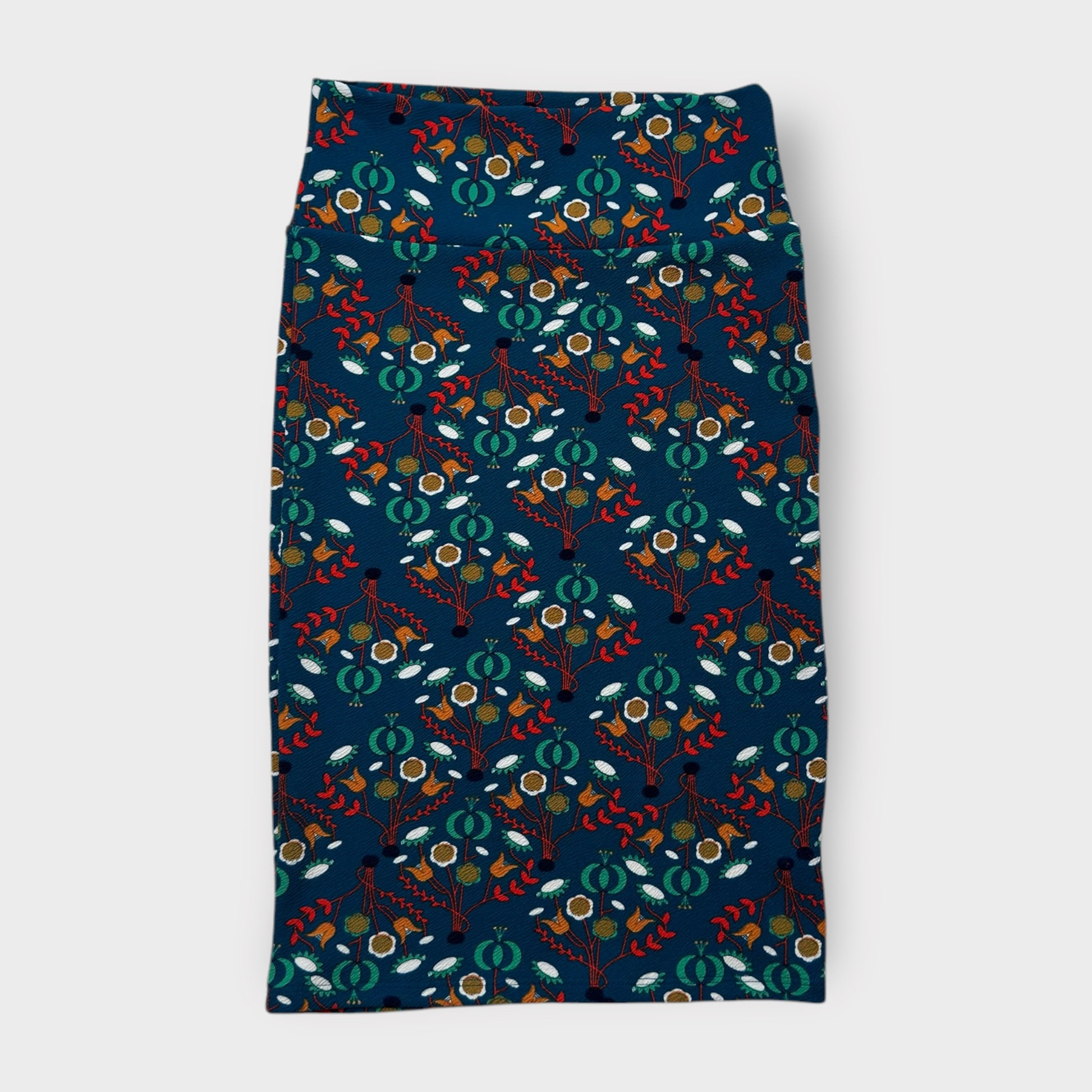 LuLaRoe Cassie Pencil Skirt - Blue Retro Floral Pattern