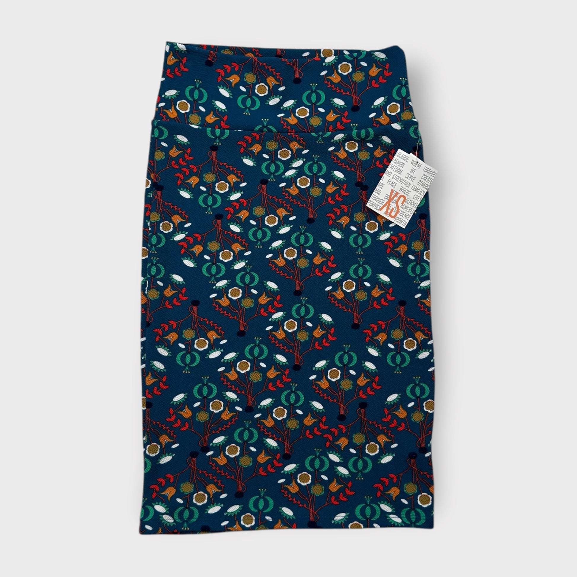 LuLaRoe Cassie Pencil Skirt - Blue Retro Floral Pattern - Size XS (2-4) - NWT