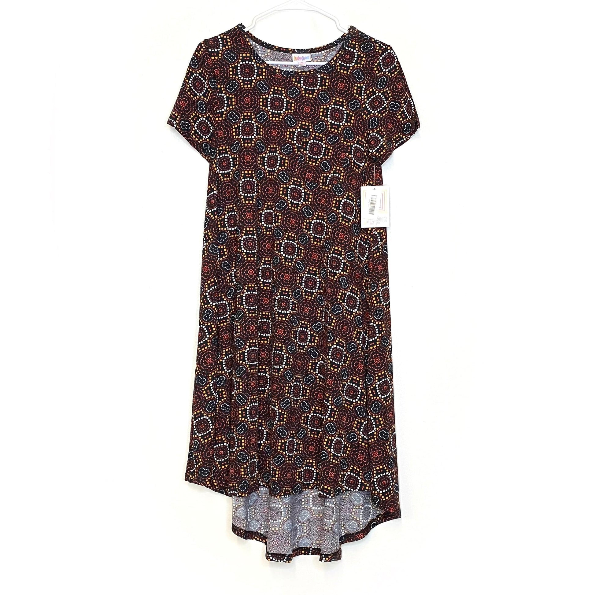 LuLaRoe Womens XS Orange/Gold/Black Carly Geometric Swing S/s NWT